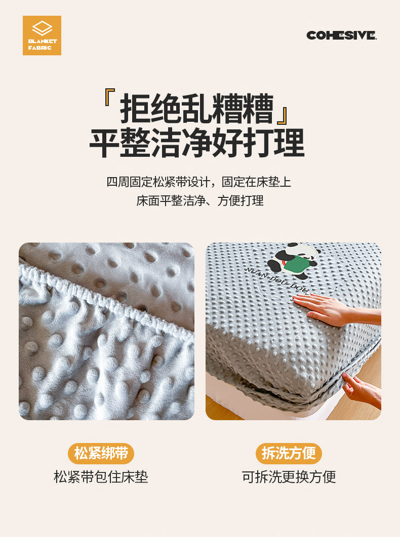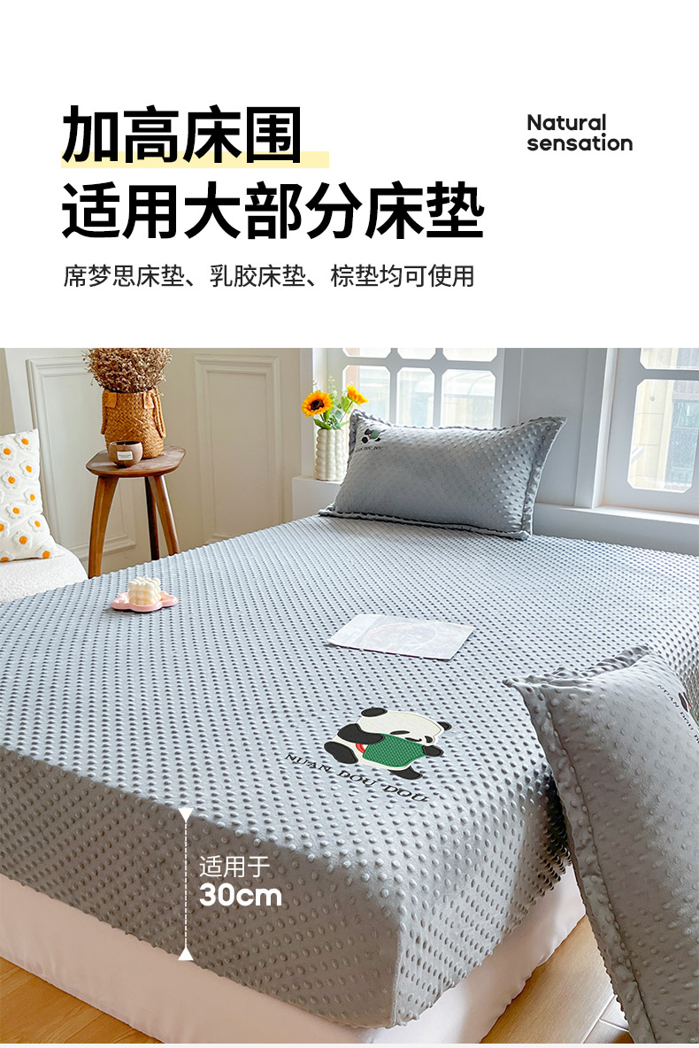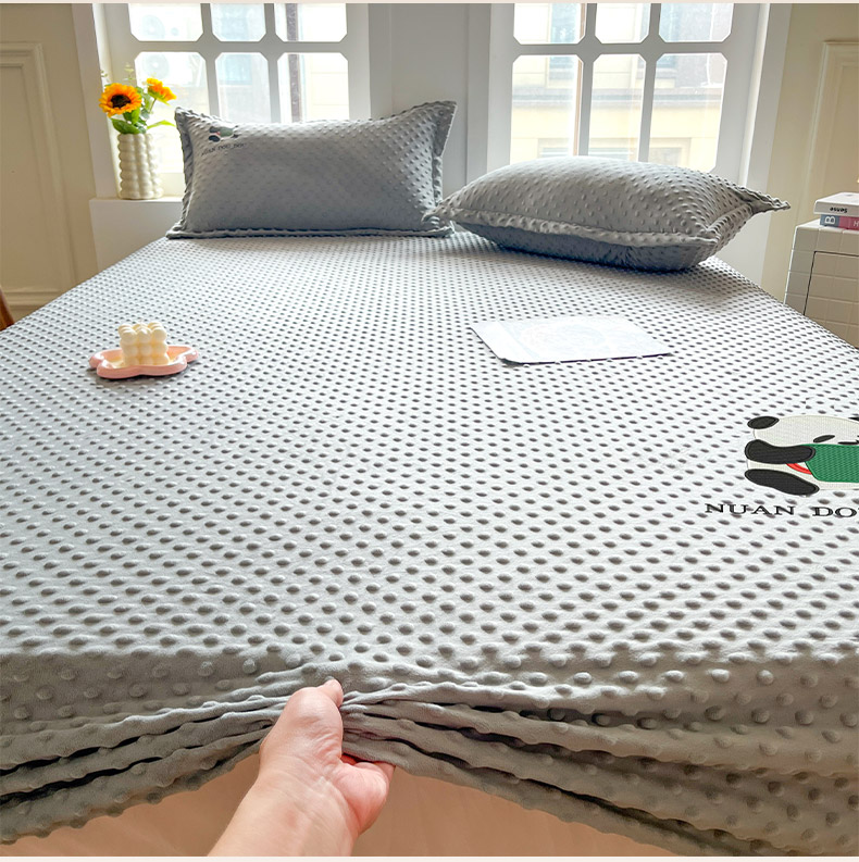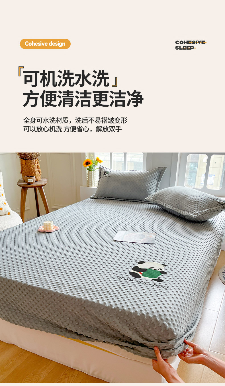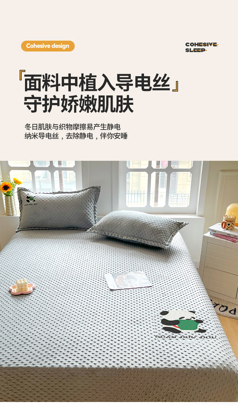 商品名称:美宜家 2025新款加厚宝宝绒暖豆豆纯色烫画床笠 暖豆豆灰