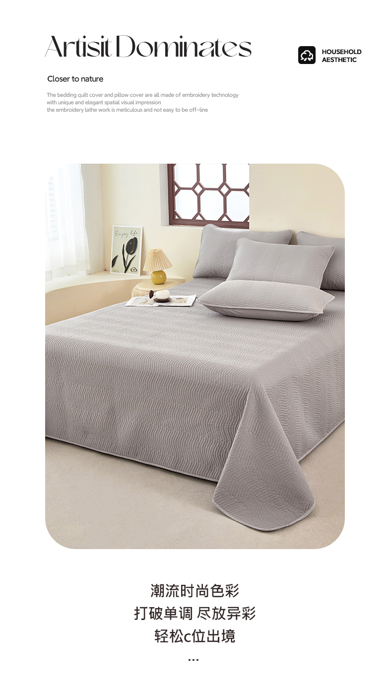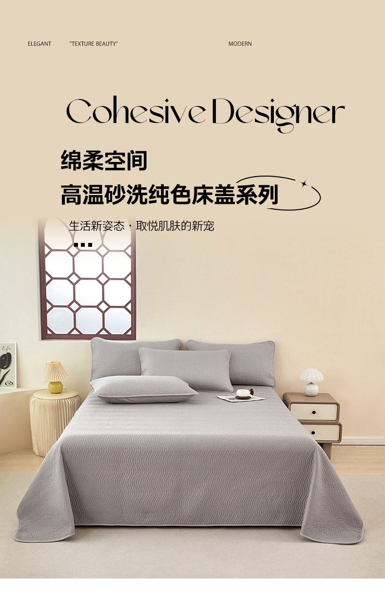 (总)莎果家纺 2024新款13372双面纯棉高温砂洗纯色床盖可搭配床盖四件套