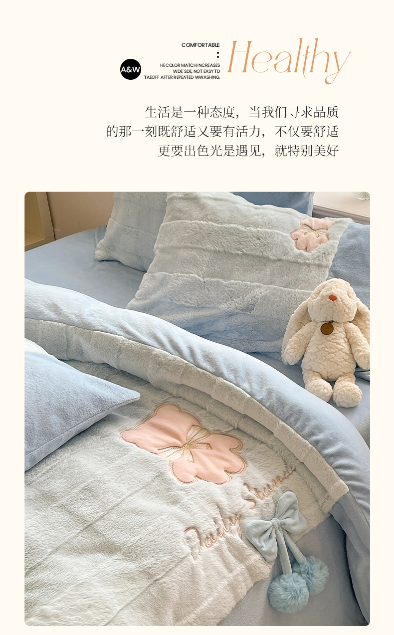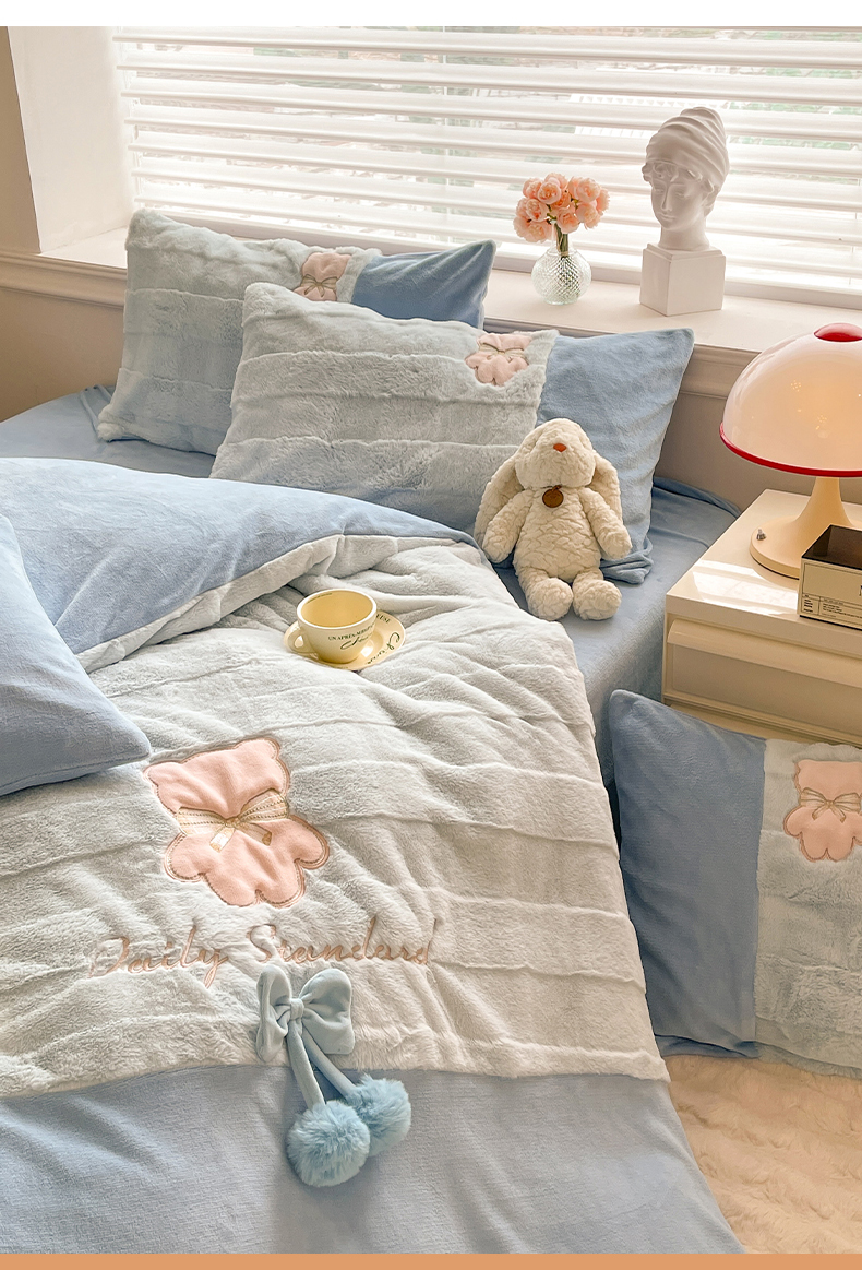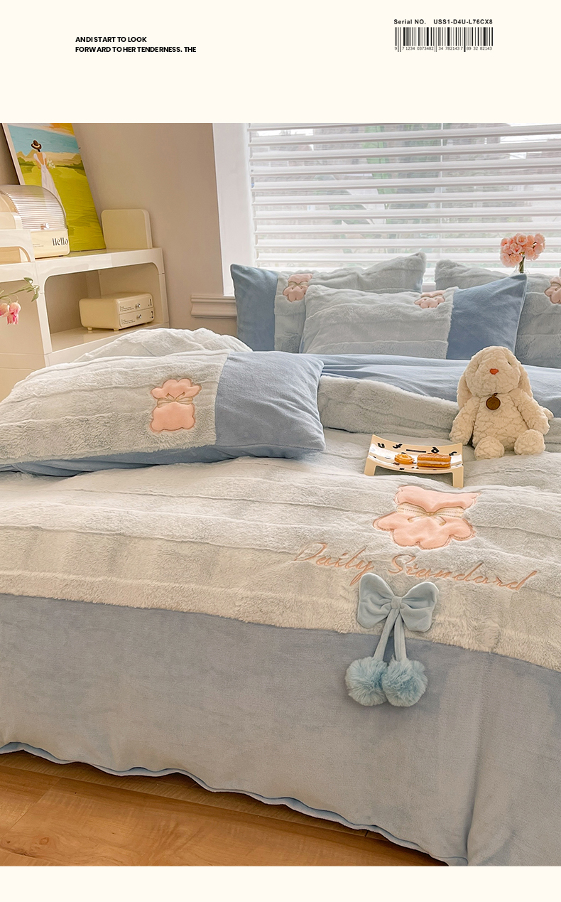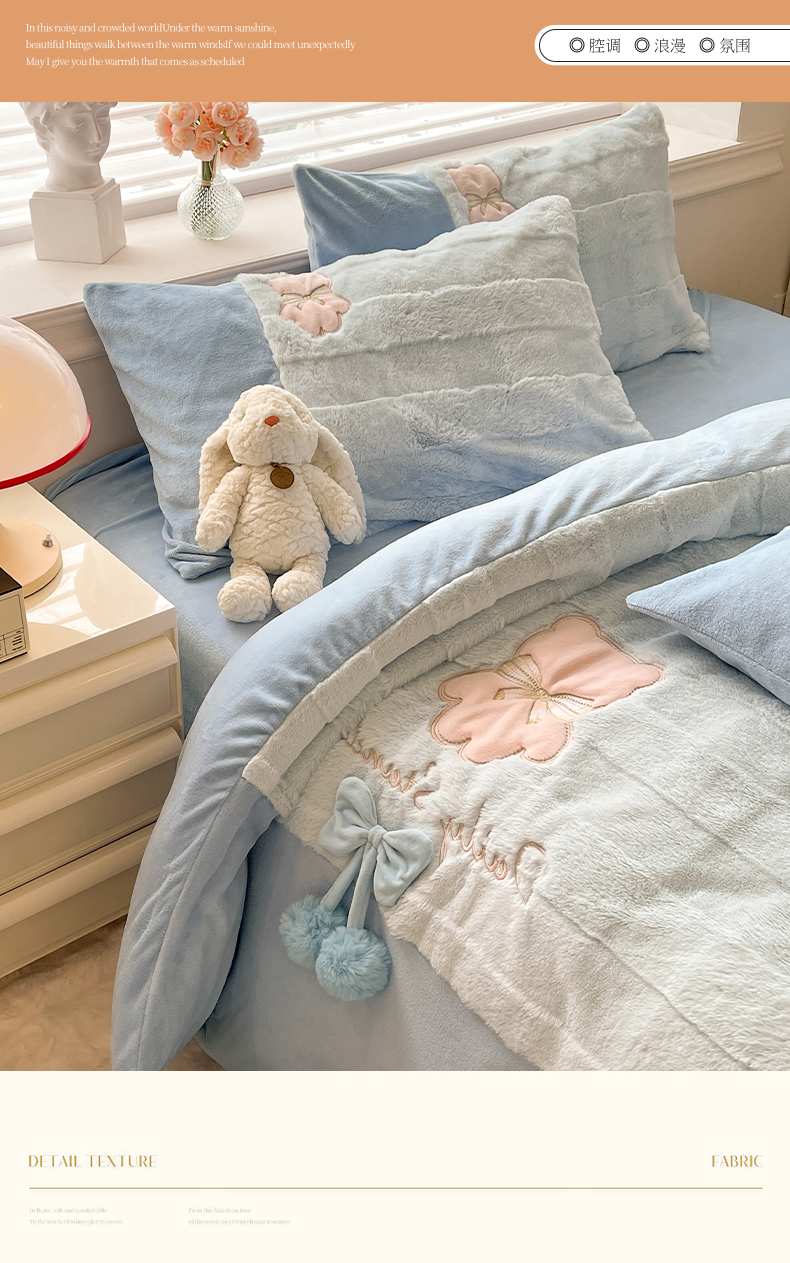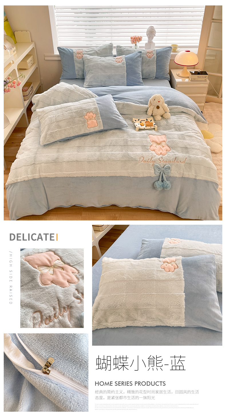 当前位置: 91家纺网 > 商品网购 > 床品套件 > 四件套 > 全棉普通四件套 > 绒棉世家 2025新款A类獭兔毛高端兔兔绒工艺款四件套-小熊系列 蝴蝶小熊-蓝