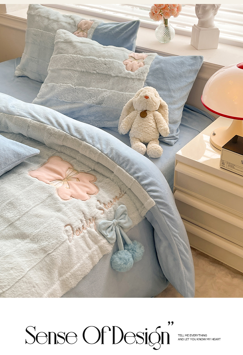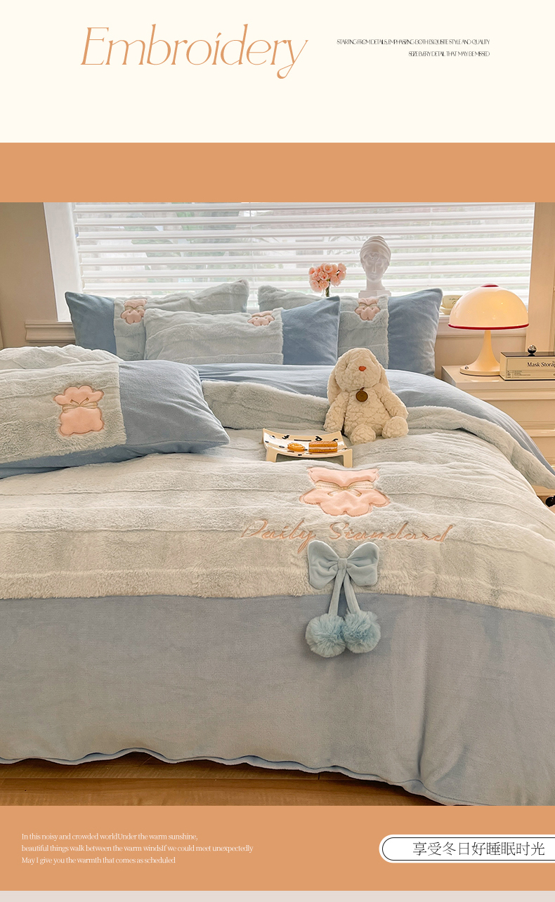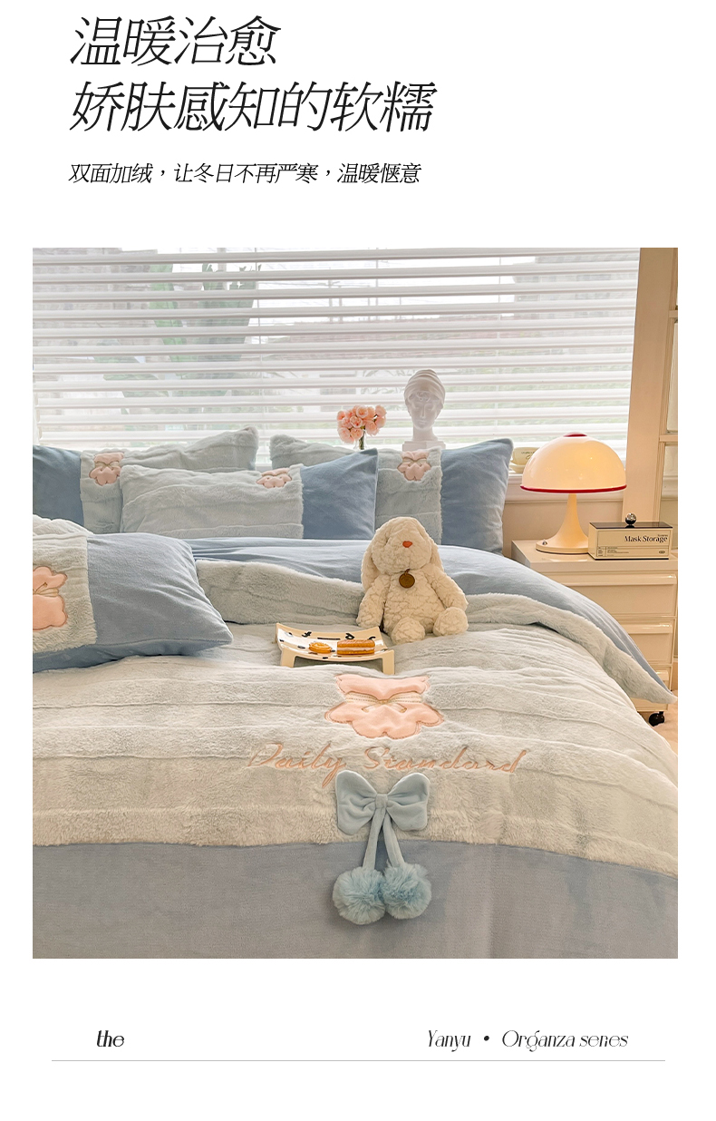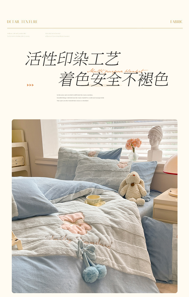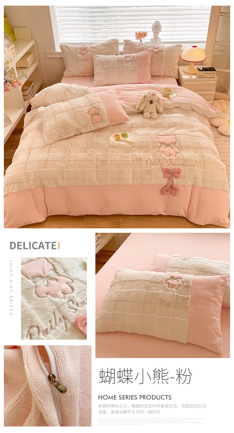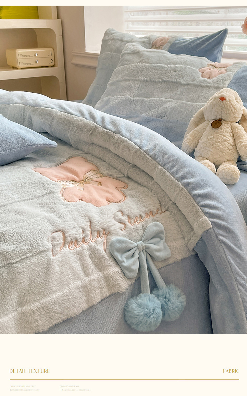 当前位置: 91家纺网 > 商品网购 > 床品套件 > 四件套 > 全棉普通四件套 > 绒棉世家 2025新款A类獭兔毛高端兔兔绒工艺款四件套-小熊系列 蝴蝶小熊-蓝