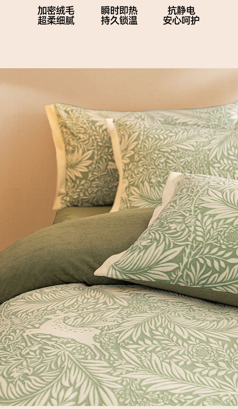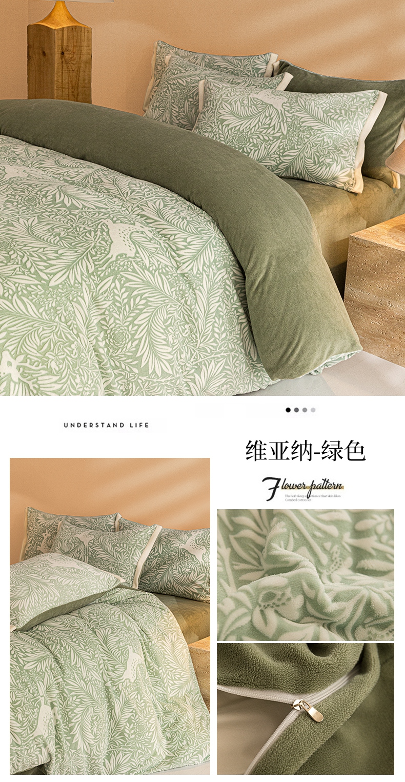 2024新保暖-秋冬A类高端加厚牛奶绒雕花四件套系列 维亚纳-绿色