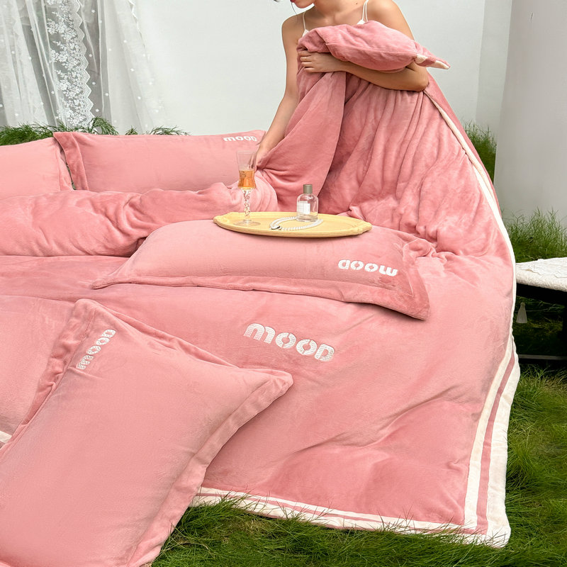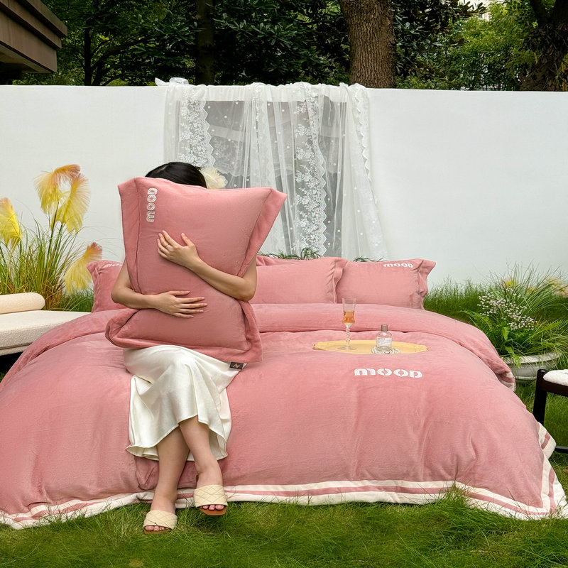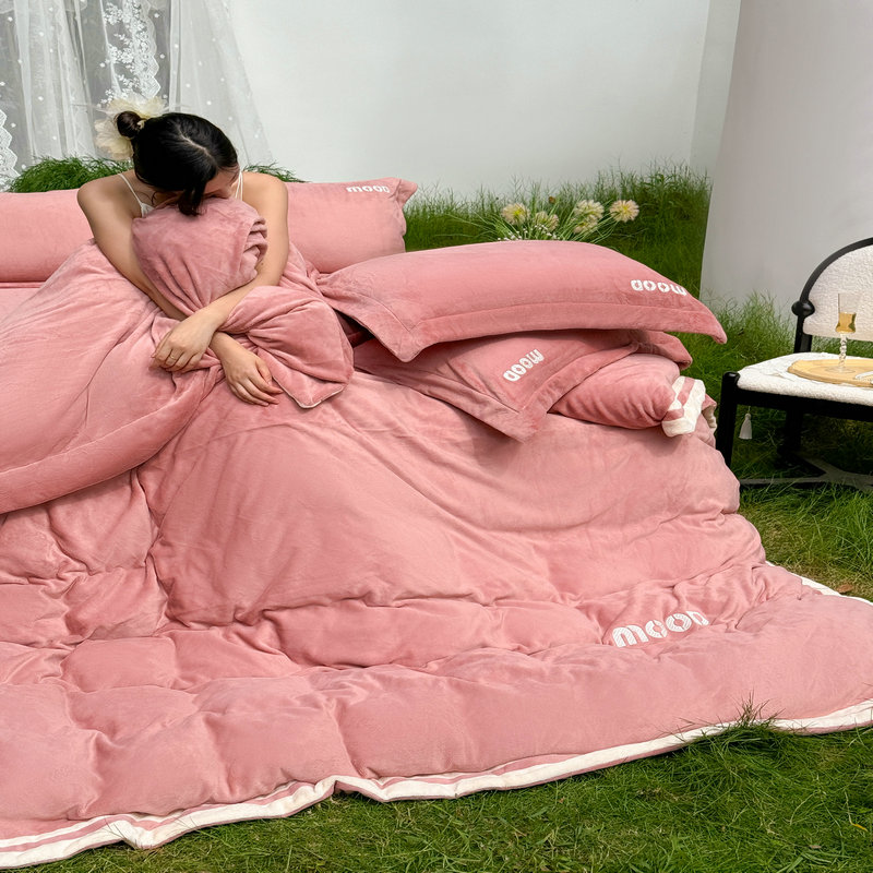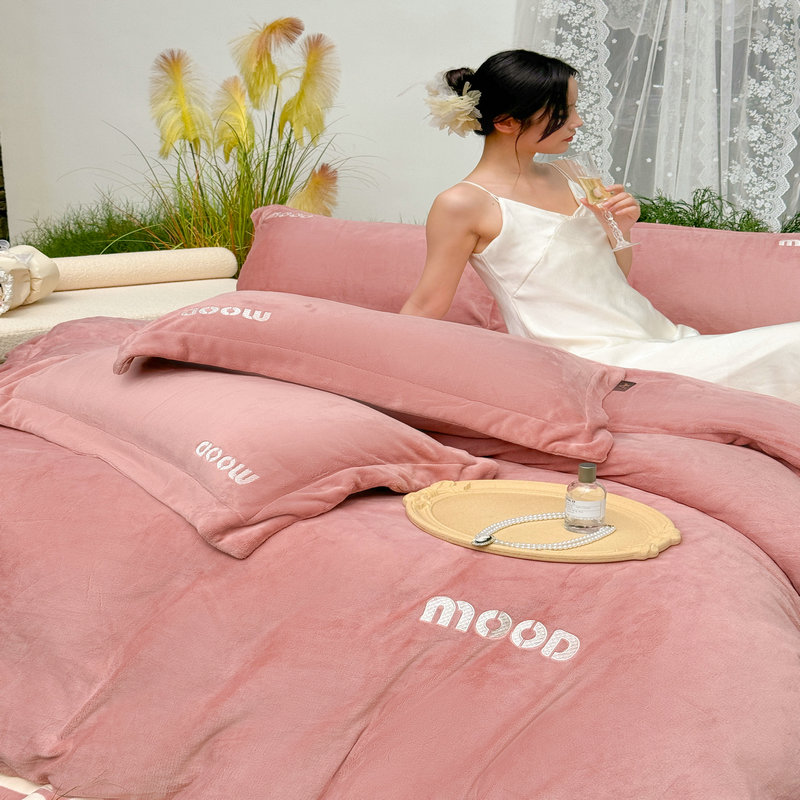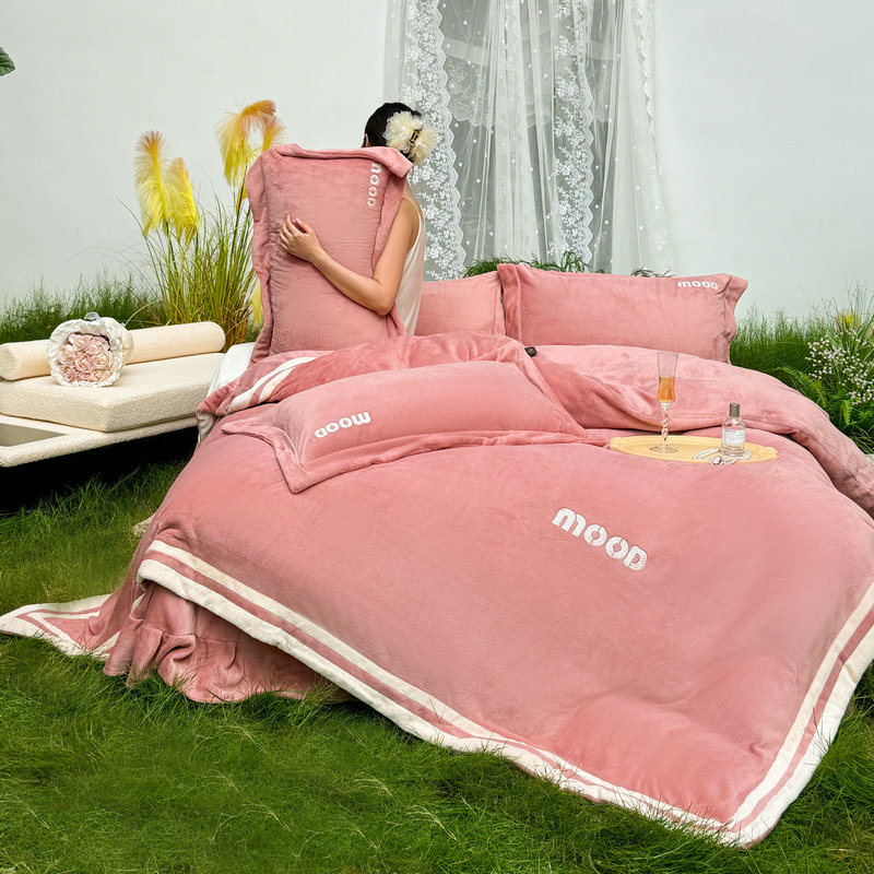 新月家纺(锦威郎) 2024新款高贵轻奢保暖牛奶绒四件套系列-摩登 粉色