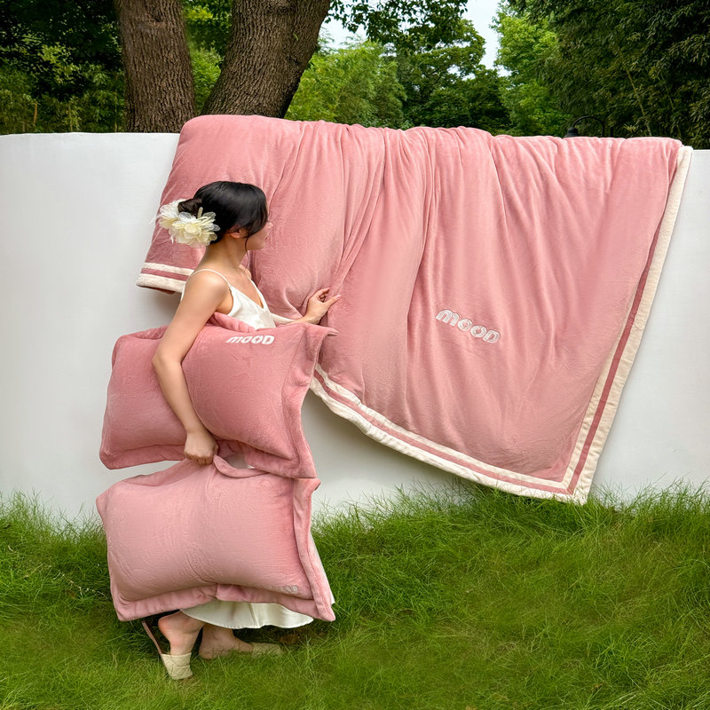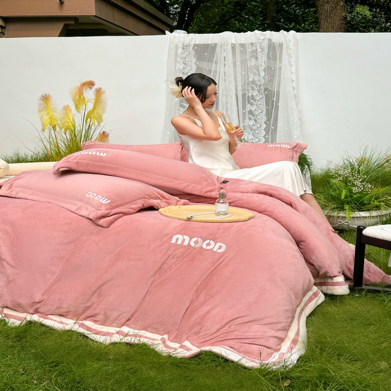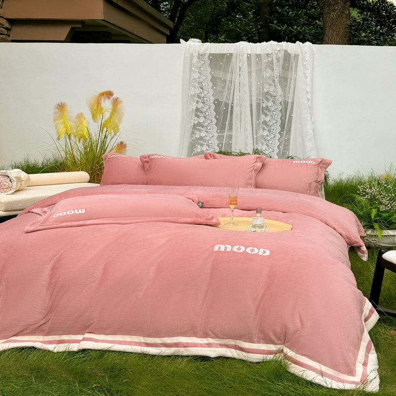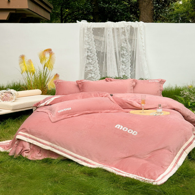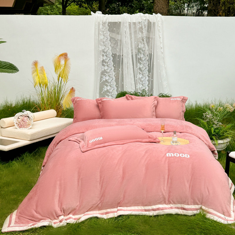 新月家纺(锦威郎) 2024新款高贵轻奢保暖牛奶绒四件套系列-摩登 粉色