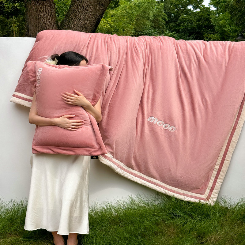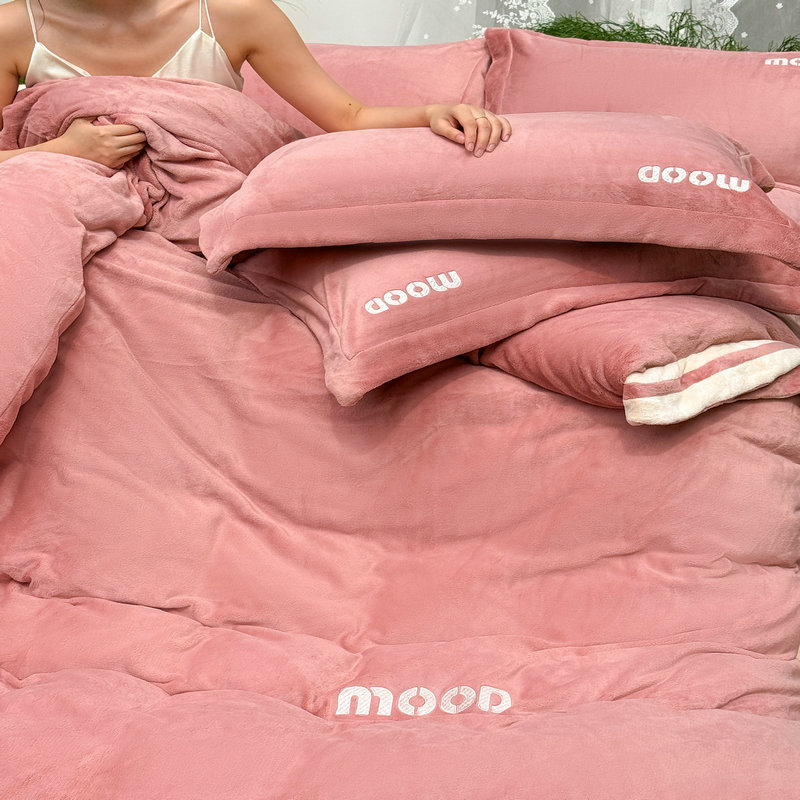 商品名称:新月家纺(锦威郎) 2024新款高贵轻奢保暖牛奶绒四件套系列-摩登 粉色