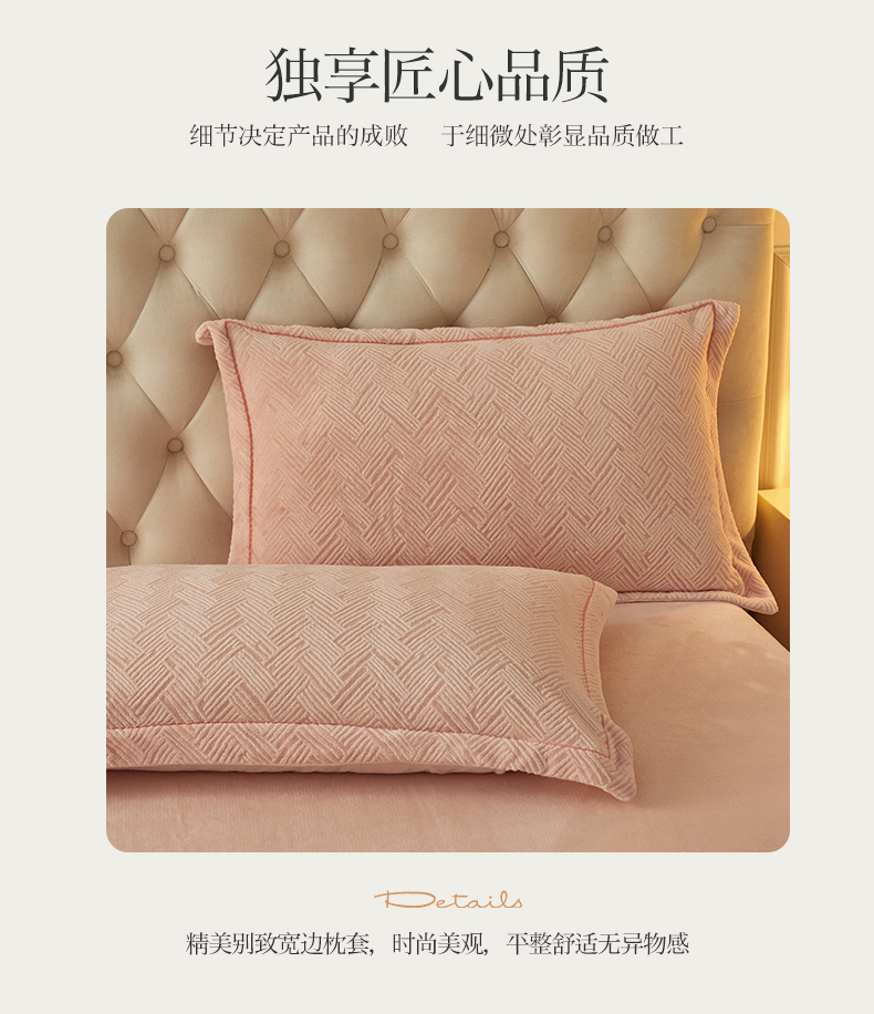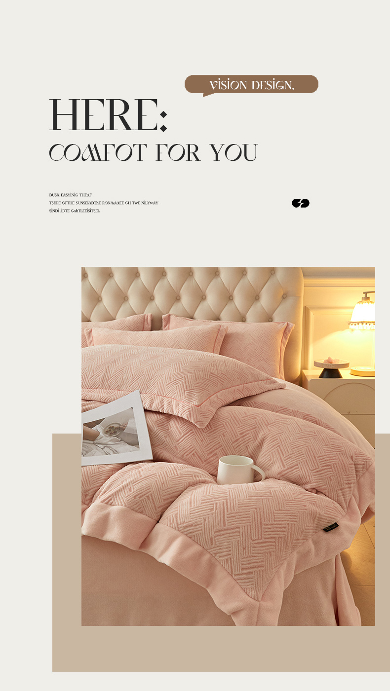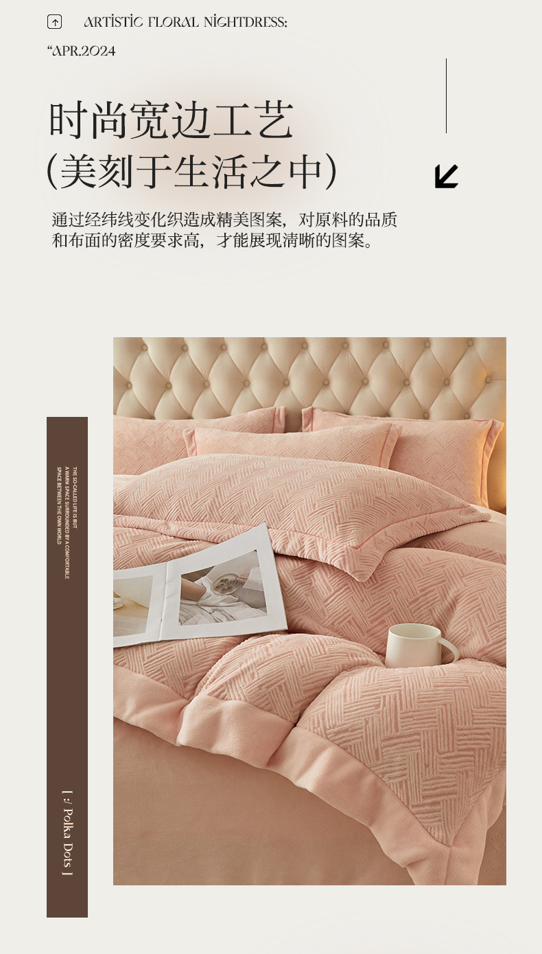 简如 2025新款A类230克加厚立体雕花绒四件套 安吉拉-粉玉