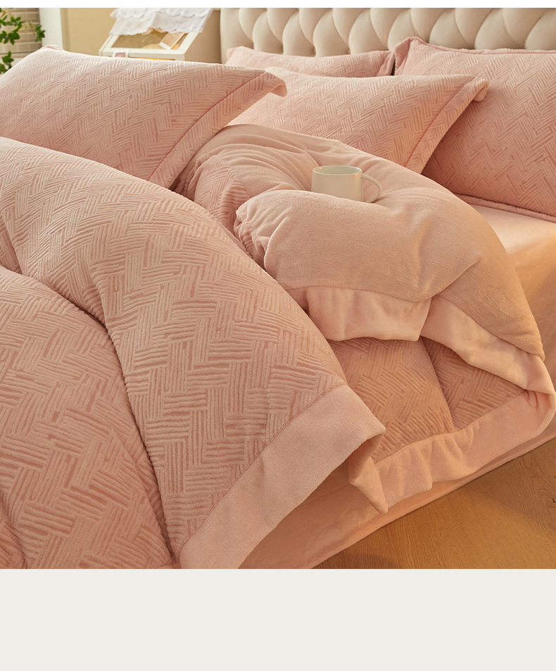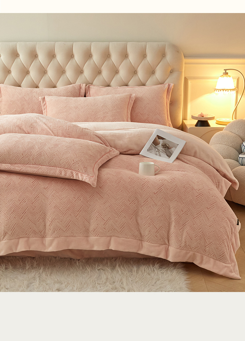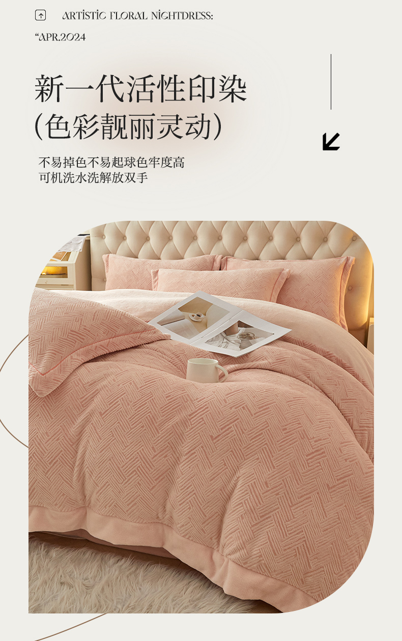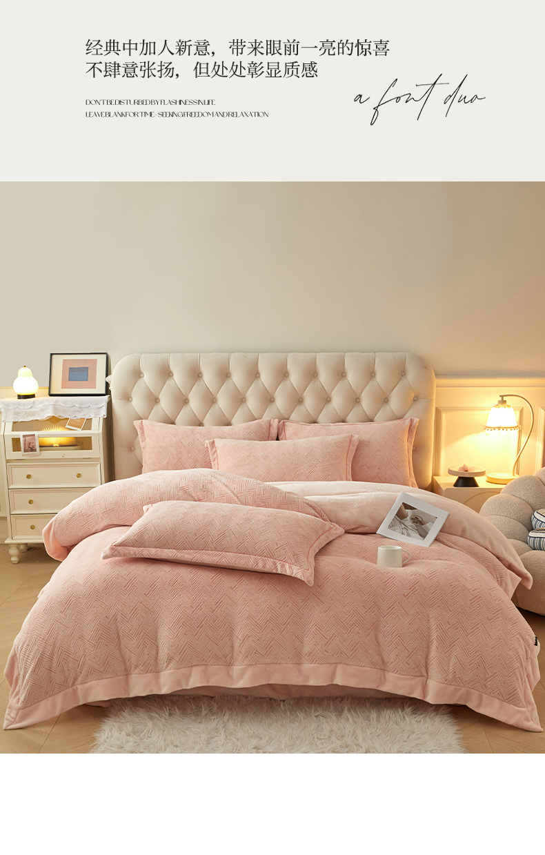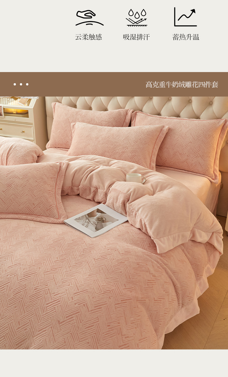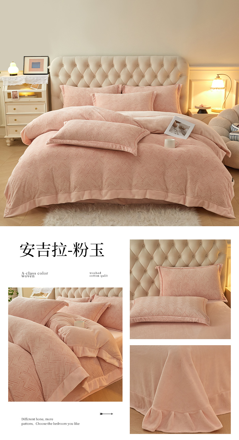 商品名称:简如 2025新款A类230克加厚立体雕花绒四件套 安吉拉-粉玉