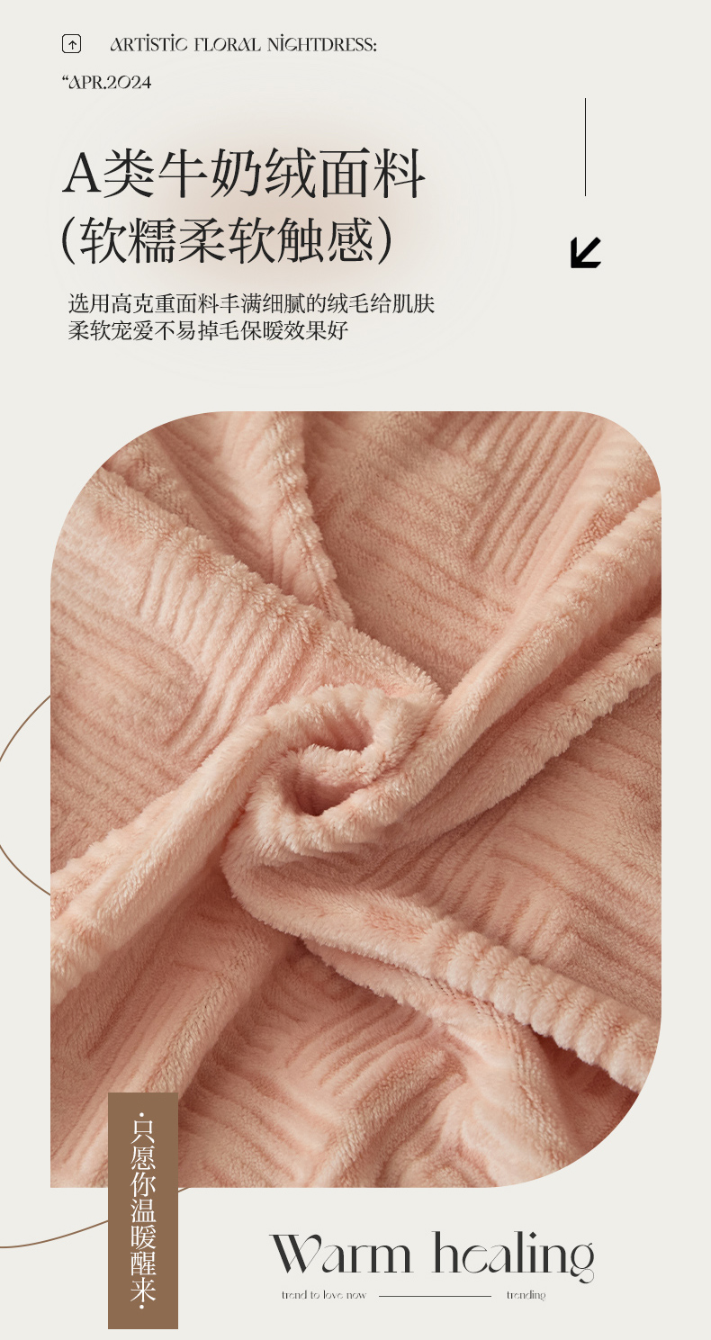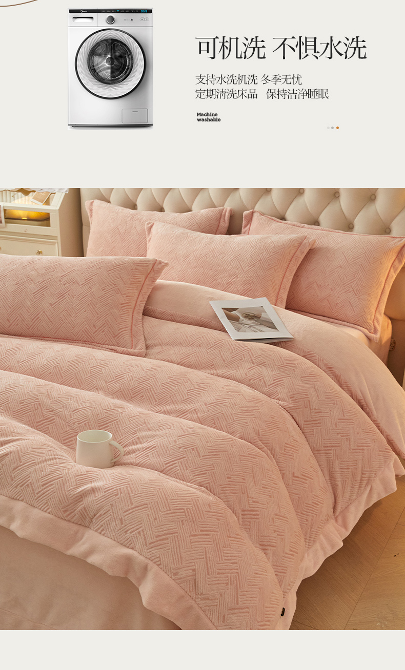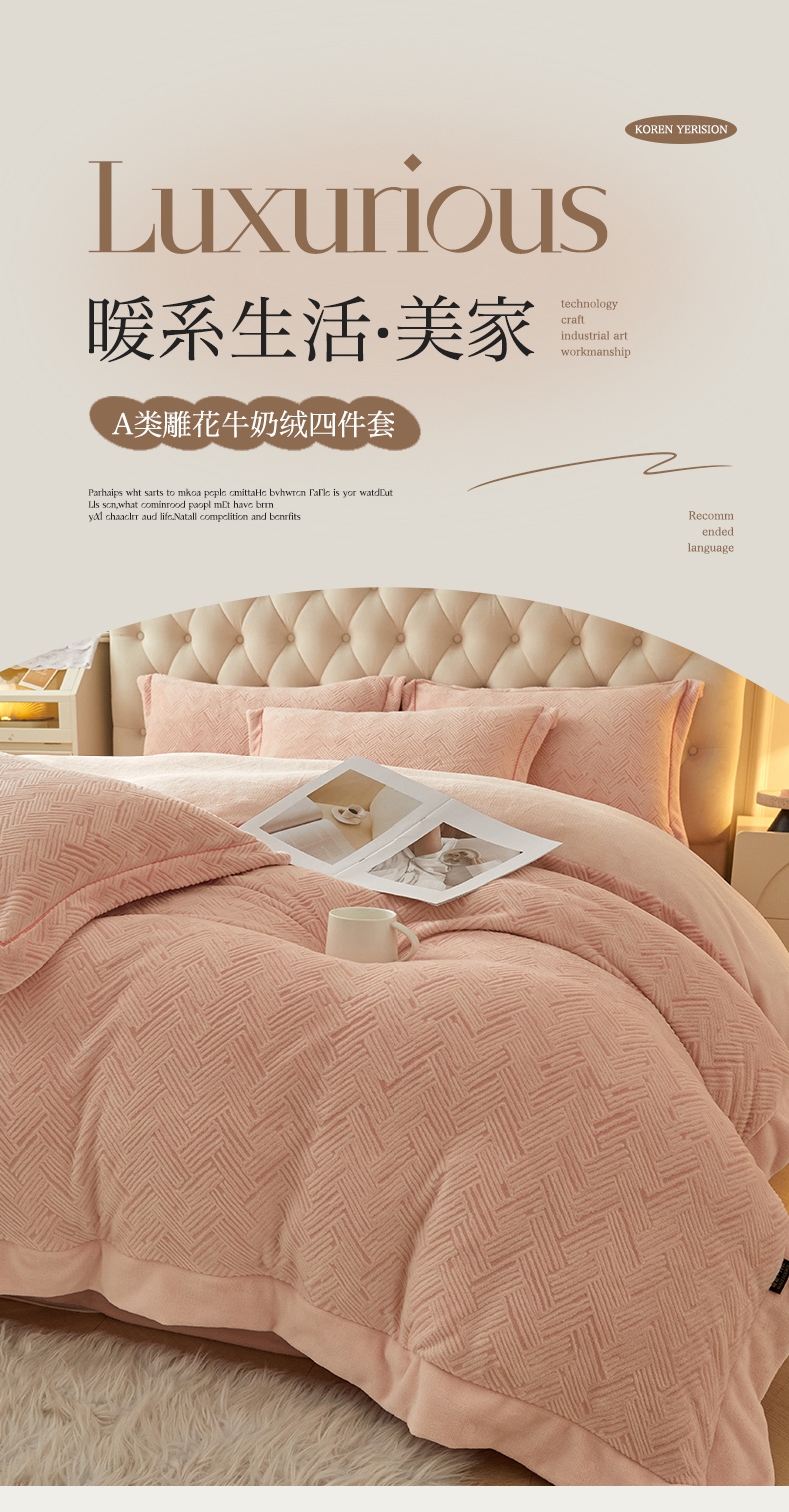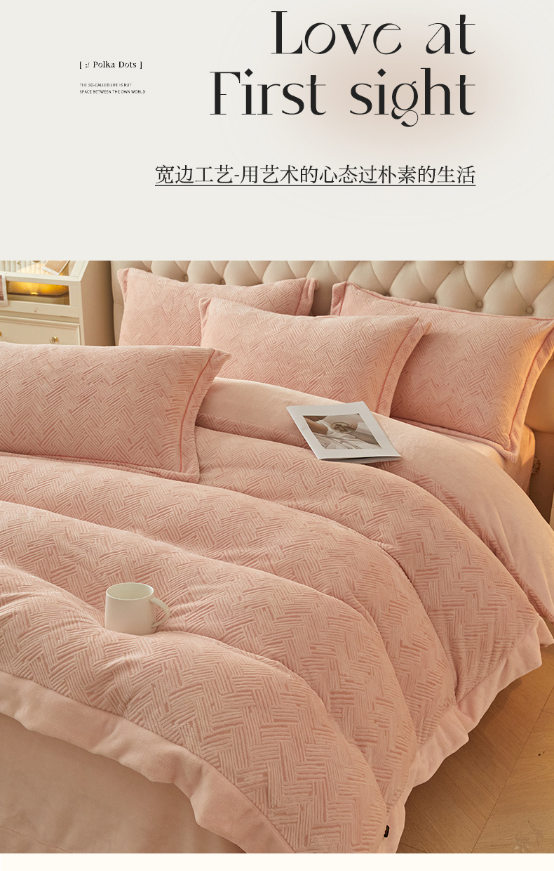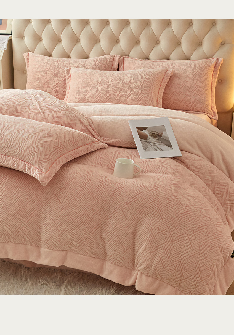 商品名称:简如 2025新款A类230克加厚立体雕花绒四件套 安吉拉-粉玉