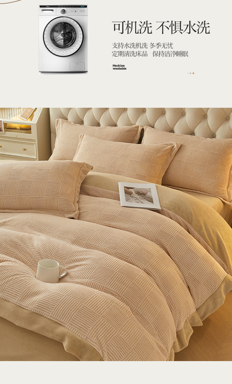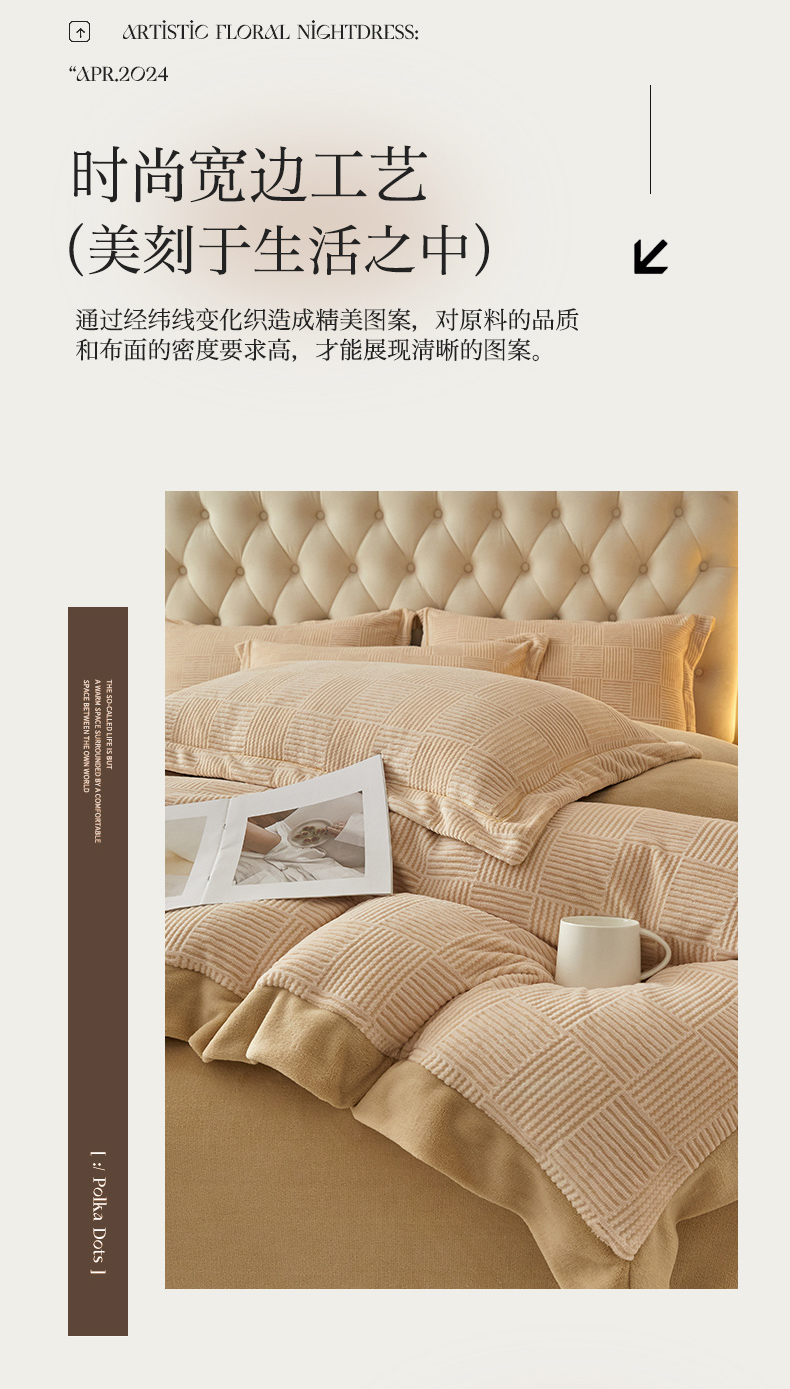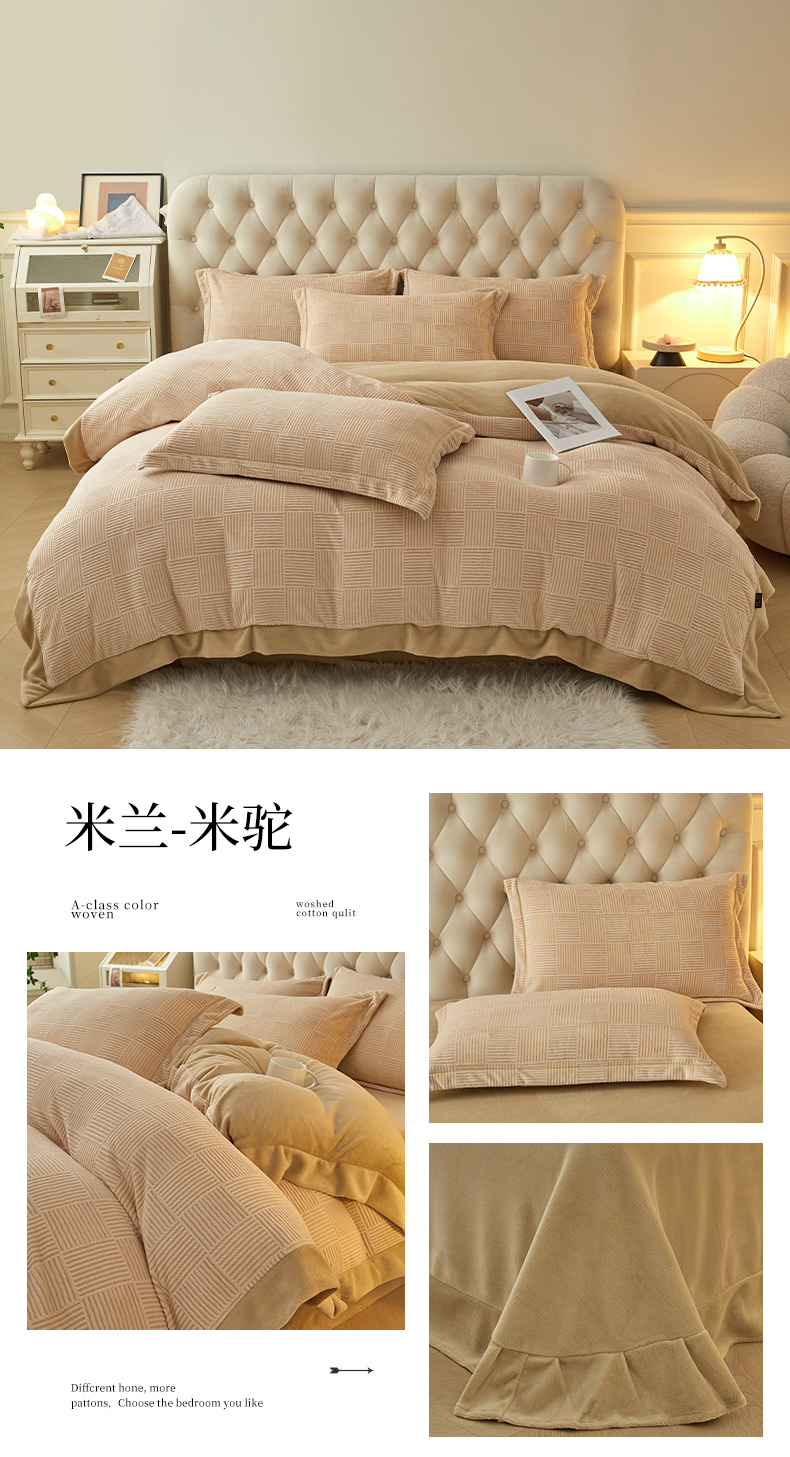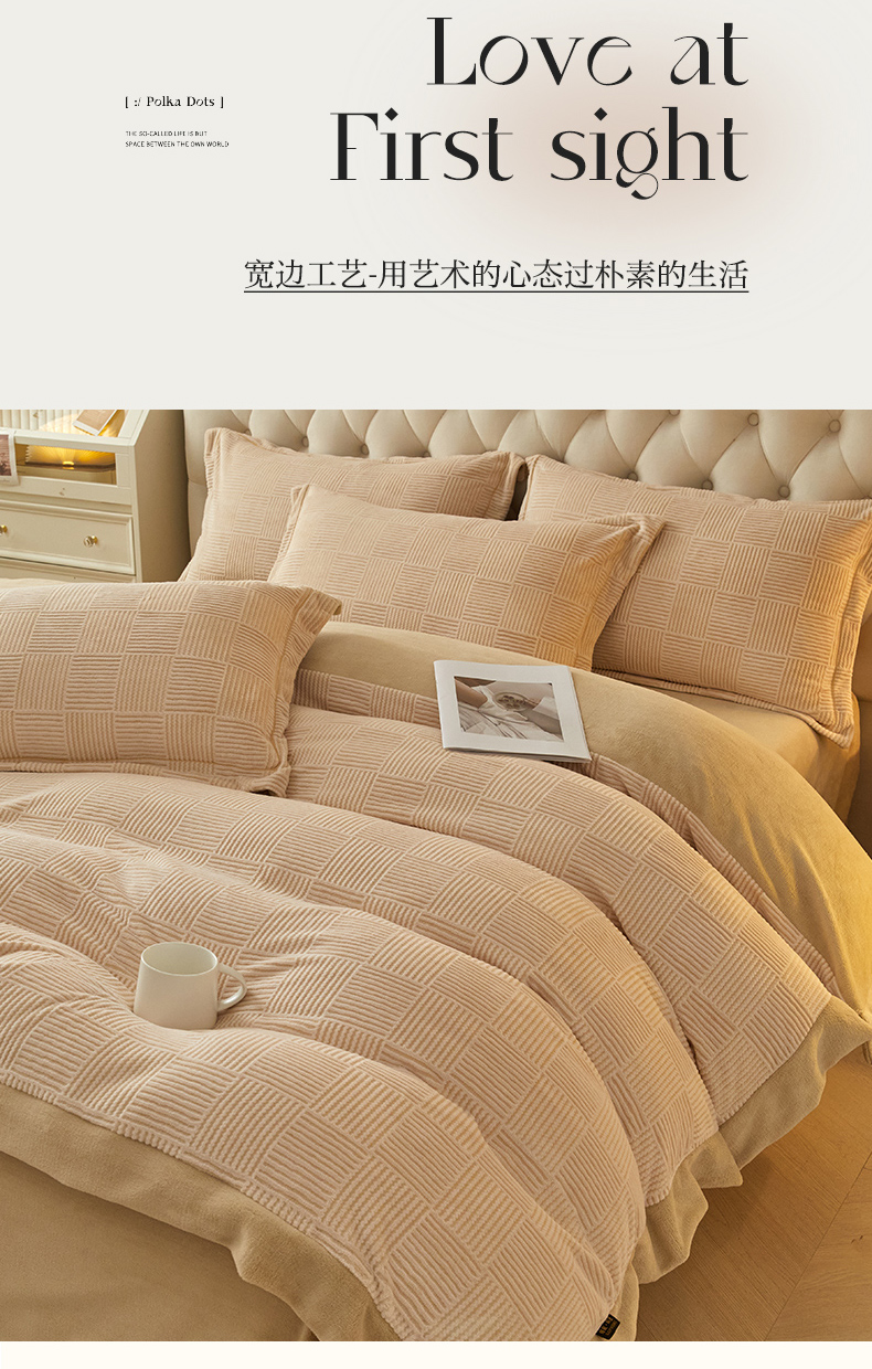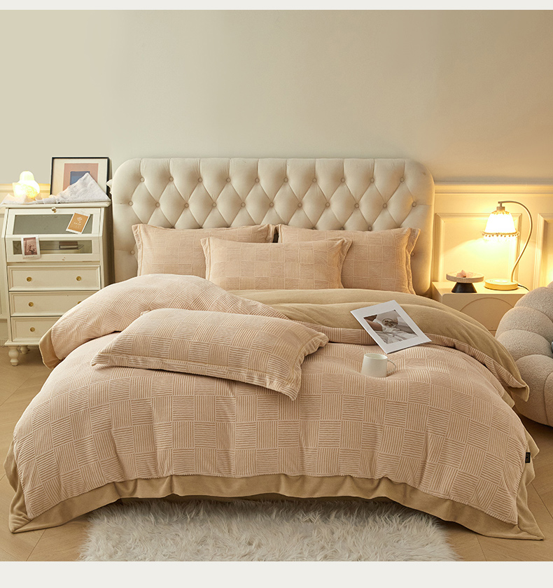 商品名称:简如 2025新款A类230克加厚立体雕花绒四件套 米兰-米驼