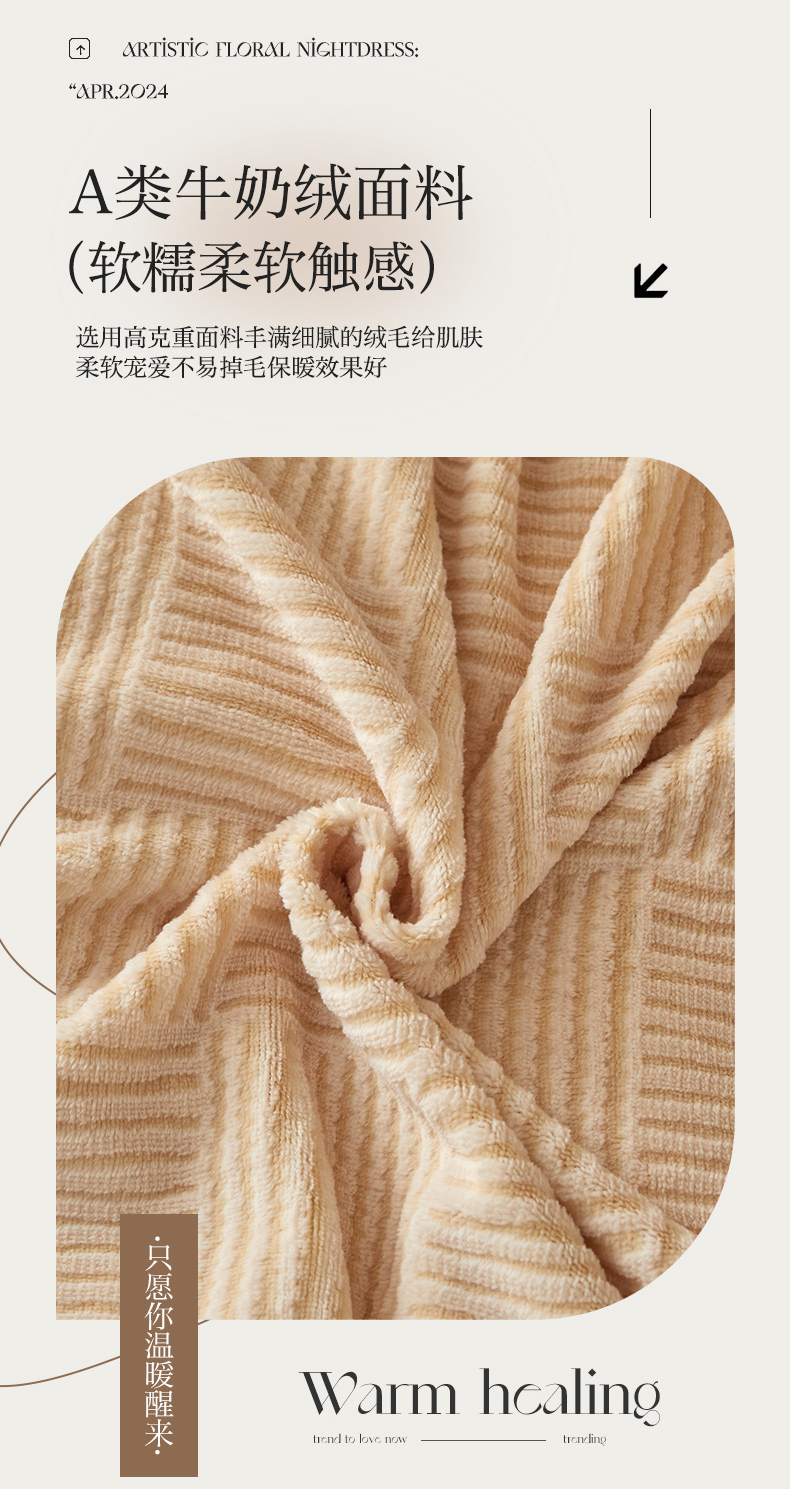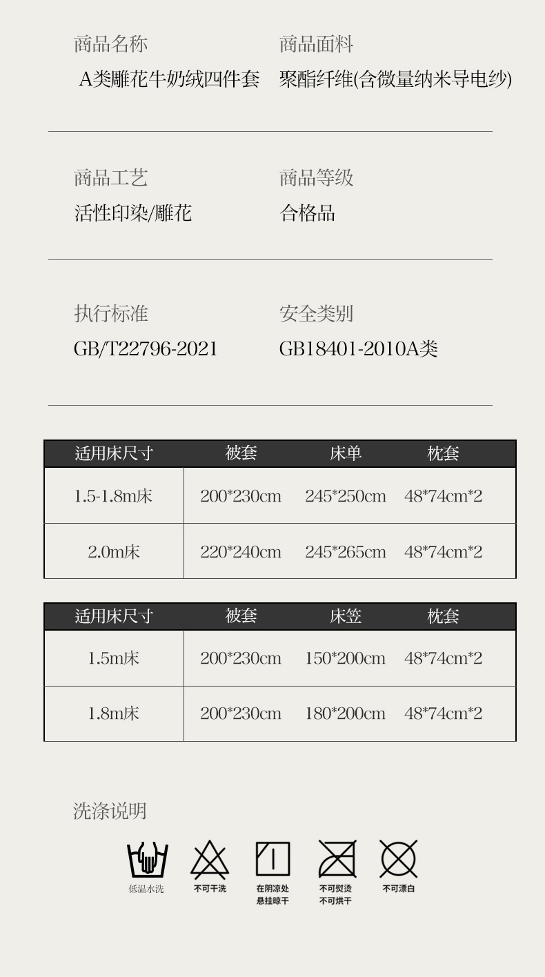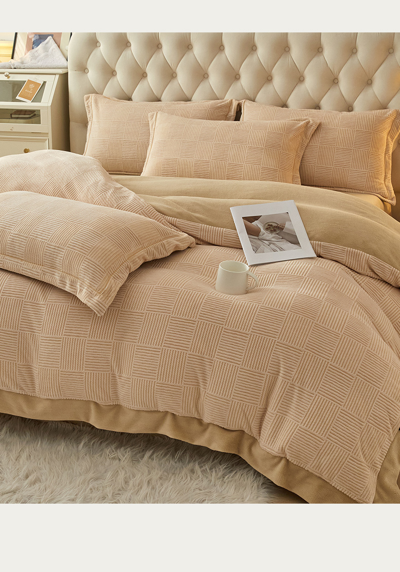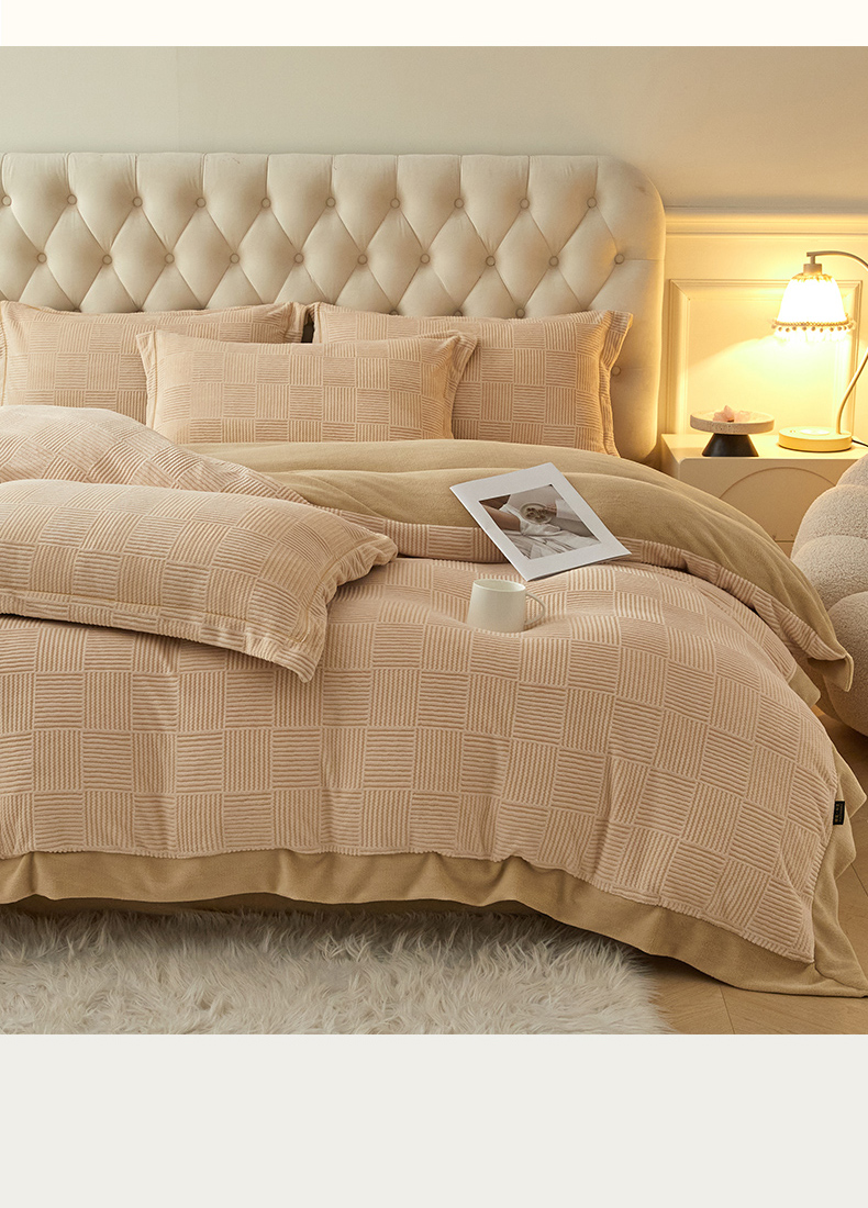 商品名称:简如 2025新款A类230克加厚立体雕花绒四件套 米兰-米驼