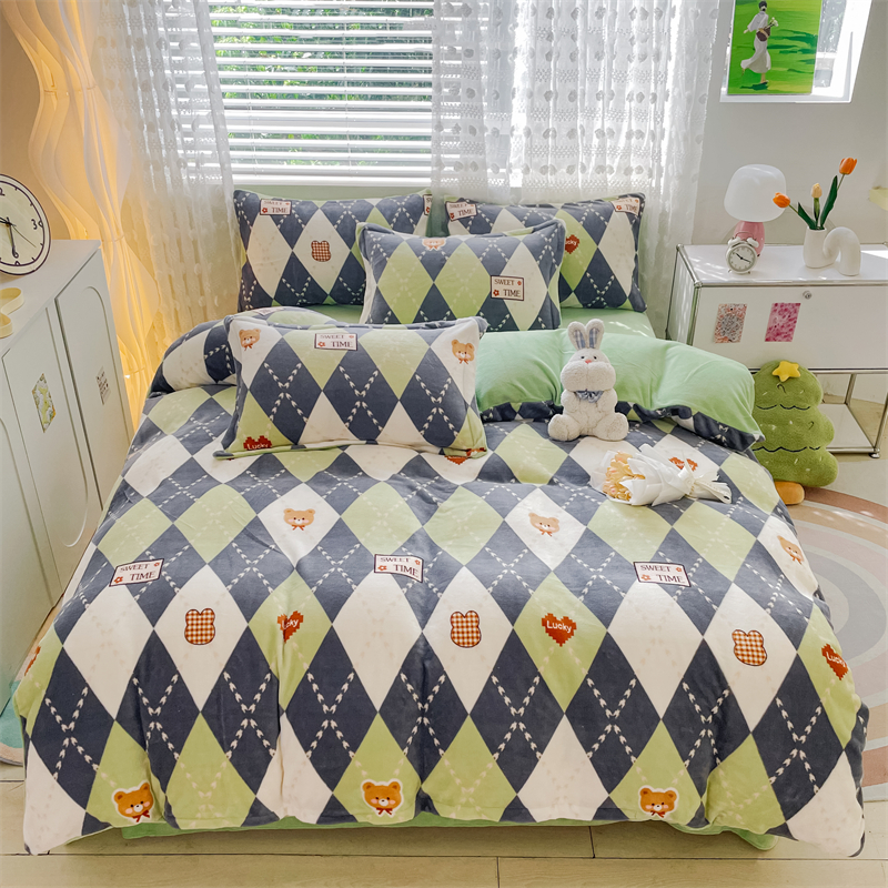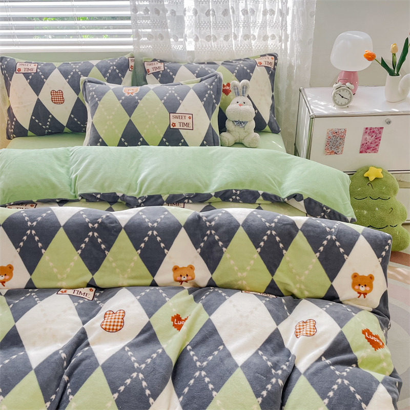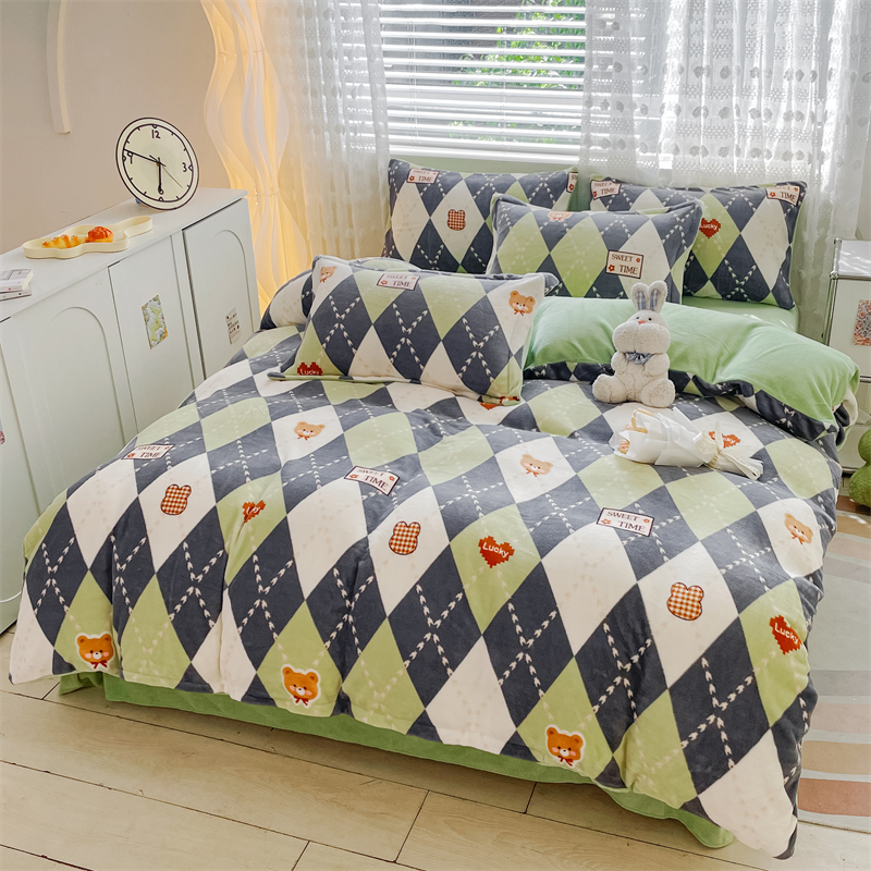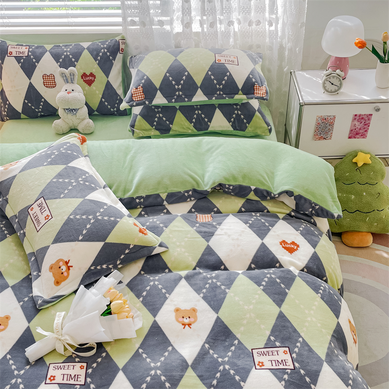 当前位置: 91家纺网 > 商品网购 > 床品套件 > 四件套 > 牛奶绒四件套 > 奥虎家纺2024新款加厚牛奶绒印花四件套方格小熊