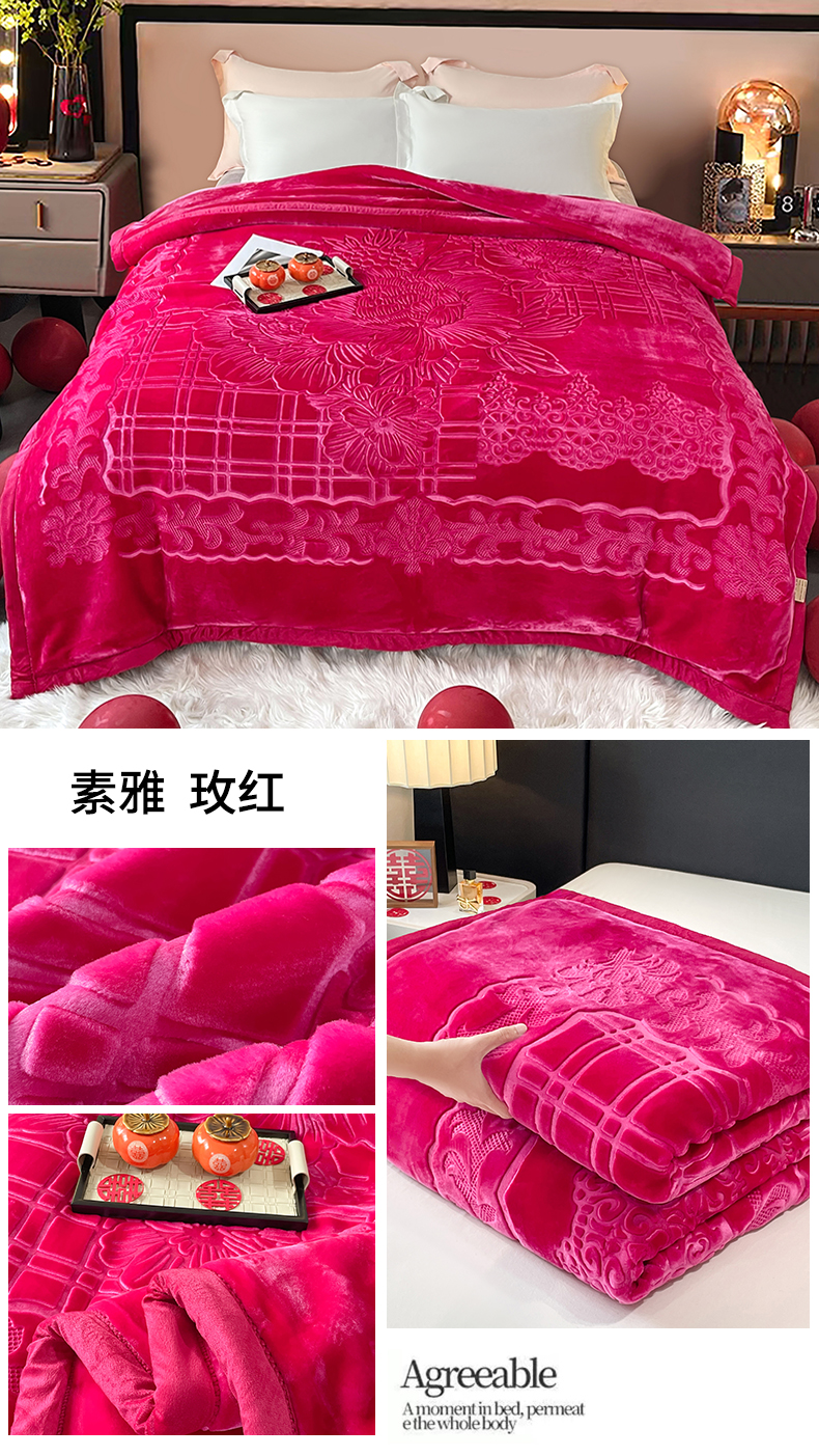 商品名称:凯轩毛毛毯毯子网销专供 2024新款5D压花素色云毛毯毯子毛毛毯毯子毛毯毯子子 素雅-玫红