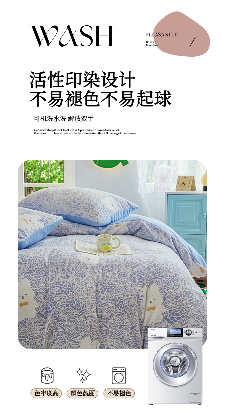 当前位置: 91家纺网 > 商品网购 > 床品套件 > 四件套 > 牛奶绒四件套 > 菡宝 2024新款雕花绒230g全消光牛奶绒四件套及单品 - 四件套 邦尼兔蓝