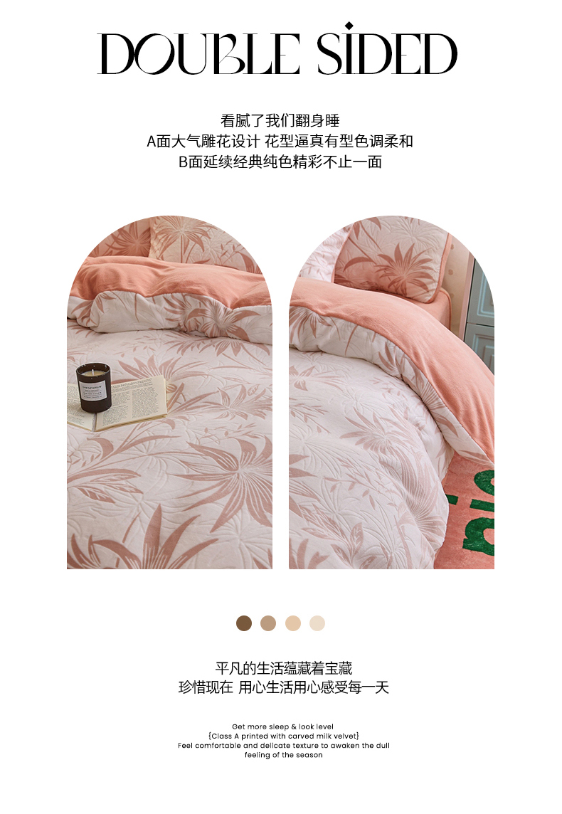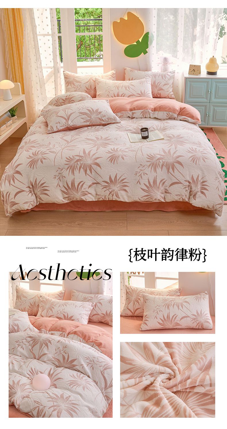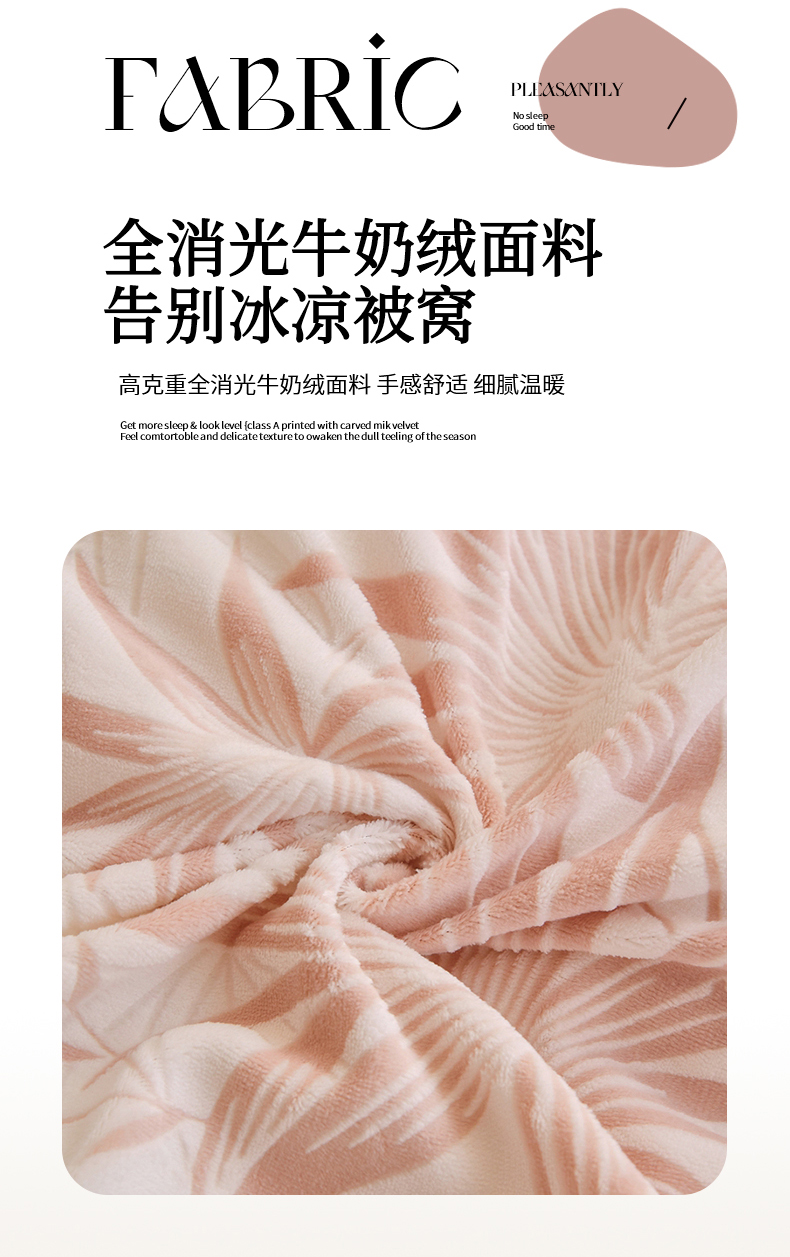 当前位置: 91家纺网 > 商品网购 > 床品套件 > 四件套 > 牛奶绒四件套 > 菡宝 2024新款雕花绒230g全消光牛奶绒四件套及单品 - 四件套 枝叶韵律粉