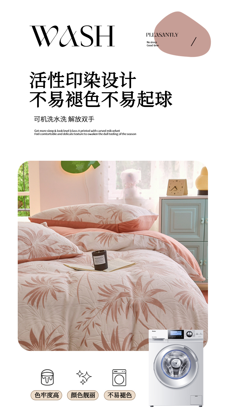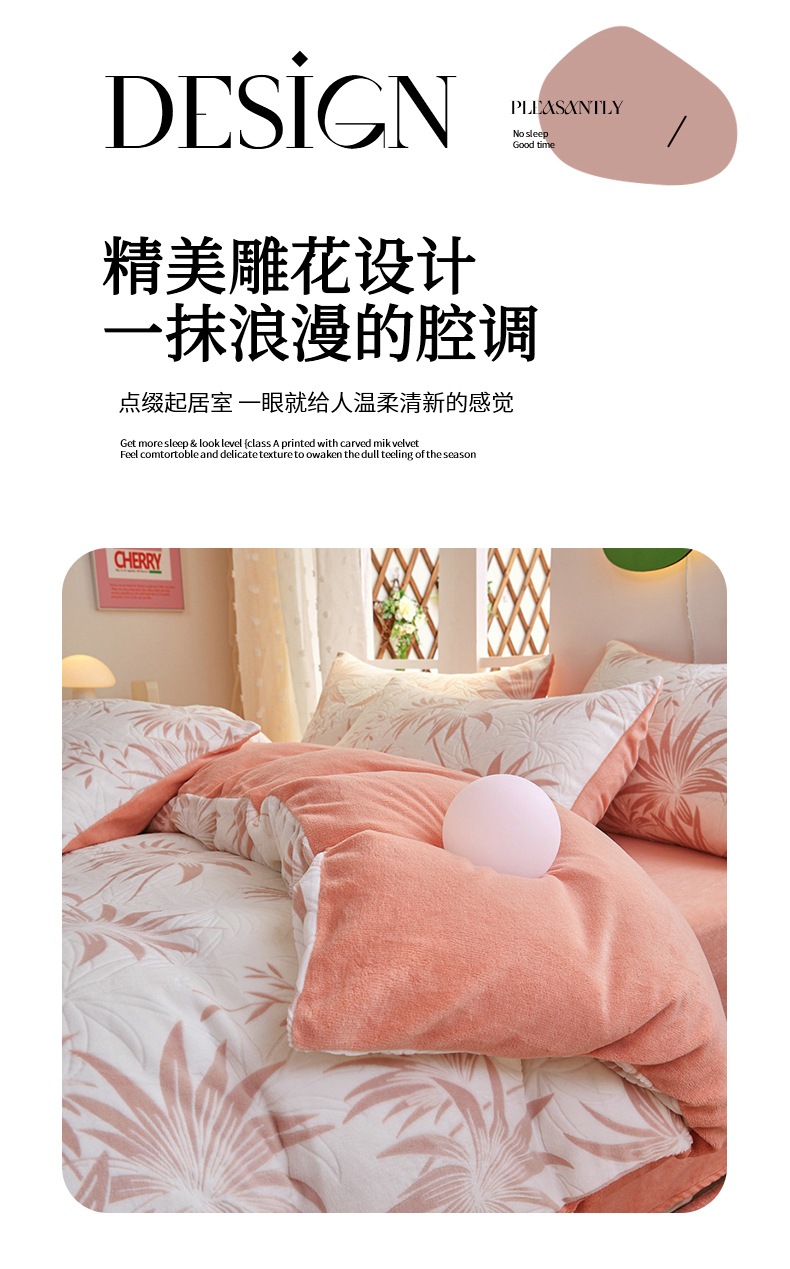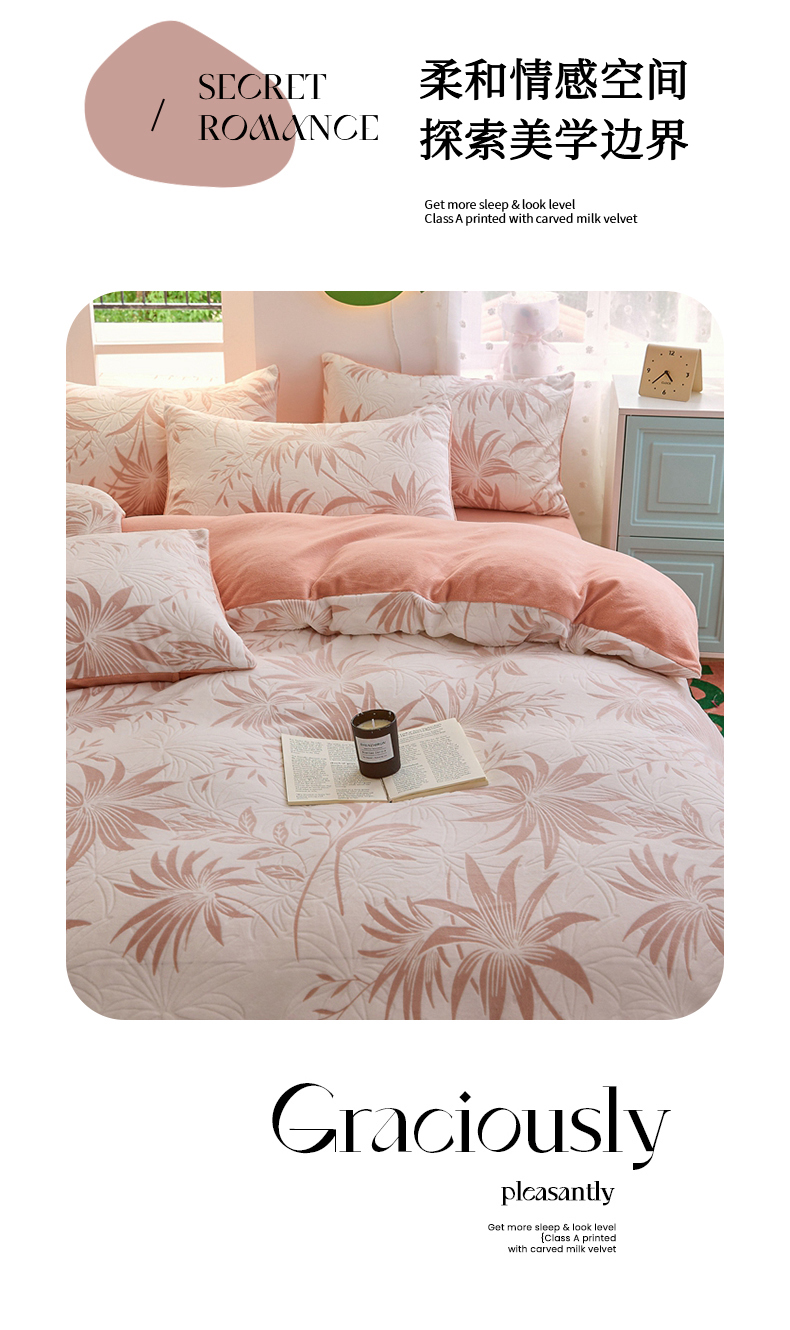 当前位置: 91家纺网 > 商品网购 > 床品套件 > 四件套 > 牛奶绒四件套 > 菡宝 2024新款雕花绒230g全消光牛奶绒四件套及单品 - 四件套 枝叶韵律粉