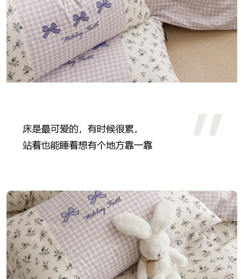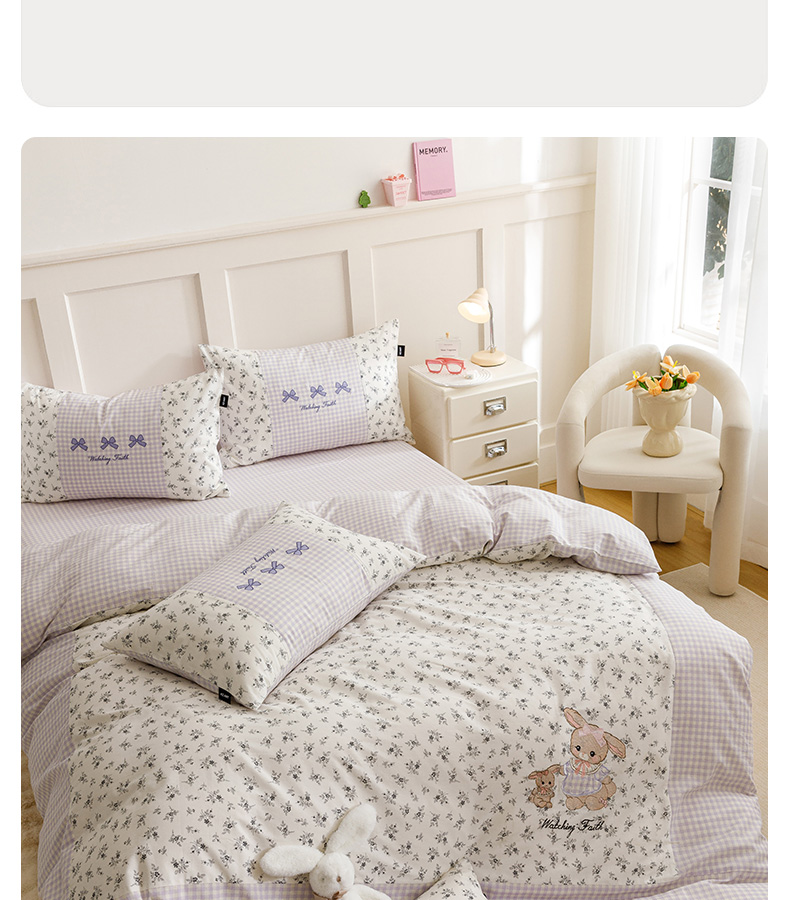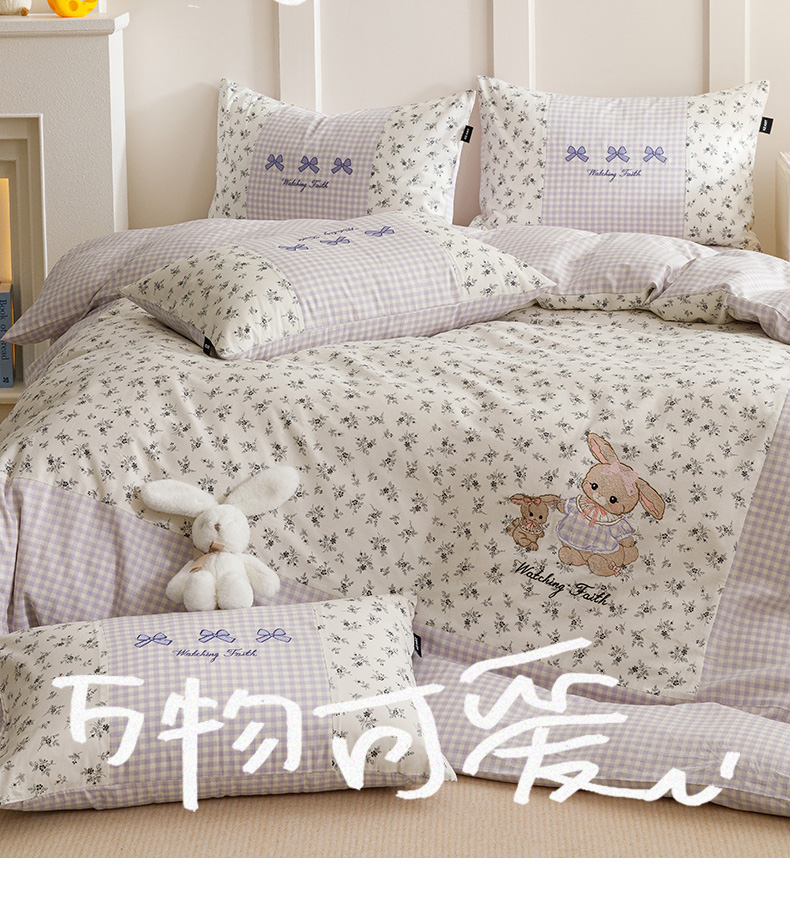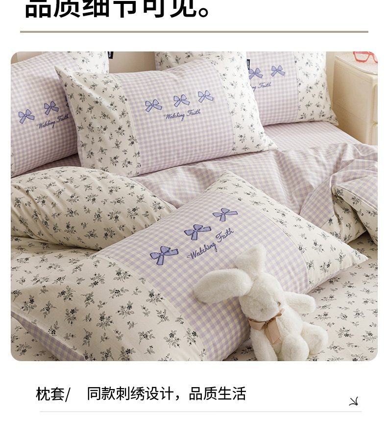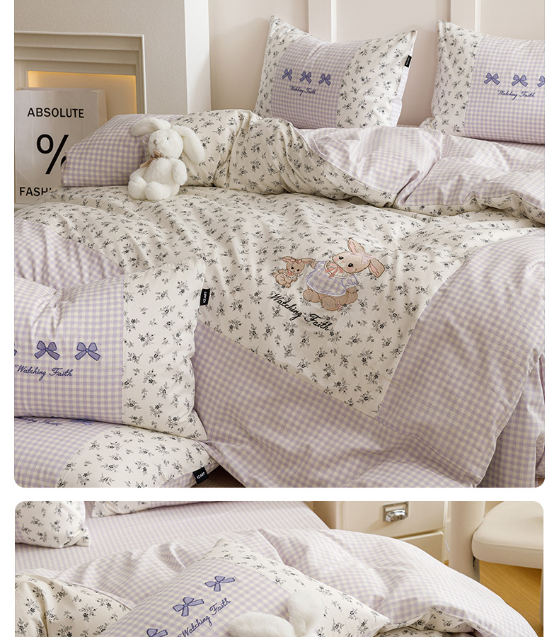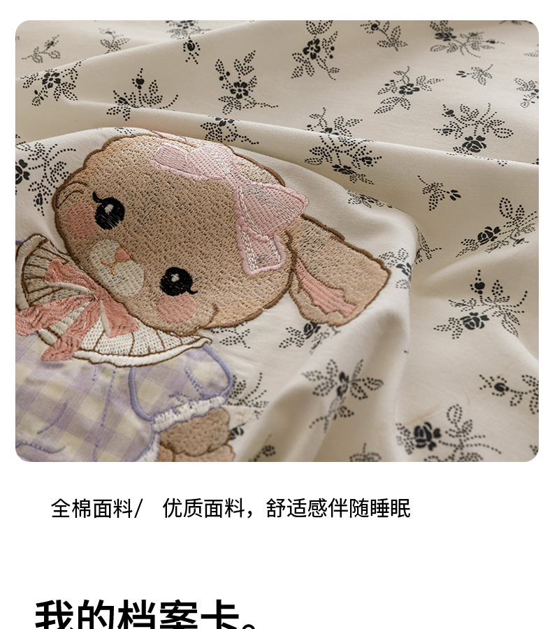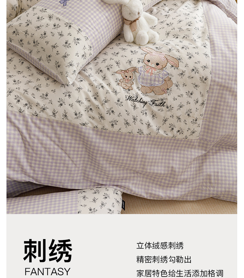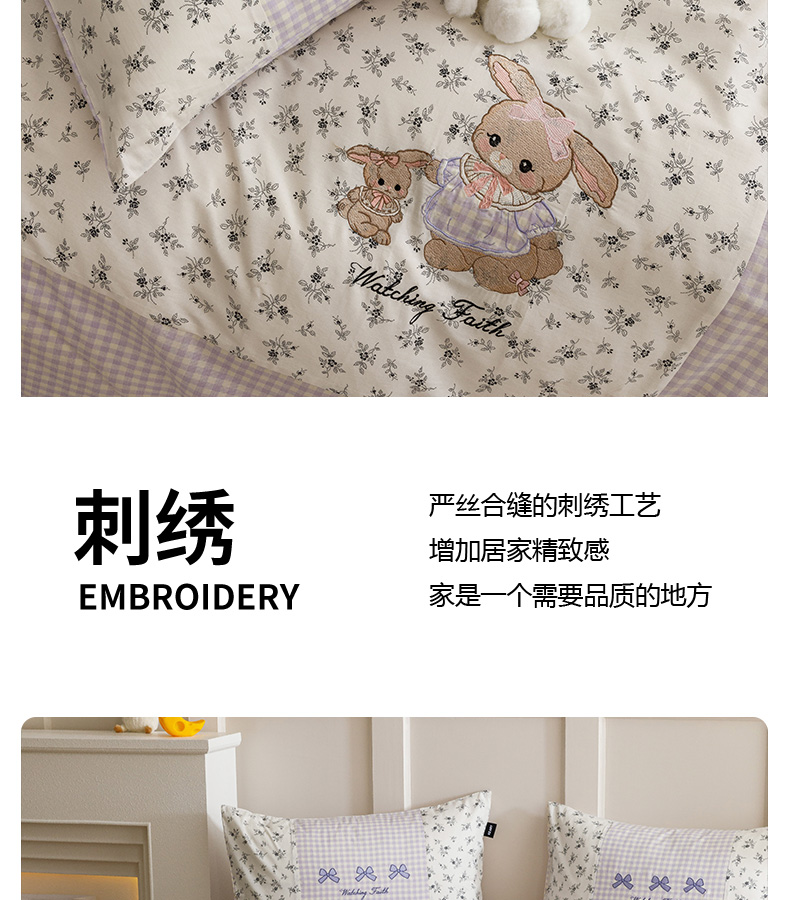 商品名称:卡姿家纺 2024秋冬呆萌小刺绣第三季 蝴蝶结小兔子-紫格