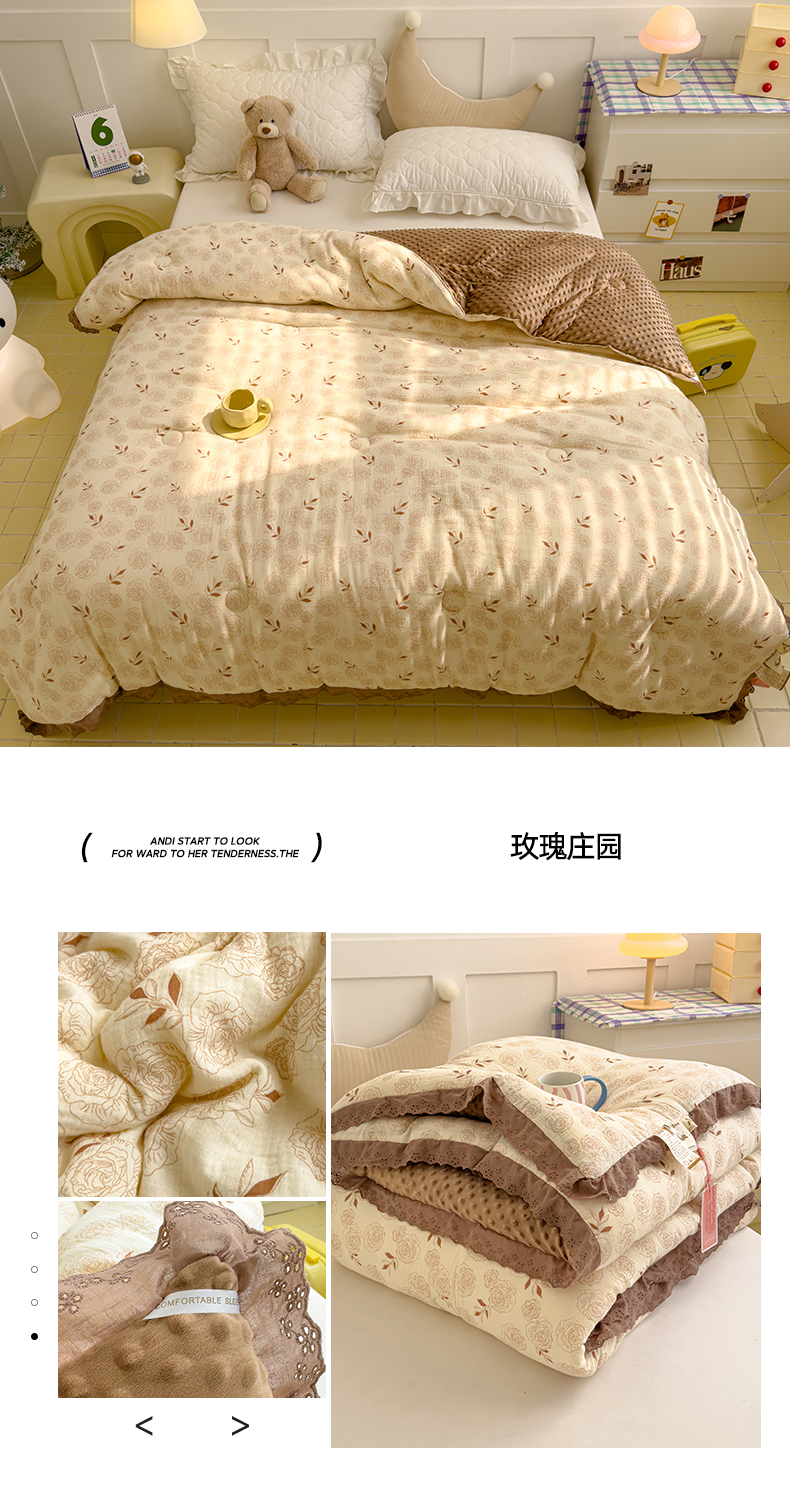 • 91家纺网 家纺一手货源 找家纺 芯恋家居 2025新款全棉皱皱纱双层纱豆豆被大豆被 玫瑰庄园