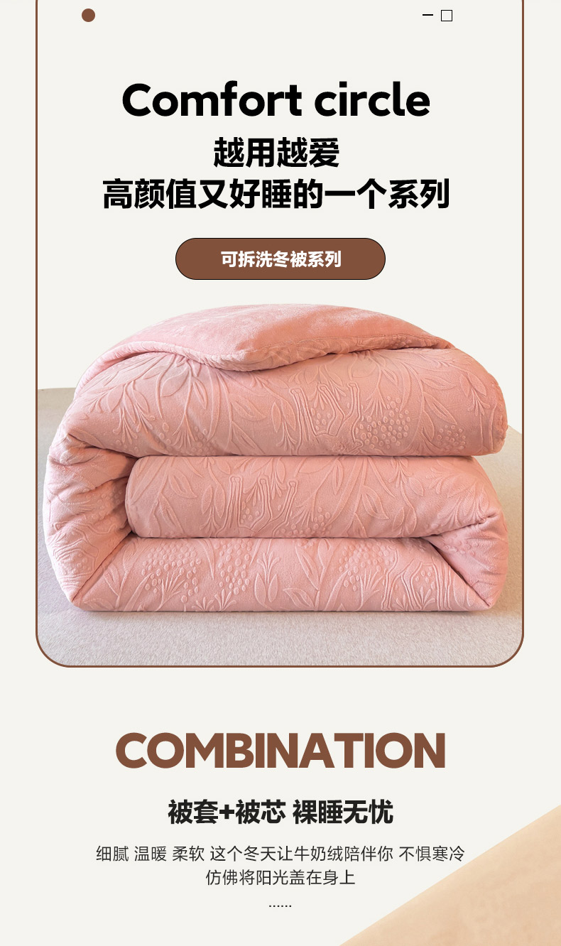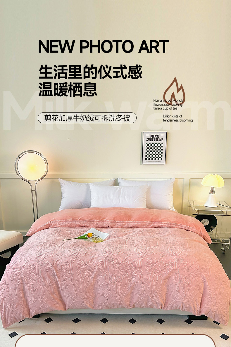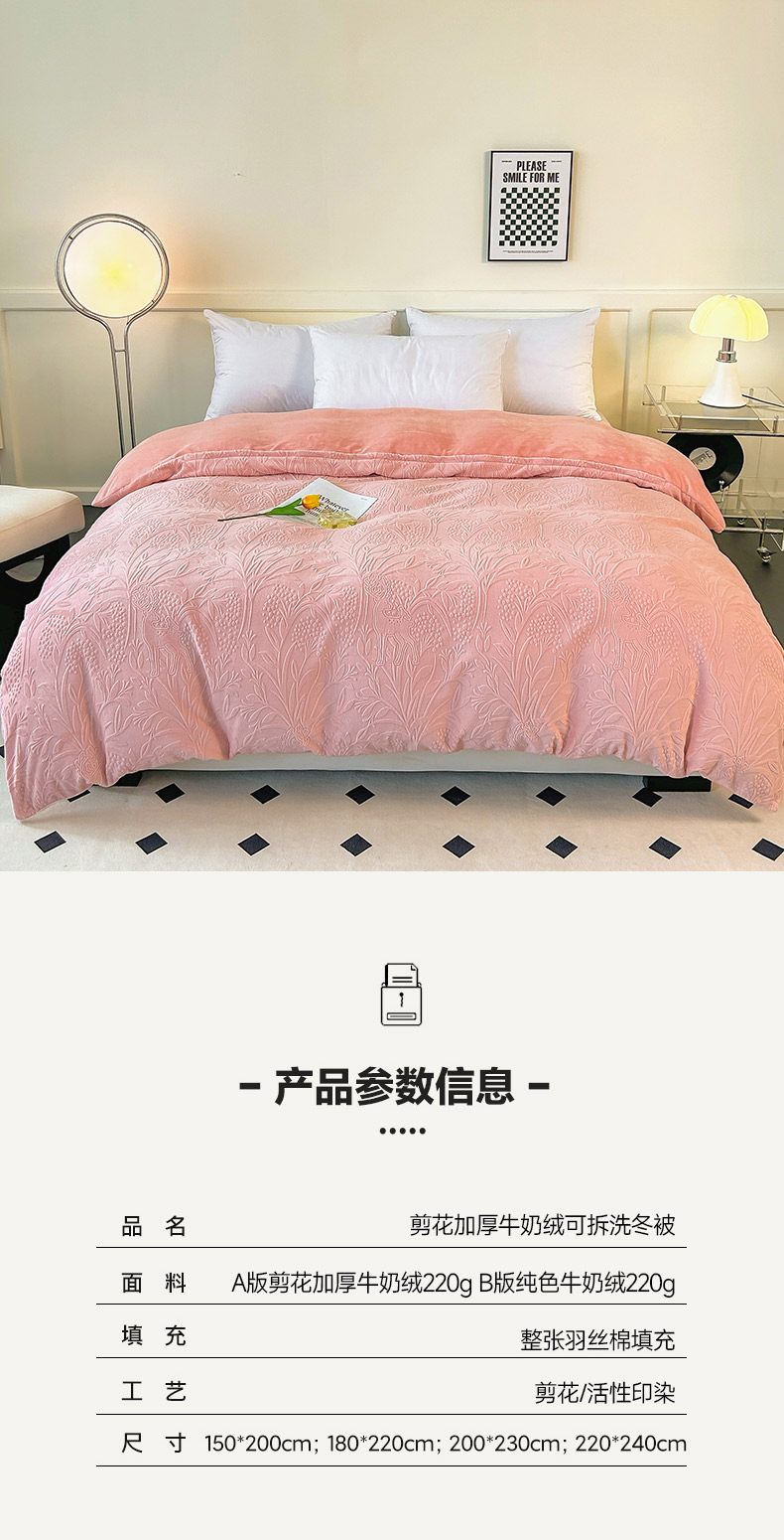 • 91家纺网 家纺一手货源 找家纺 睡棉坊 2024新款高克重剪花牛奶绒可拆洗冬被被子被芯 森林迷雾