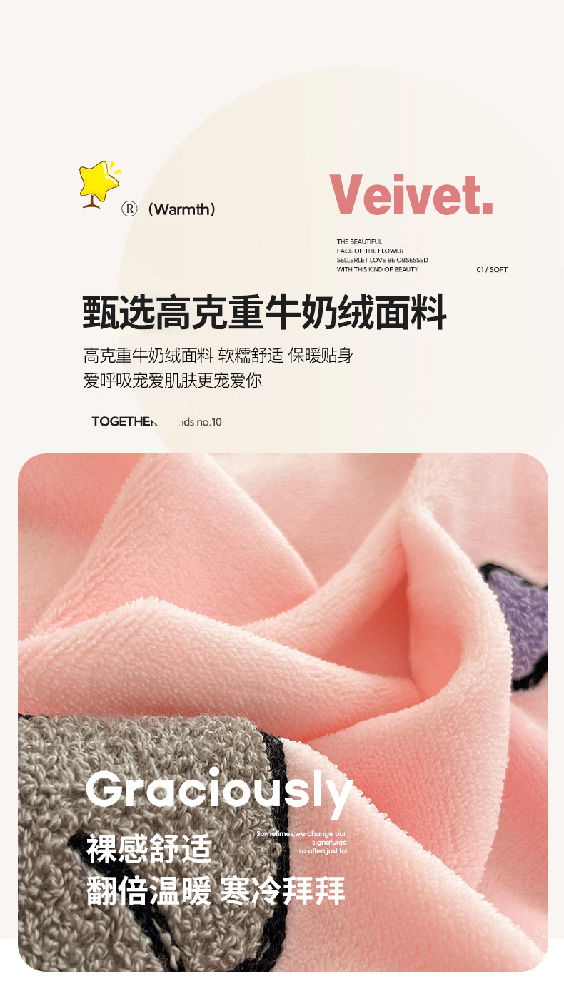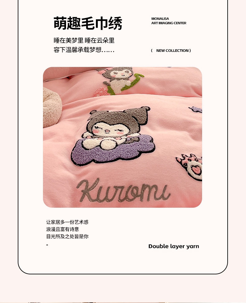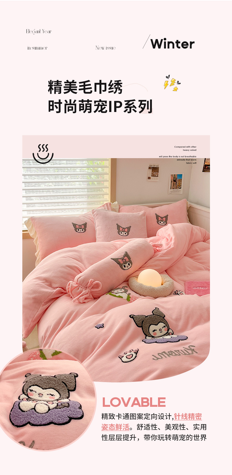 丝印良品 2024秋冬卡通毛巾绣牛奶绒四件套 甜心-粉