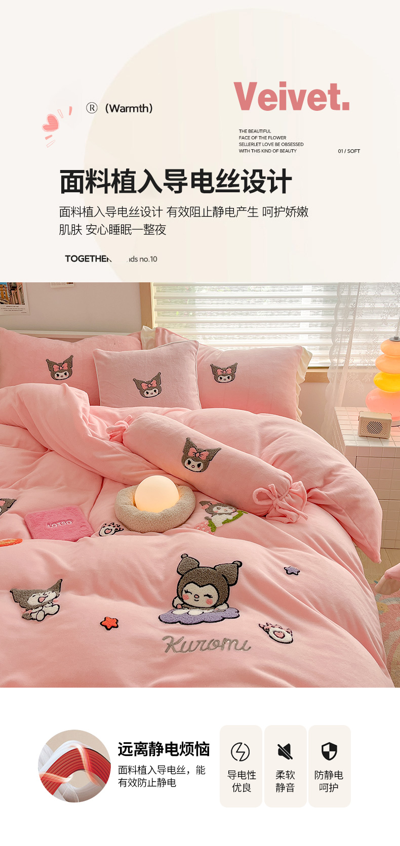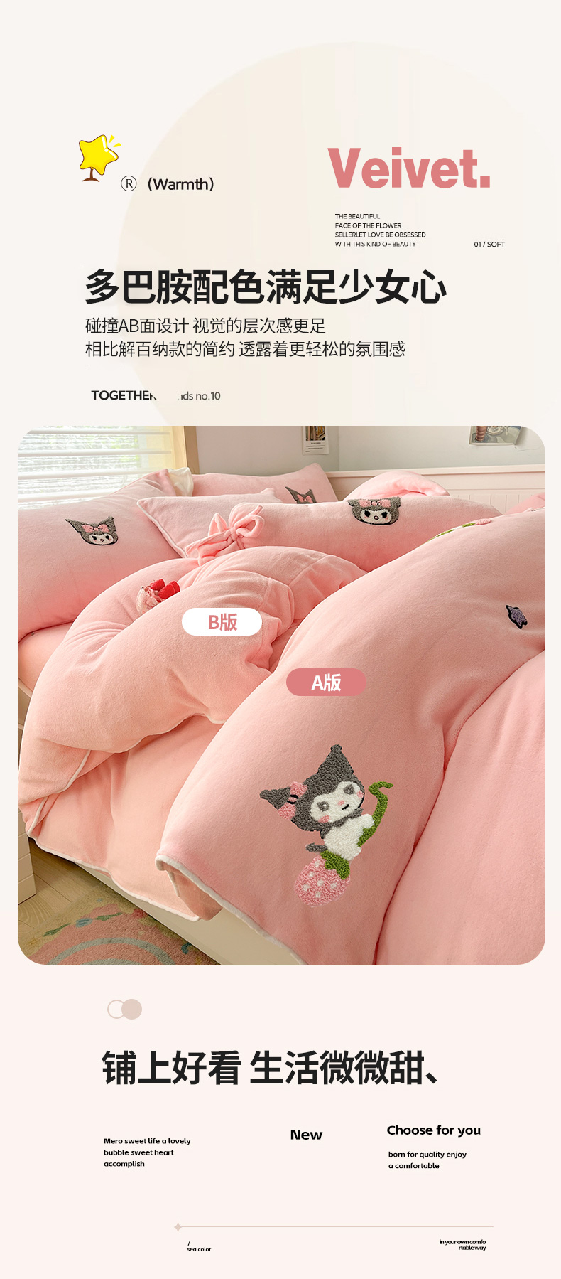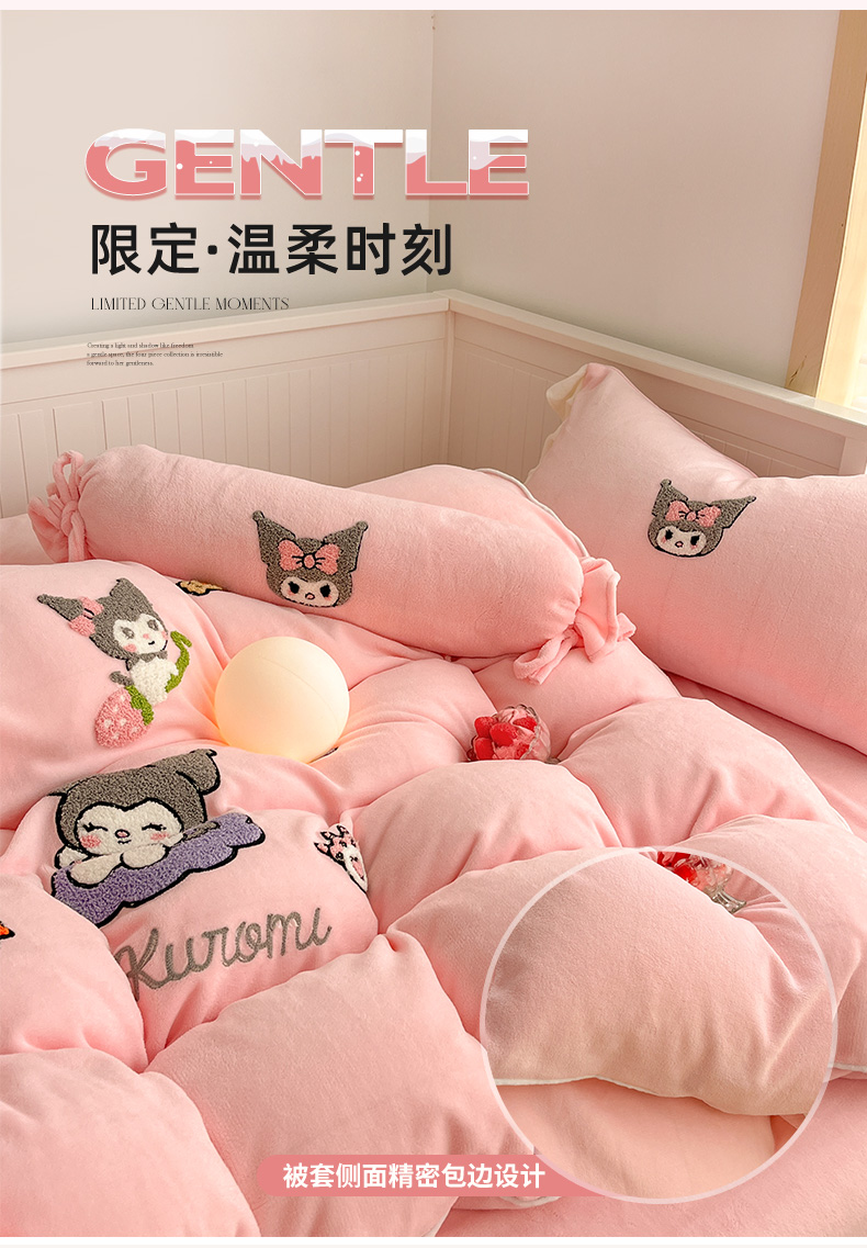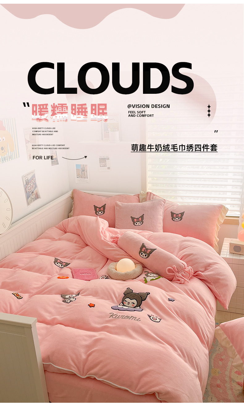 商品名称:丝印良品 2024秋冬卡通毛巾绣牛奶绒四件套 甜心-粉
