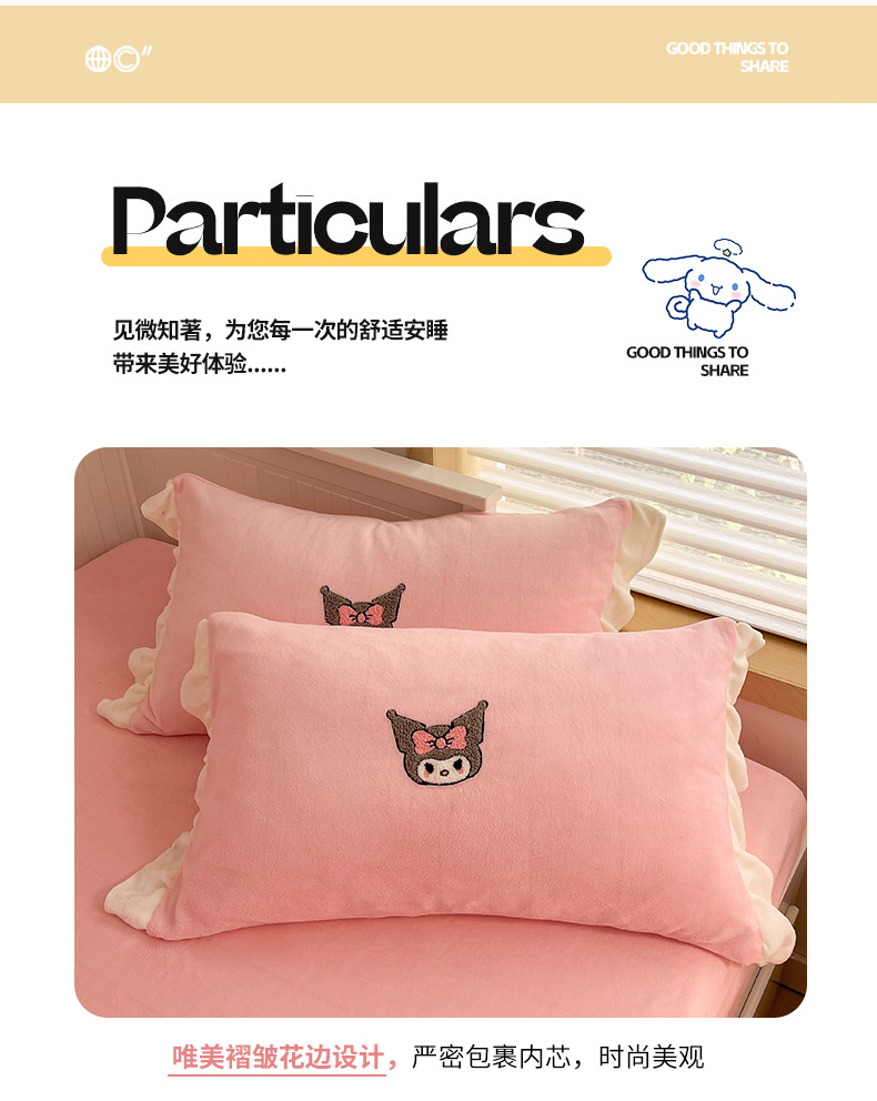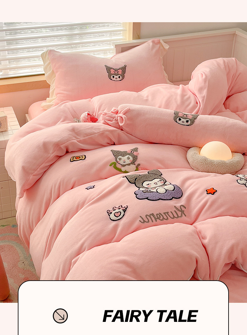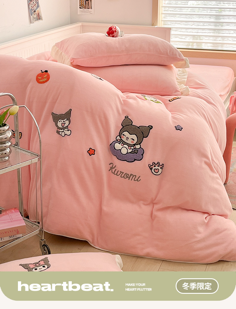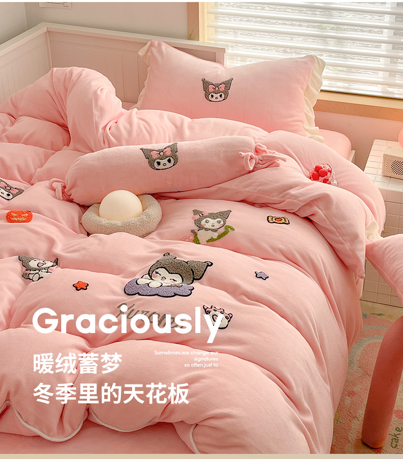 商品名称:丝印良品 2024秋冬卡通毛巾绣牛奶绒四件套 甜心-粉