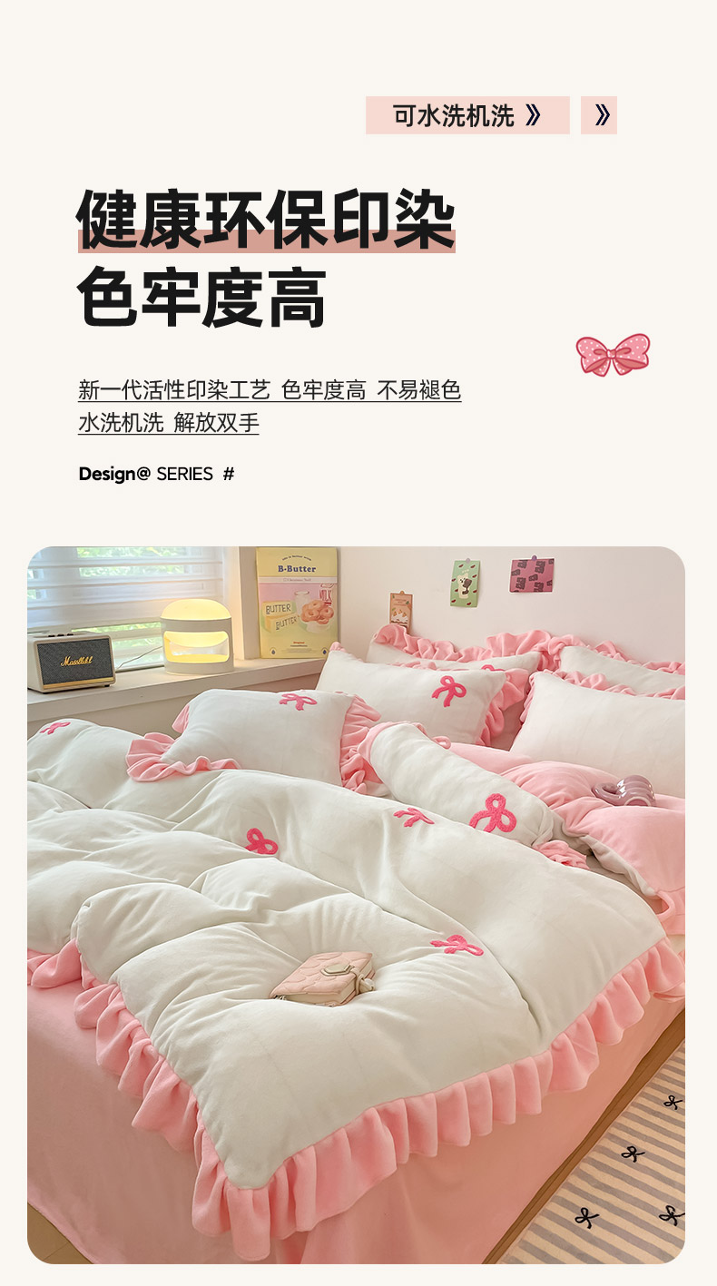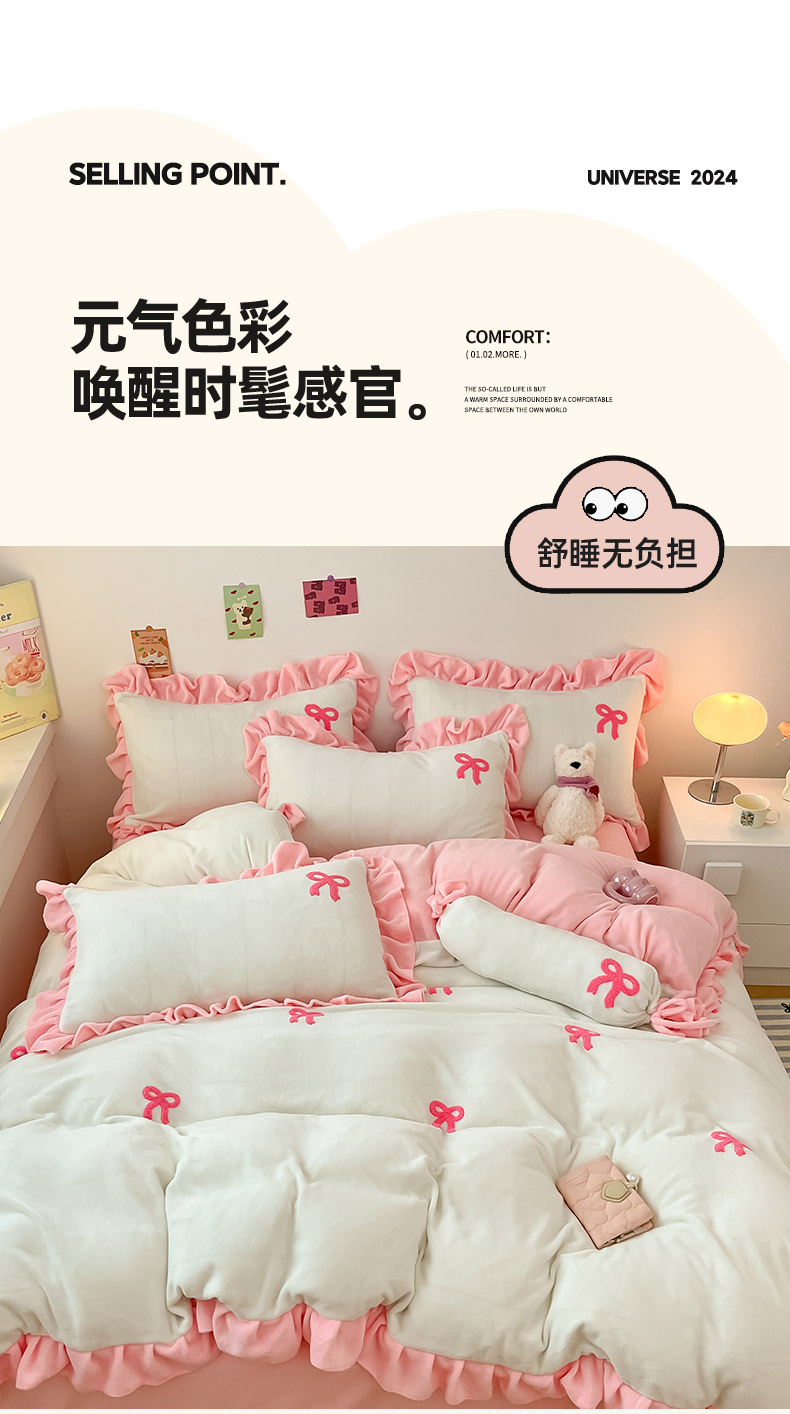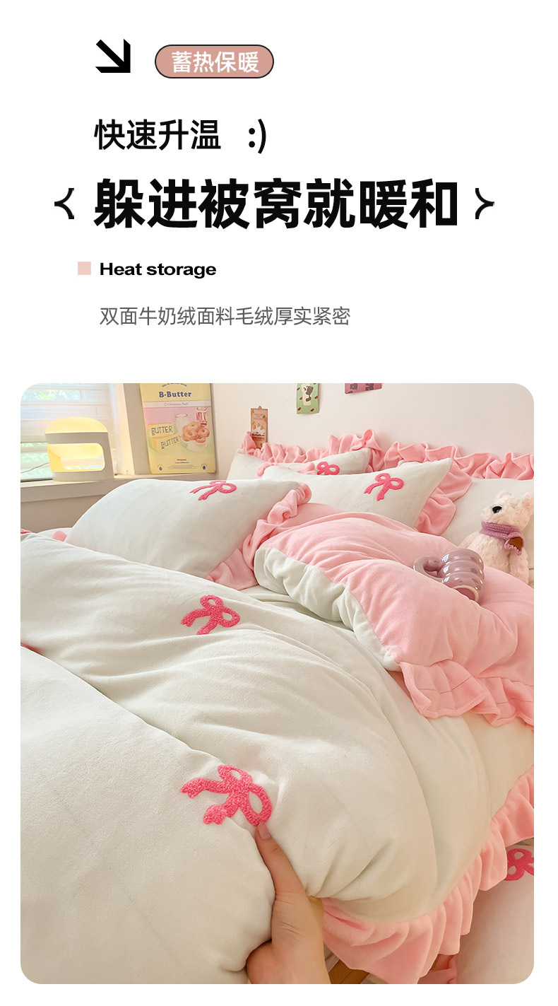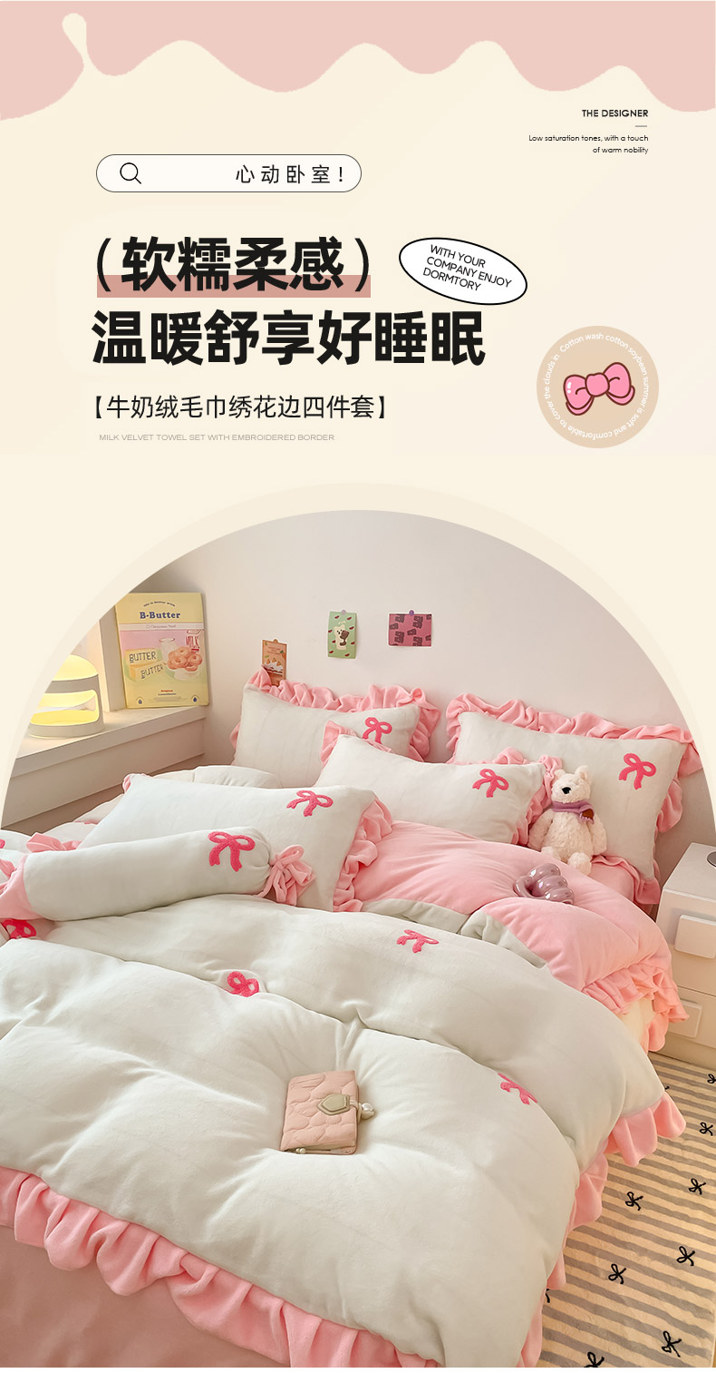 丝印良品 2024秋冬韩版公主风牛奶绒四件套 礼物