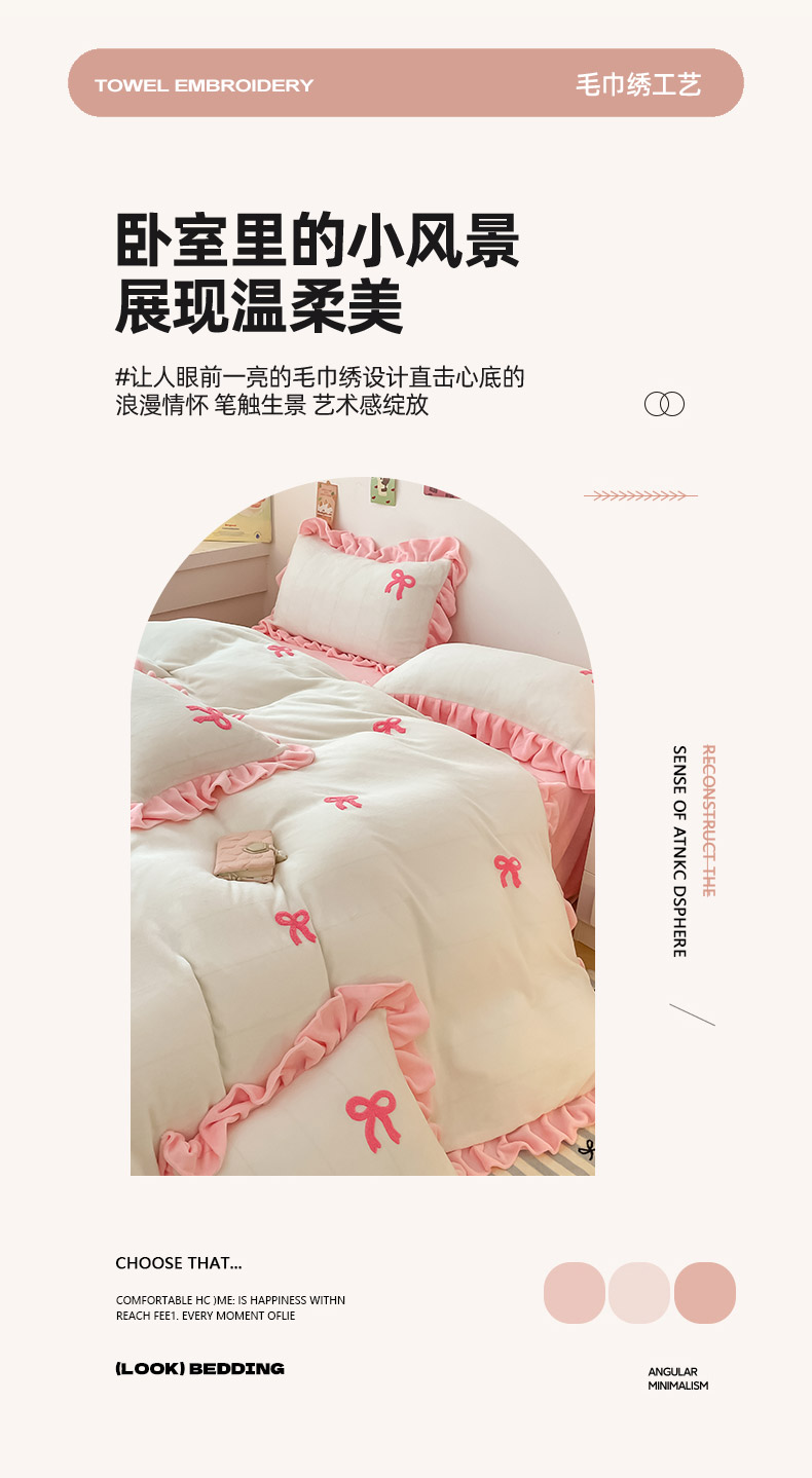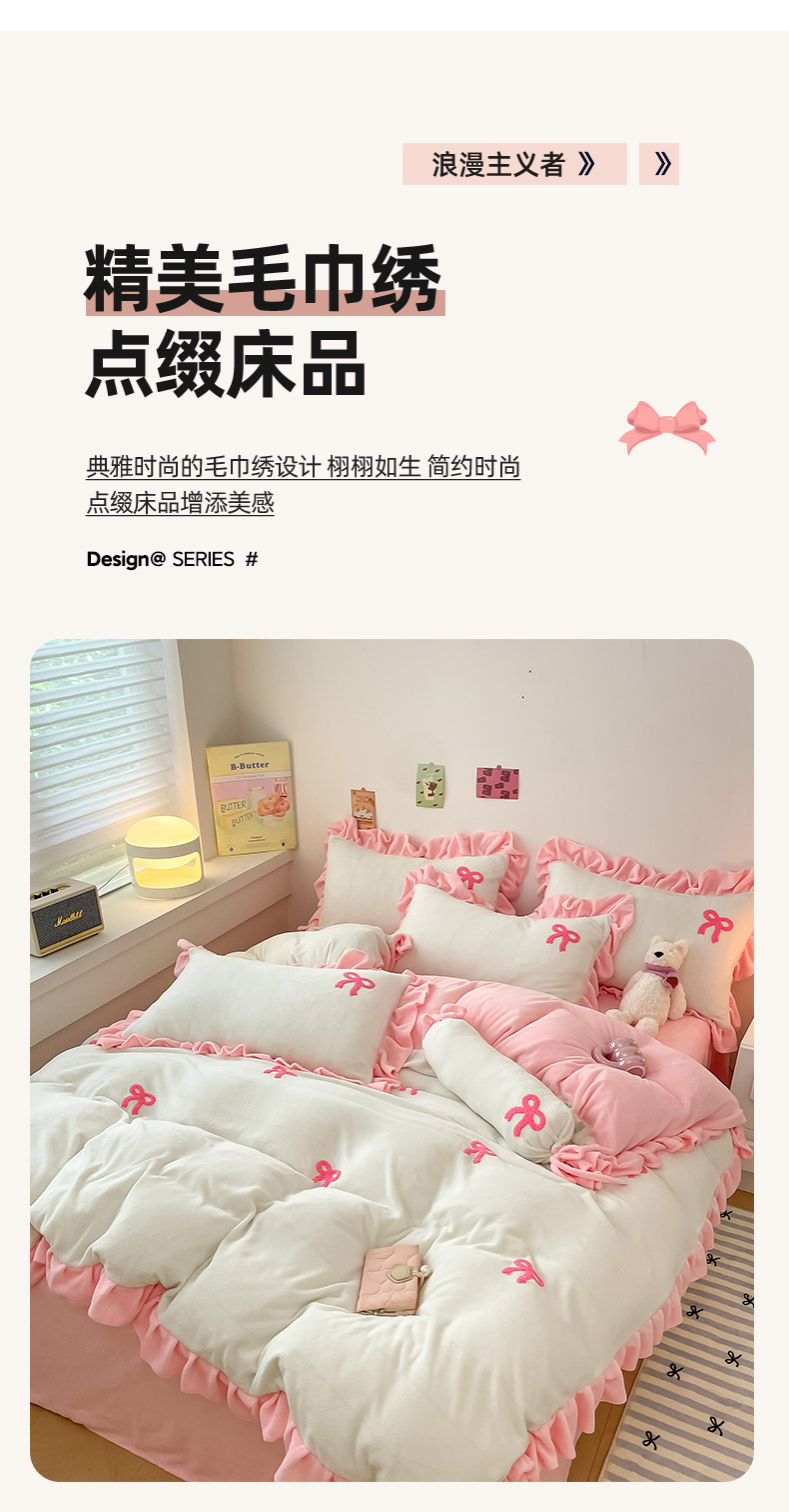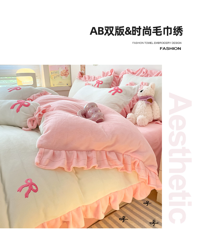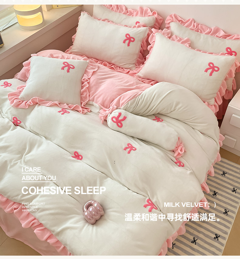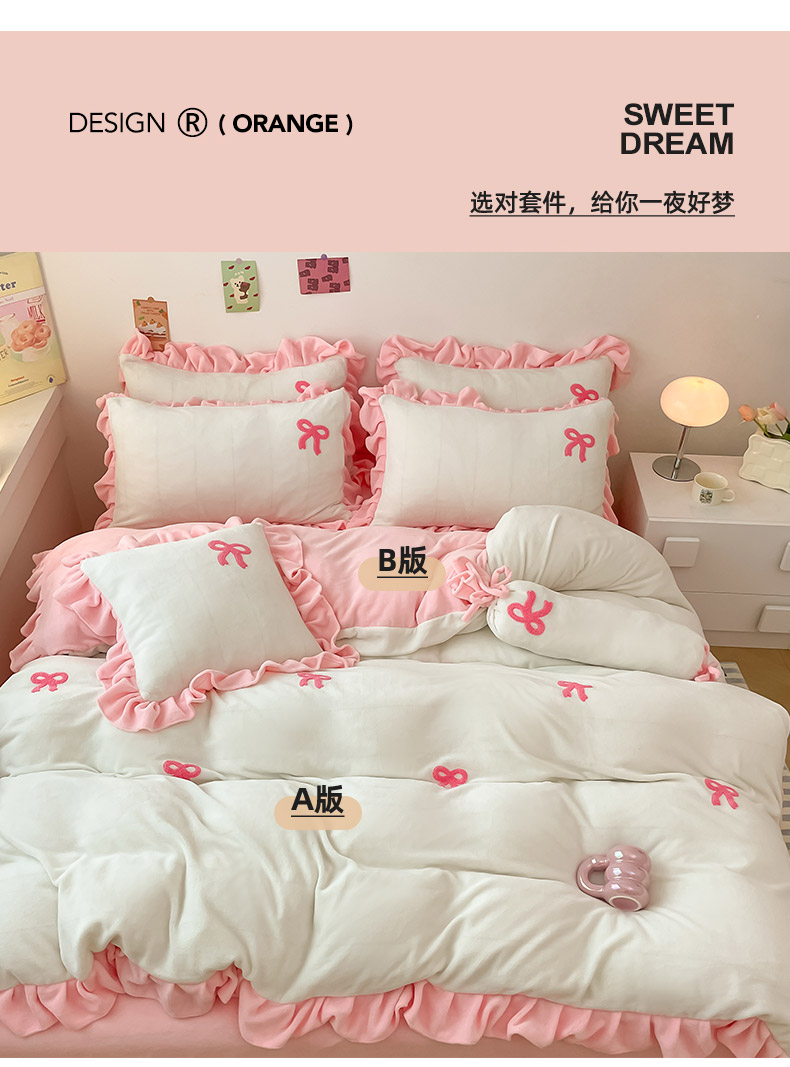 丝印良品 2024秋冬韩版公主风牛奶绒四件套 礼物