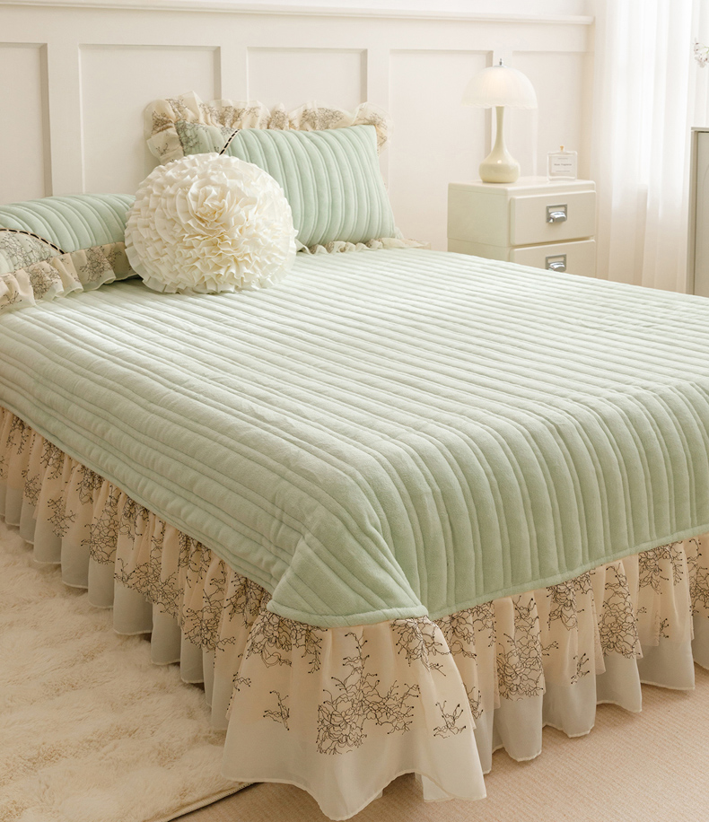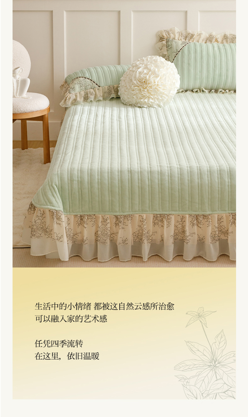 菊上家纺 2024新款小香风雕花牛奶绒蕾丝单床盖-芭莎系列 芭莎-绿