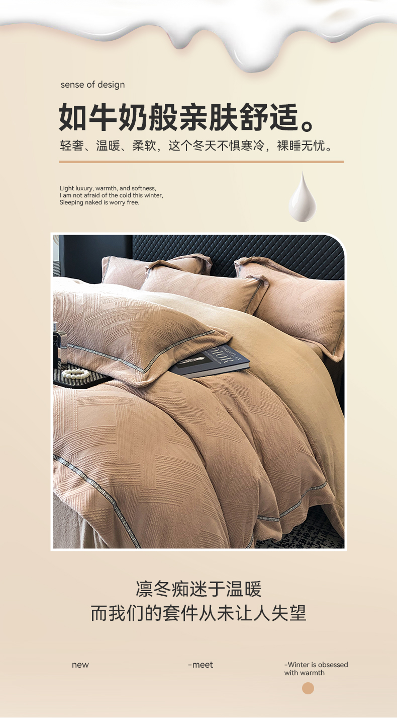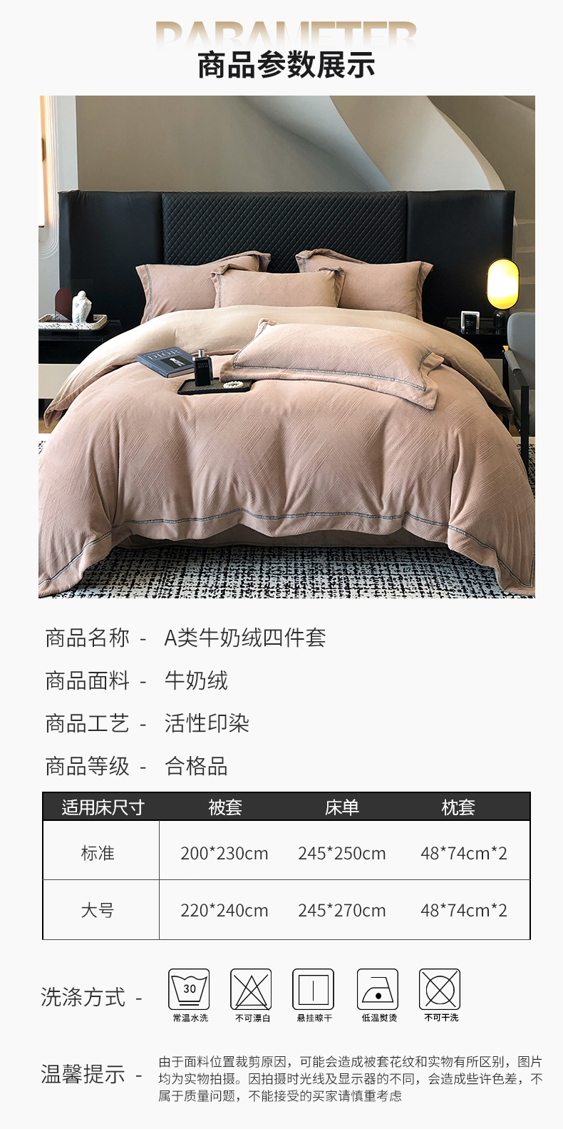 商品名称:家居1号 2024新款230克全消光牛奶绒立体烂花四件套-奥地利 奥地利-靓橙