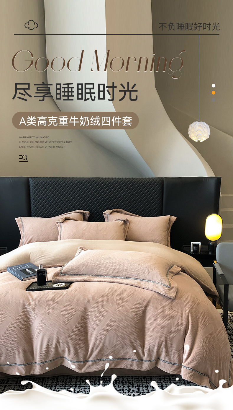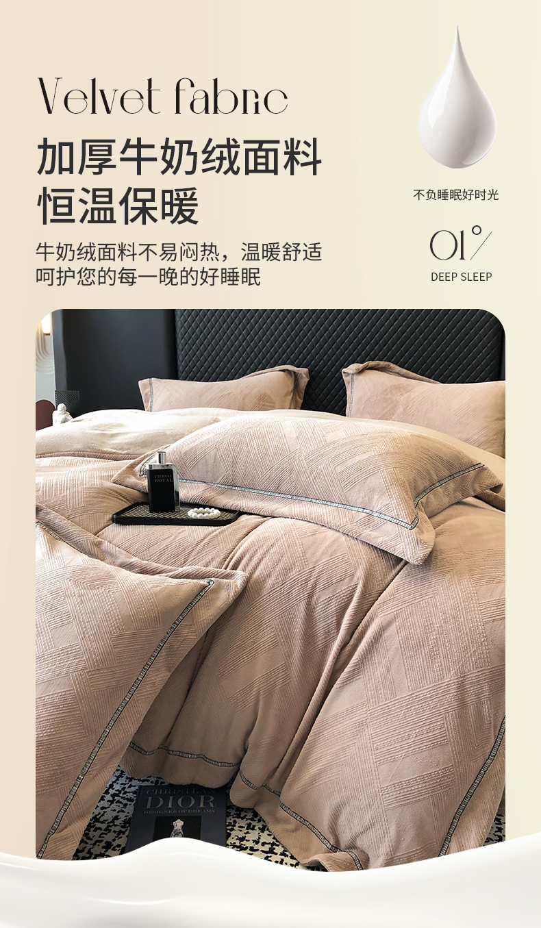 (总)家居1号家纺 2025新款230克全消光瑞丽牛奶绒烂花四件套(控价标准258加大278 会员优惠10元),瑞丽-卡其,瑞丽-苹果绿,瑞丽-绅士灰,瑞丽-温馨蓝,瑞丽-雅粉,瑞丽-优雅紫