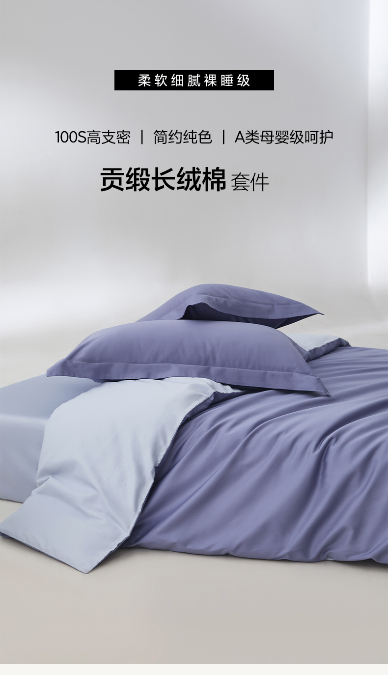 当前位置: 91家纺网 > 商品网购 > 床品套件 > 四件套 > 长绒棉四件套 > 轩和家居 2024新款A类50S贡缎长绒棉四件套系列 海茵蓝+碧落蓝