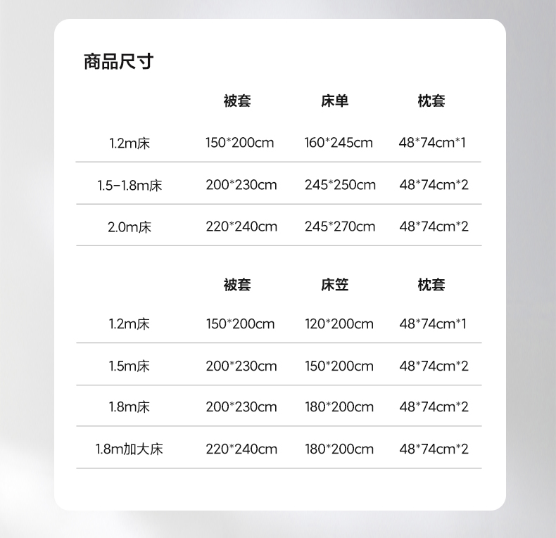 1.8m床笠款被套加大四件套 | ¥190.00 |