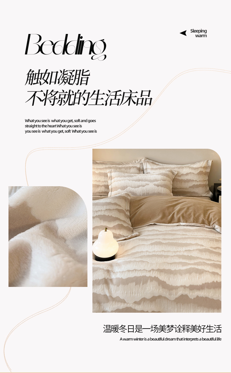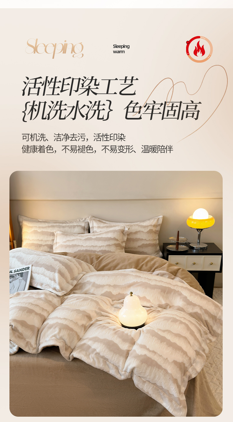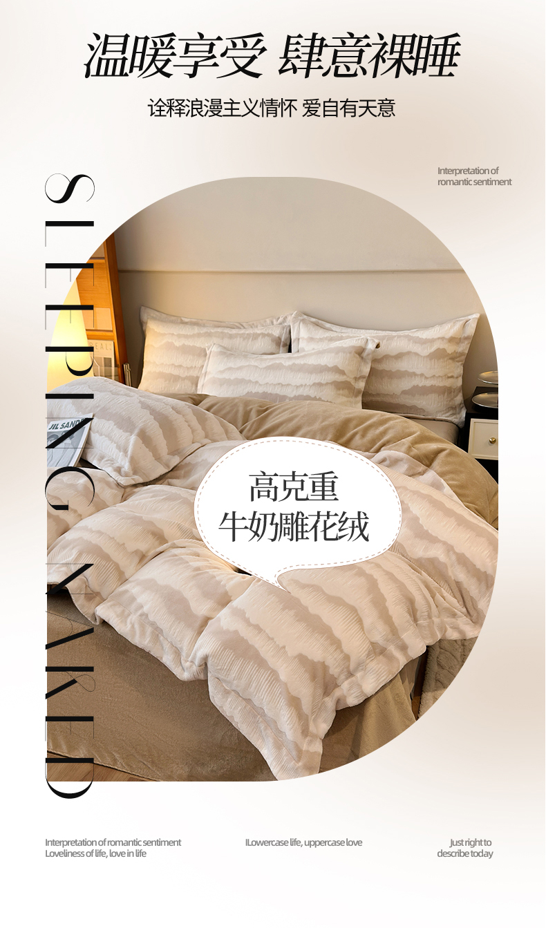 米奈家居 2024新款A类牛奶雕花绒四件套-瑞丽 水墨(卡其)