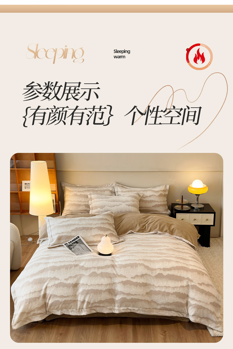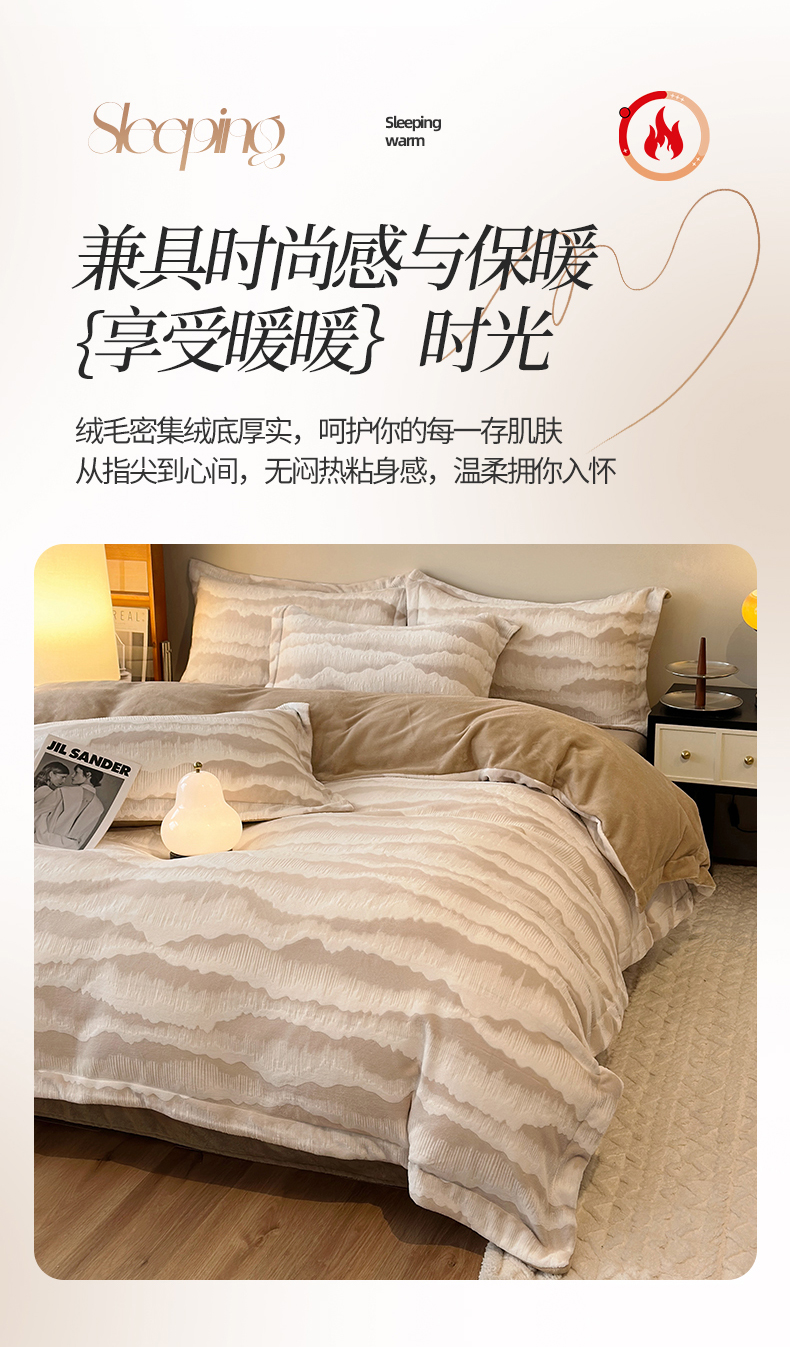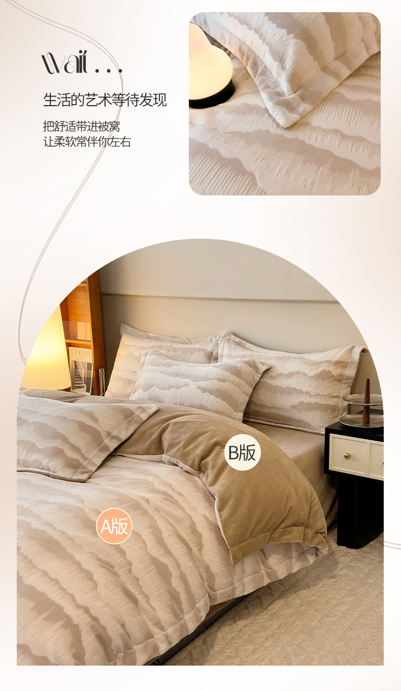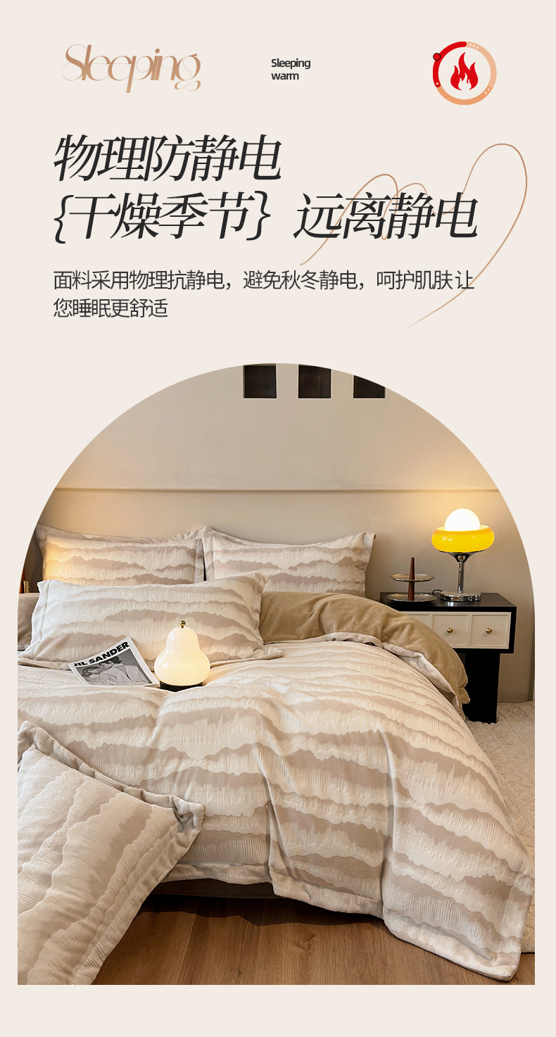 米奈家居 2024新款A类牛奶雕花绒四件套-瑞丽 水墨(卡其)