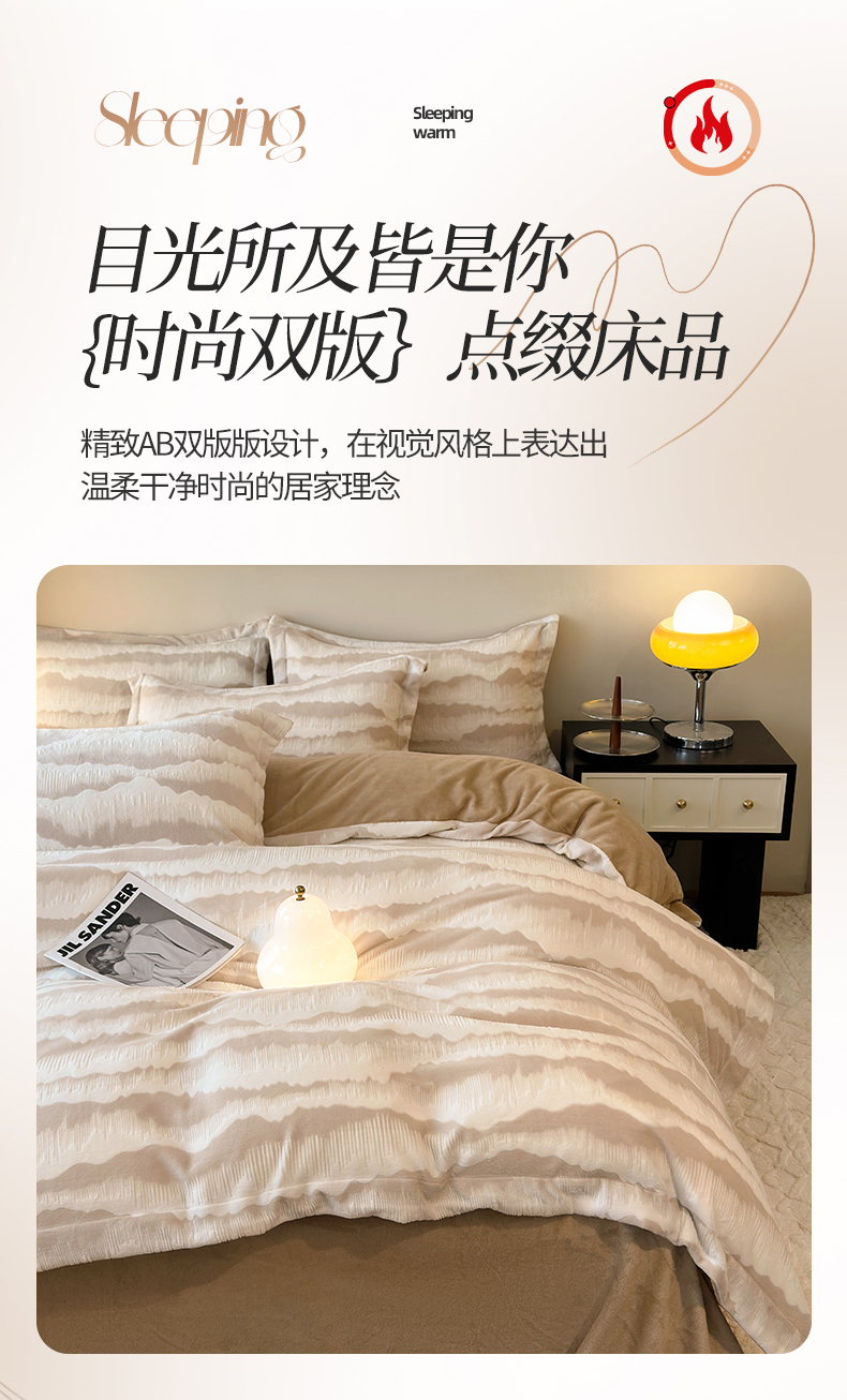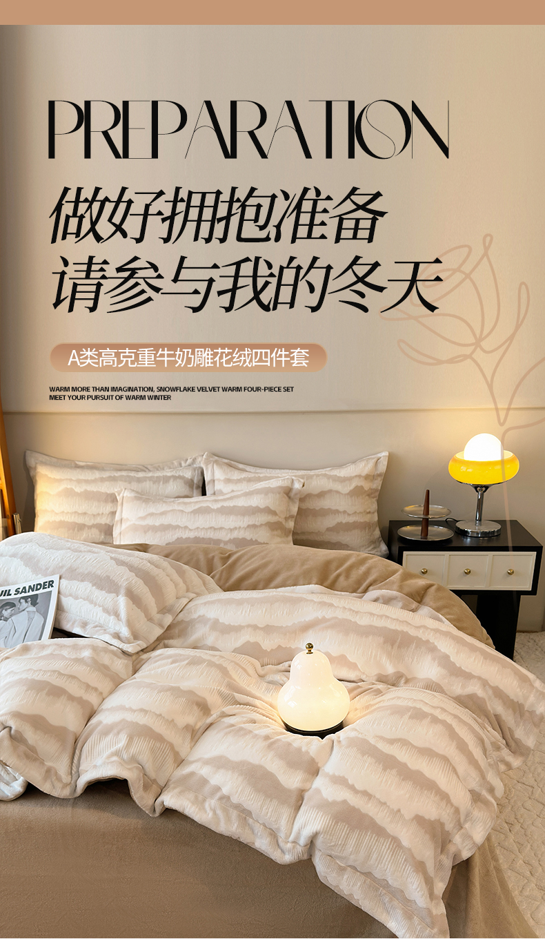 (总)米奈家居 2024新款A类牛奶雕花绒四件套-瑞丽,巴赫(卡其),巴赫(紫粉),花漾(淡雅粉),花漾(香槟),水墨(豆沙),水墨(卡其),邂逅(咖色),邂逅(绿色)