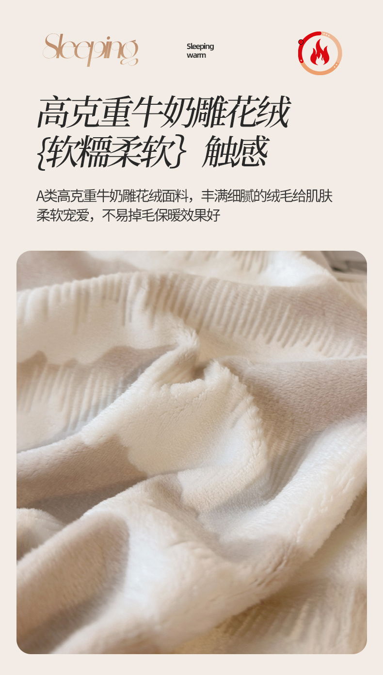 商品名称:米奈家居 2024新款A类牛奶雕花绒四件套-瑞丽 水墨(卡其)