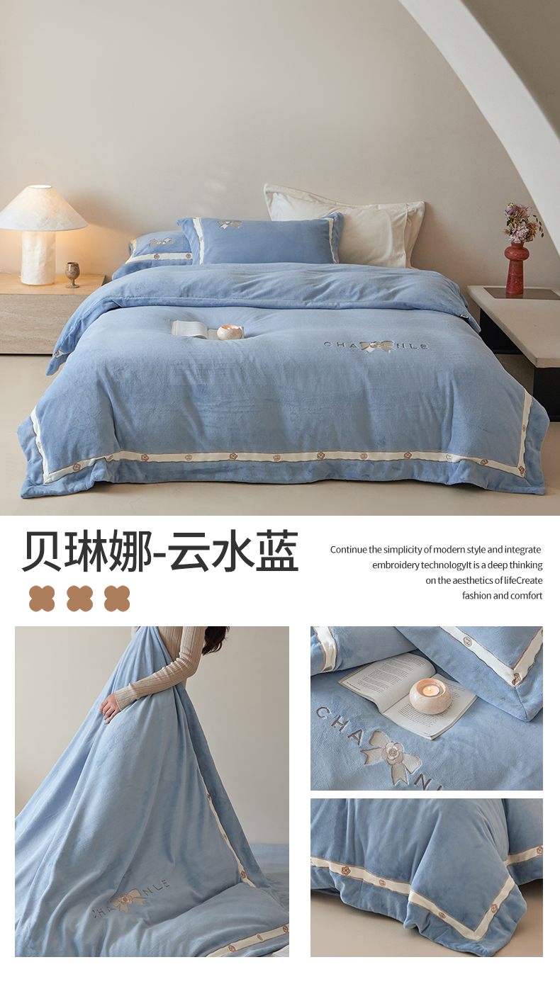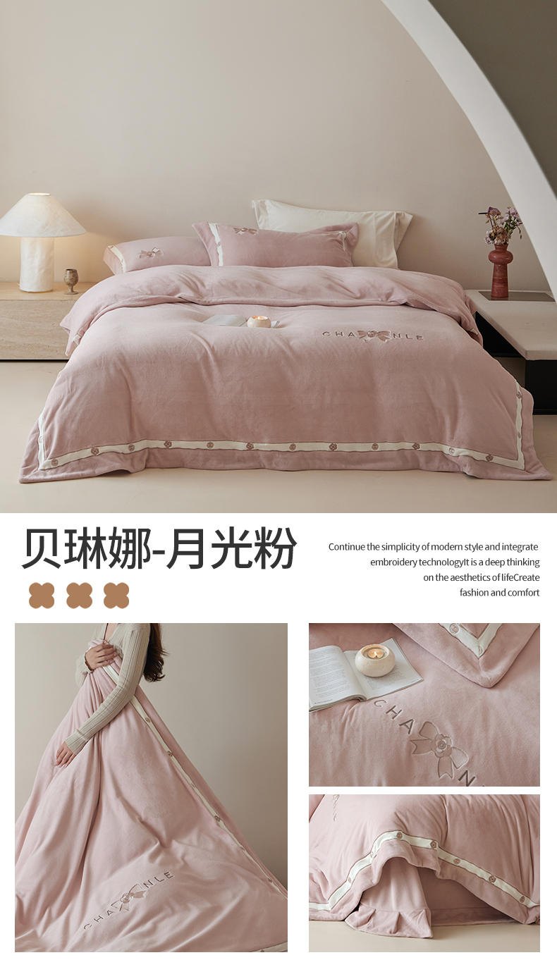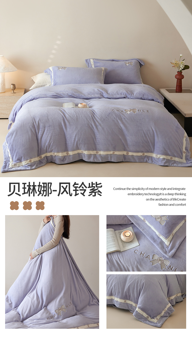 (总)泽西家纺+V17798841158发大图 2025新品秋冬加厚保暖240克奶肤绒简约风刺绣牛奶绒四件套-梵克雅宝,梵克雅宝-丁香紫,梵克雅宝-粉色,梵克雅宝-高级灰,梵克雅宝-乳白色,梵克雅宝-深卡