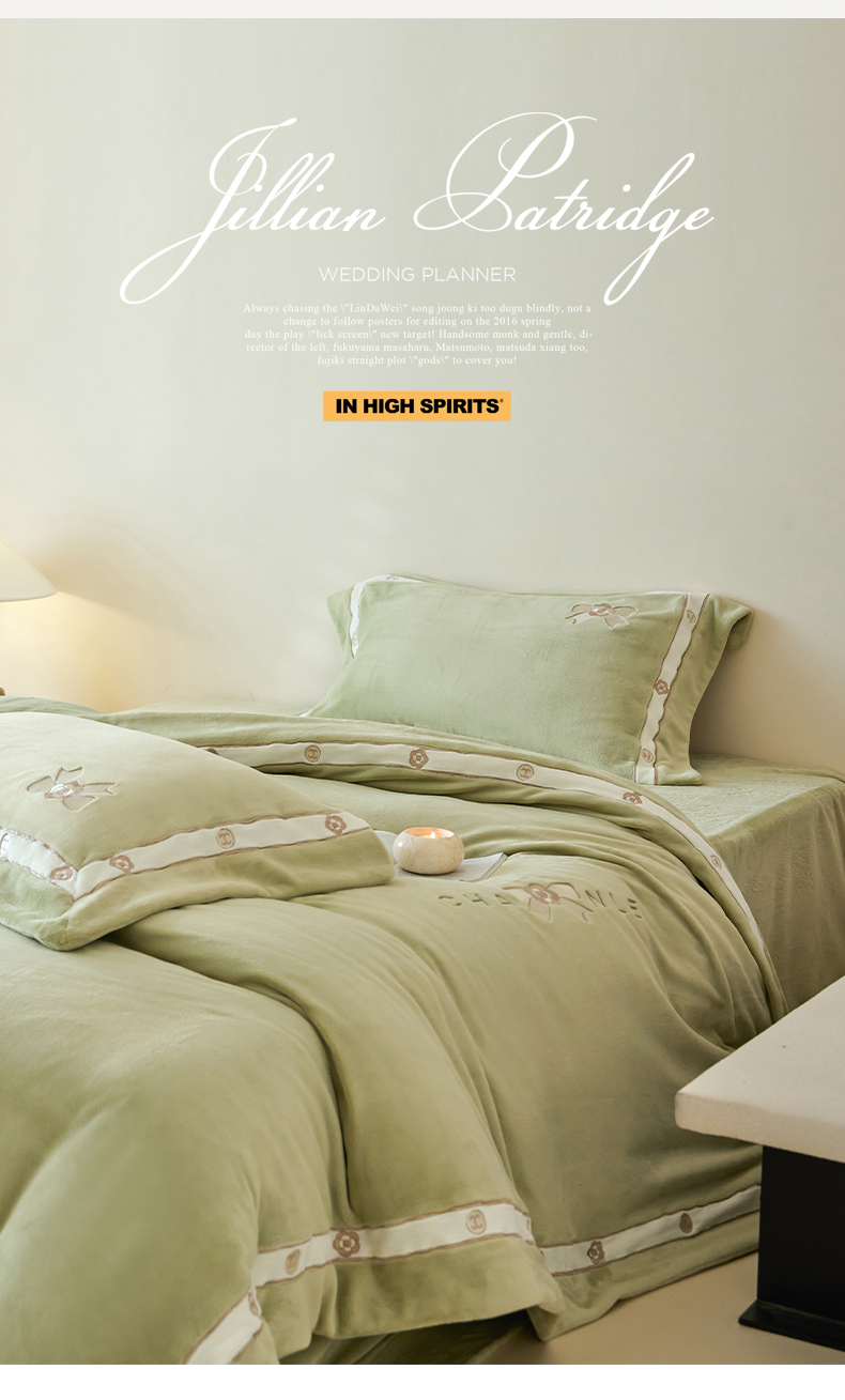 泽西家纺 2024秋冬新款高端加厚保暖A类蚕丝绒刺绣拼角牛奶绒四件套-贝琳娜 贝琳娜-绿矾