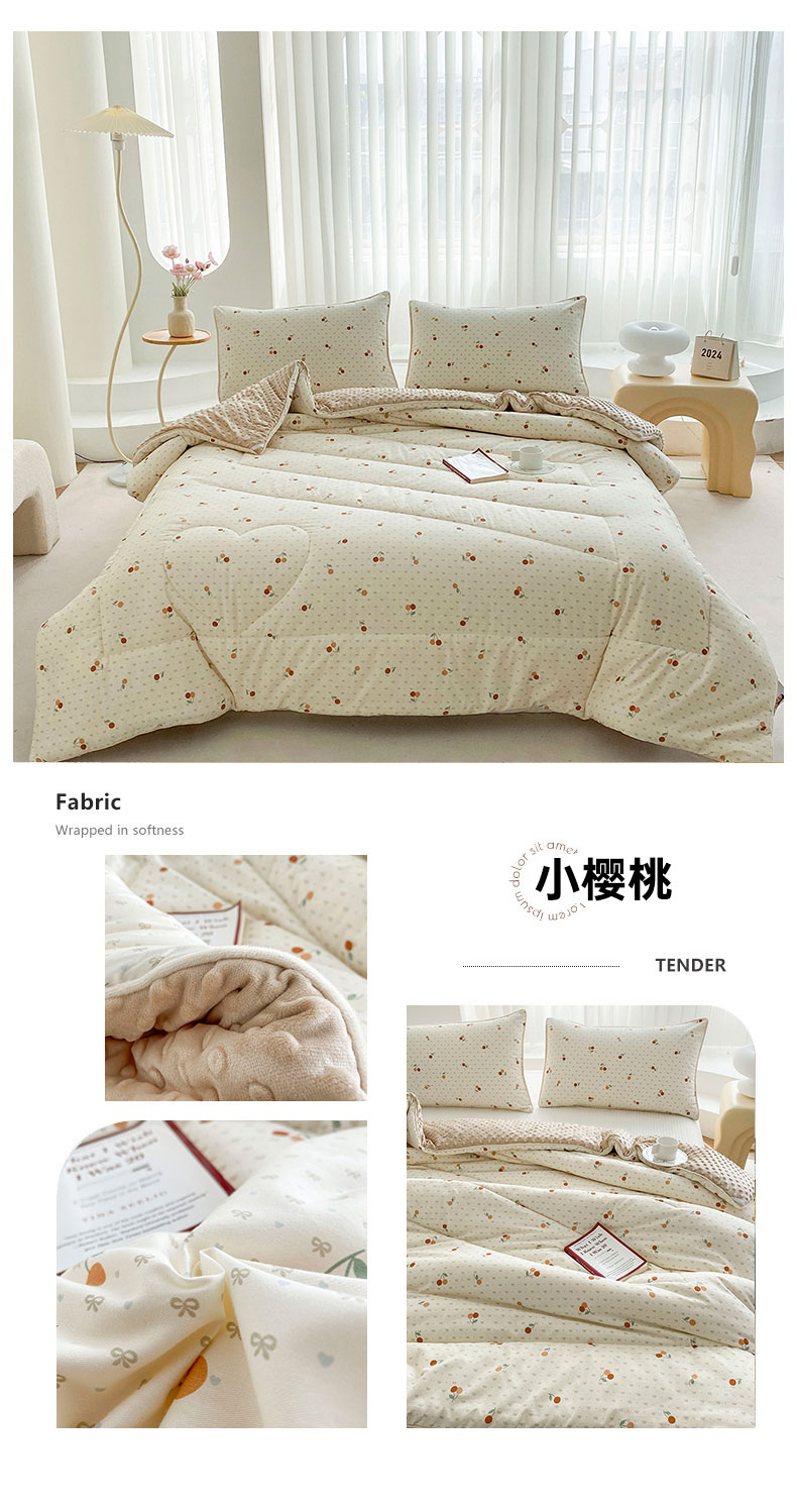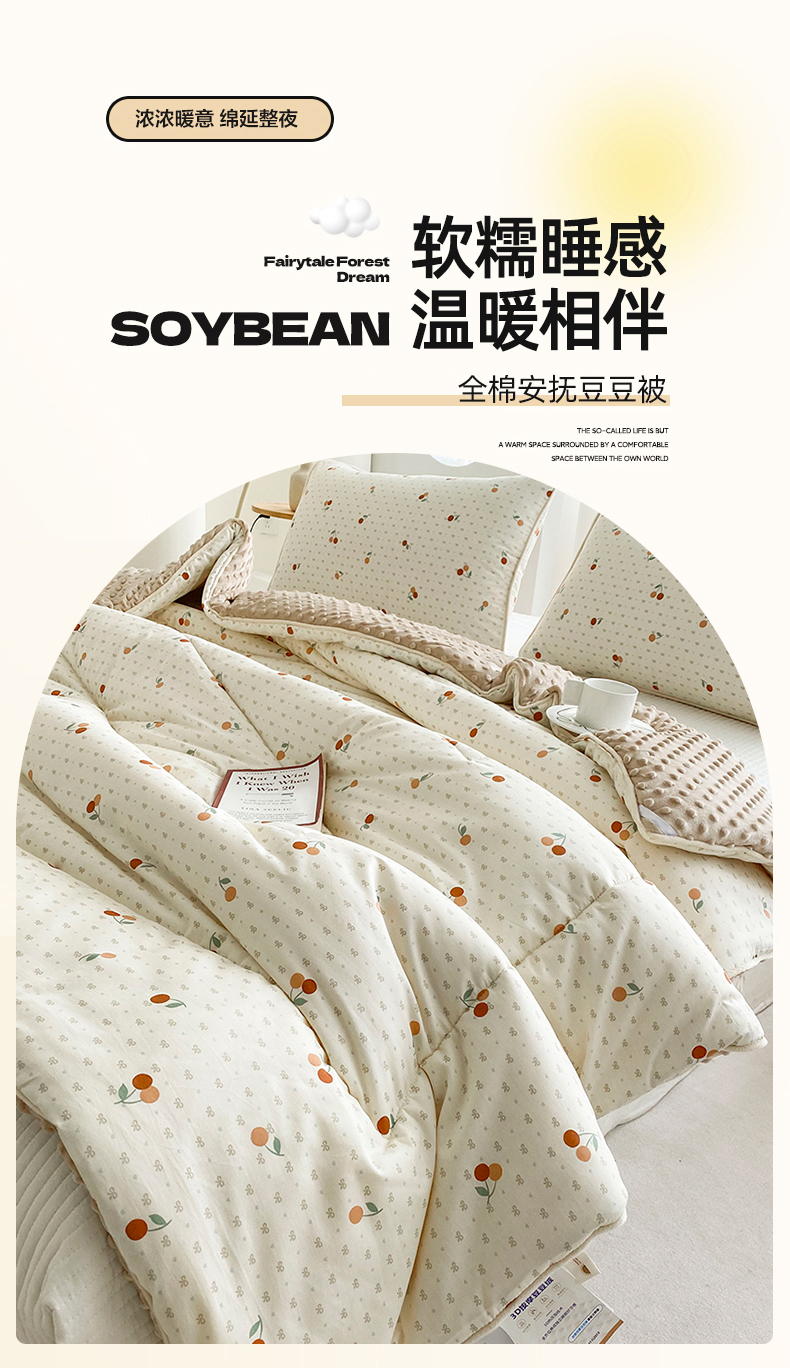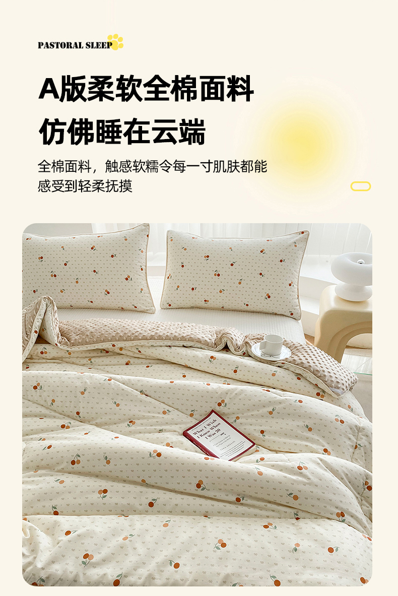 商品名称:青螺家纺 2025高密全棉嵌绳宝宝绒豆豆被春秋被冬被 一圈踩棉 四角不跑棉 直播 小樱桃