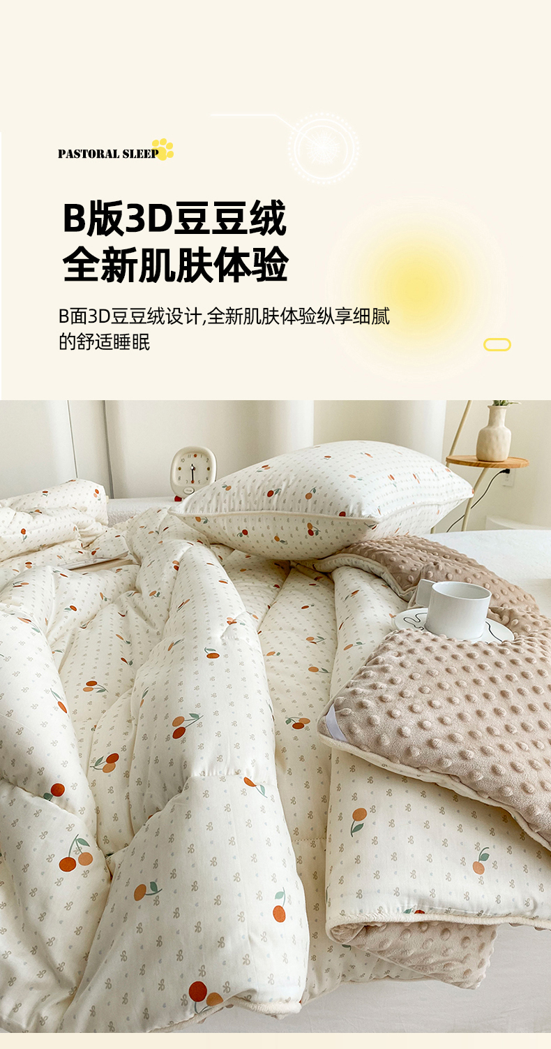 青螺家纺 2025高密全棉嵌绳宝宝绒豆豆被春秋被冬被 一圈踩棉 四角不跑棉 直播 小樱桃