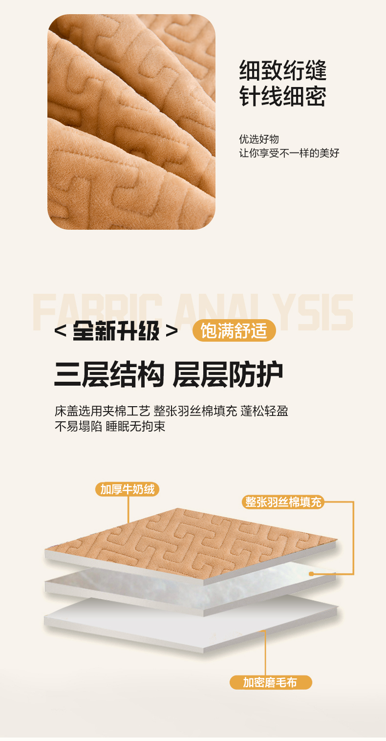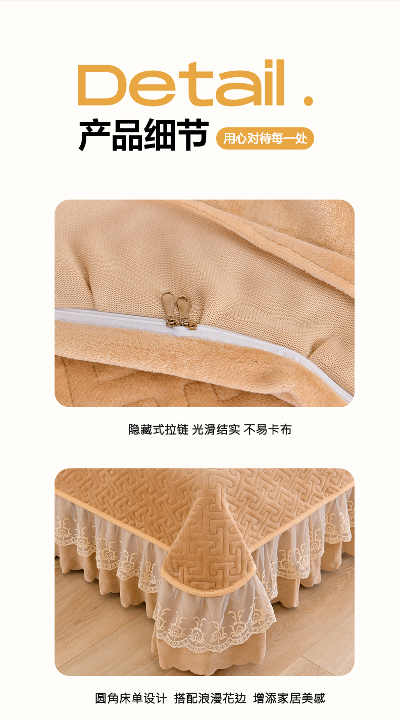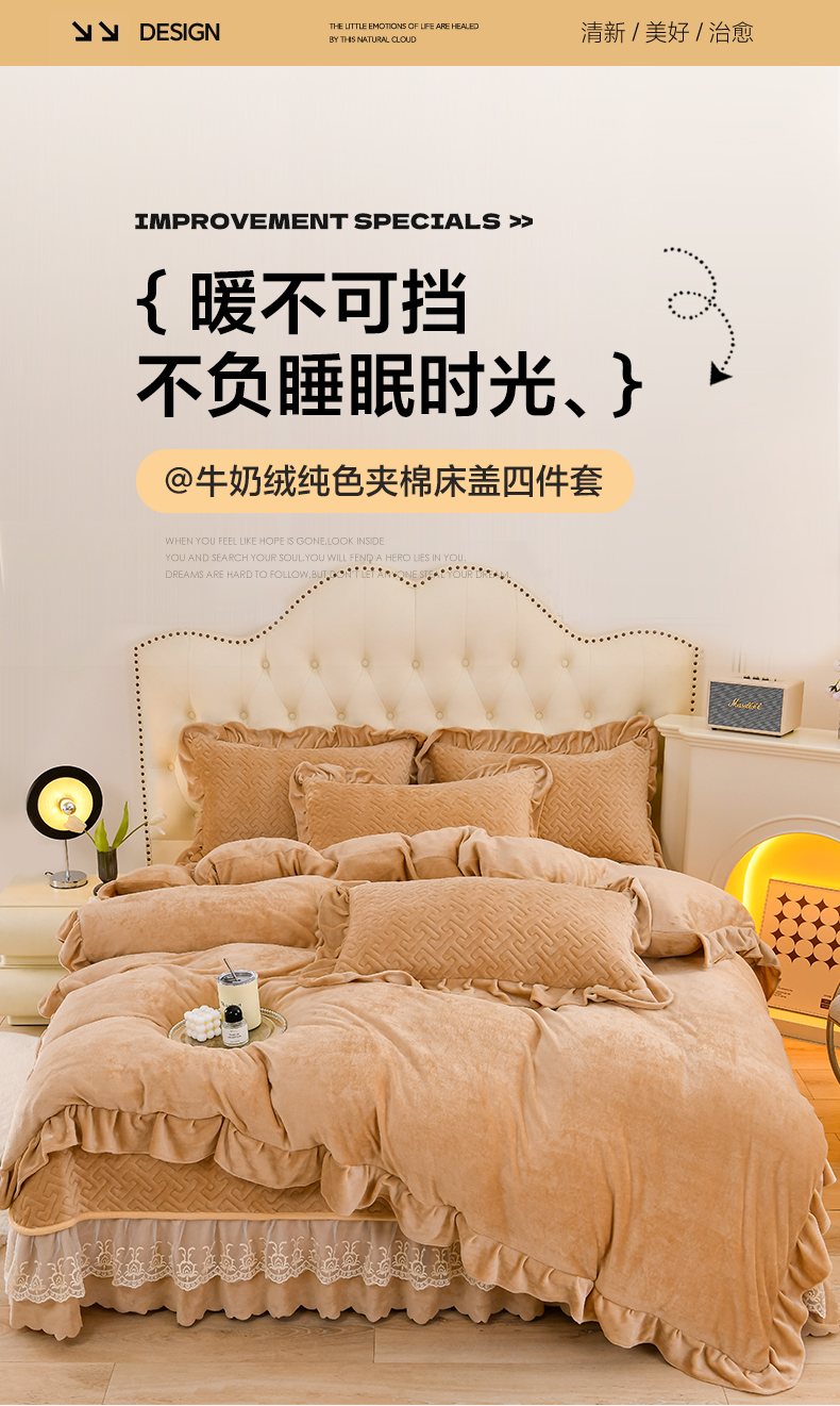 商品名称:畅畅家纺 2024新款简约纯色牛奶绒夹棉床盖四件套 倾城-卡其