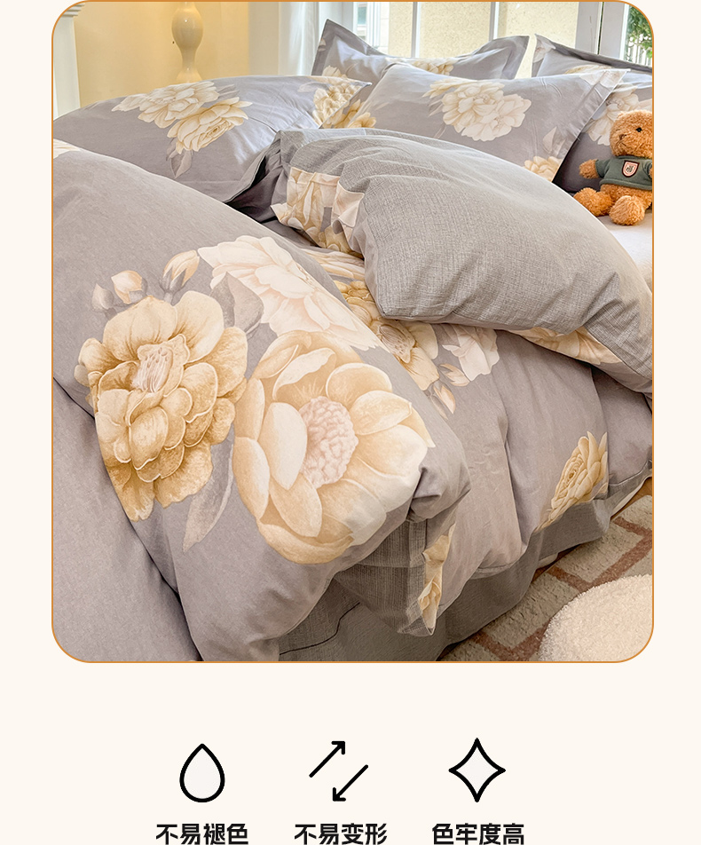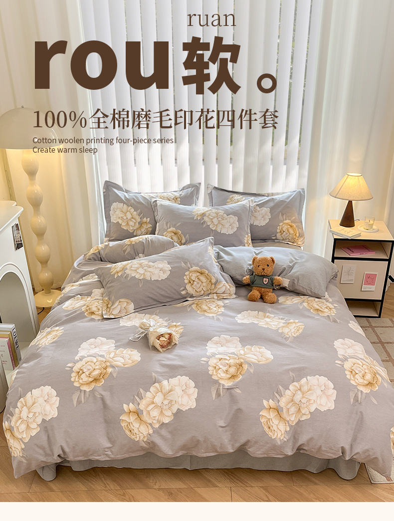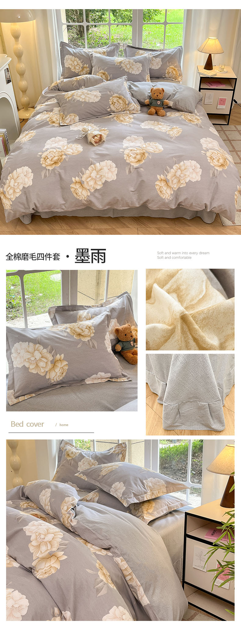 商品名称:新印象 2025新款100%全棉磨毛四件套墨雨