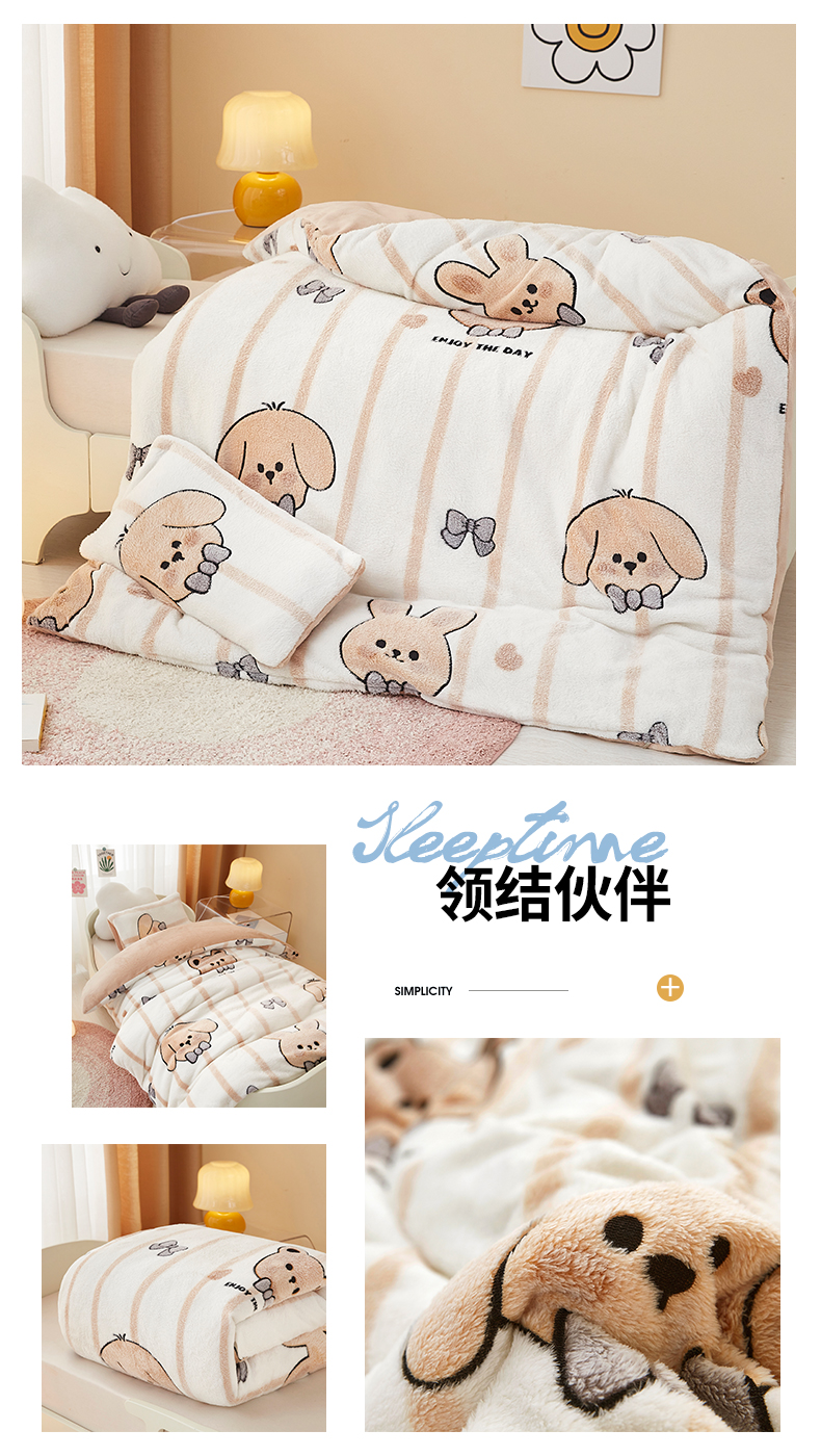 (总)丝涟家居 2025新款羊羔绒牛奶绒毛巾绣儿童脱卸被子,卡通熊,快乐小狗,快乐鸭,趣味猫咪