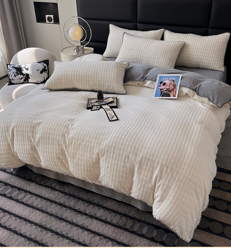 (总)菡宝2025新款工艺款贝壳边雕花绒简约良品风牛奶绒四件套-梵西系列 支持定做定制尺寸,梵西灰,梵西紫,米娅灰,米娅粉,洛璃灰,洛璃紫