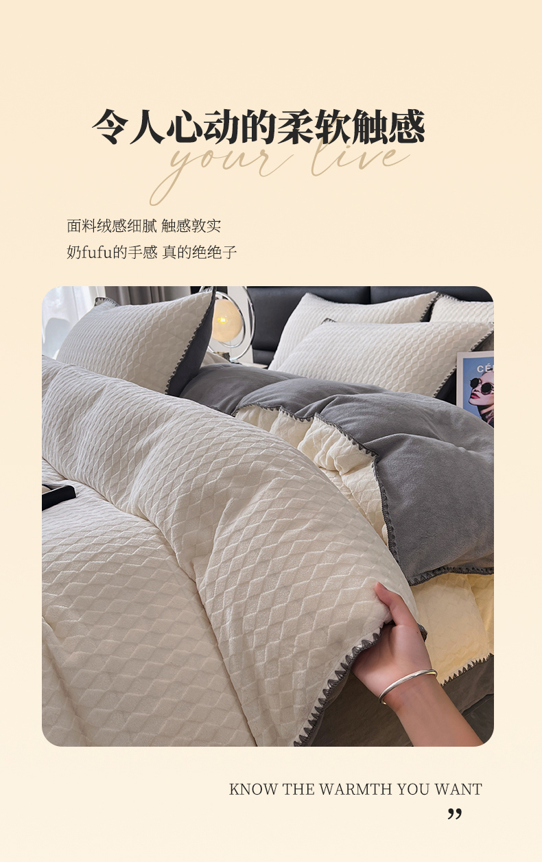 (总)菡宝 2025新款简约良品风牛奶绒四件套-查尔斯系列 支持定做定制尺寸,查尔斯-灰,查尔斯-卡其,卡伦