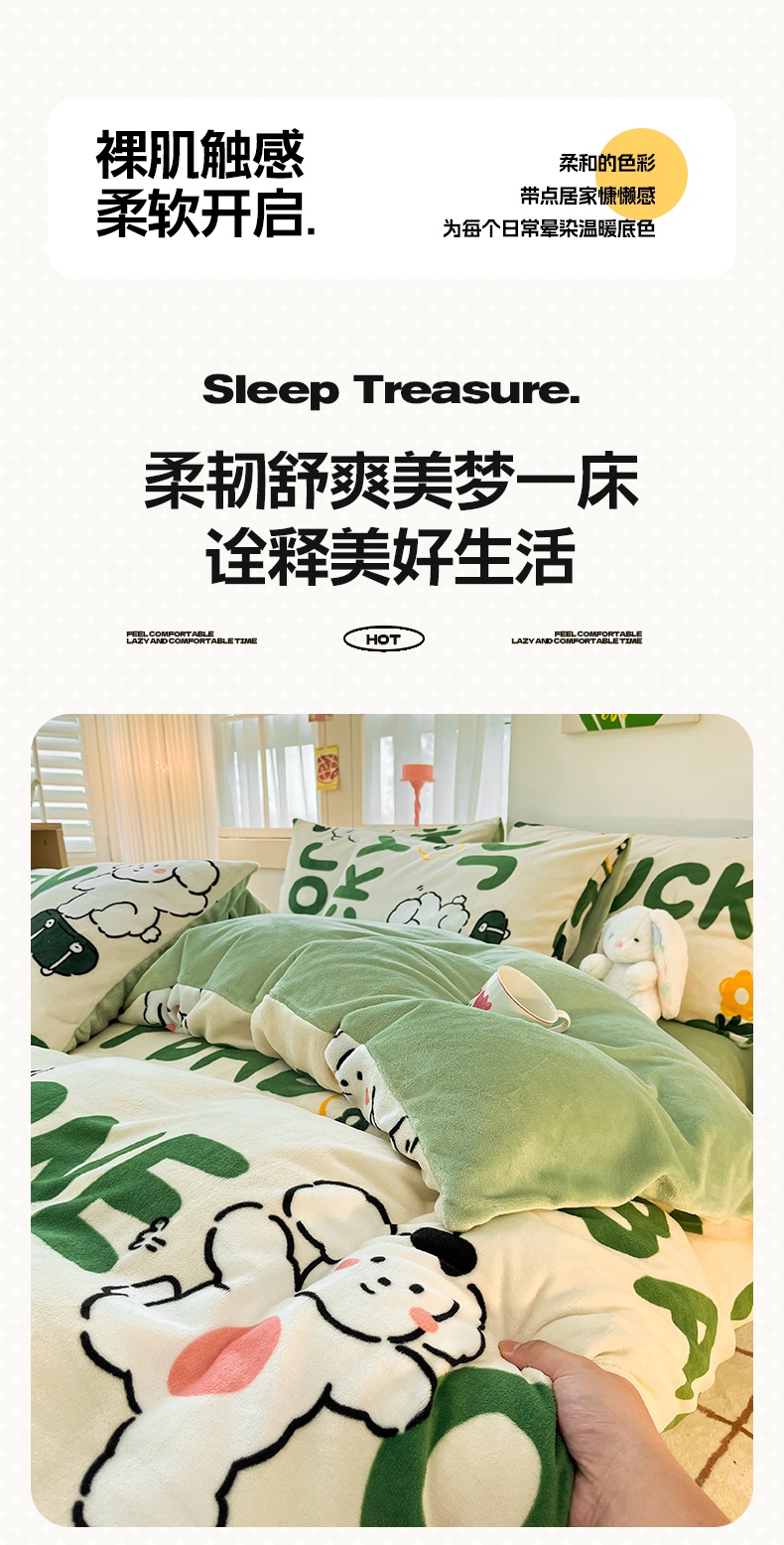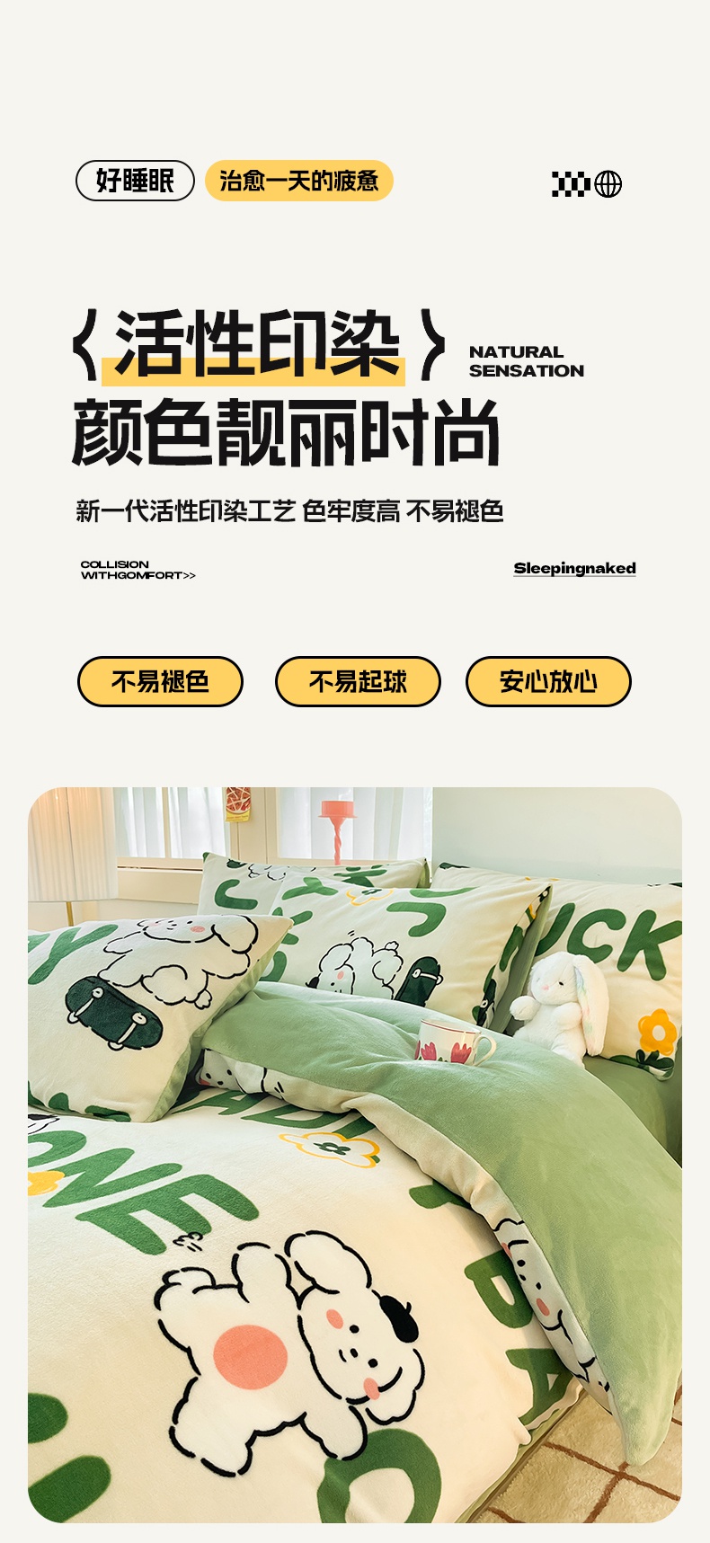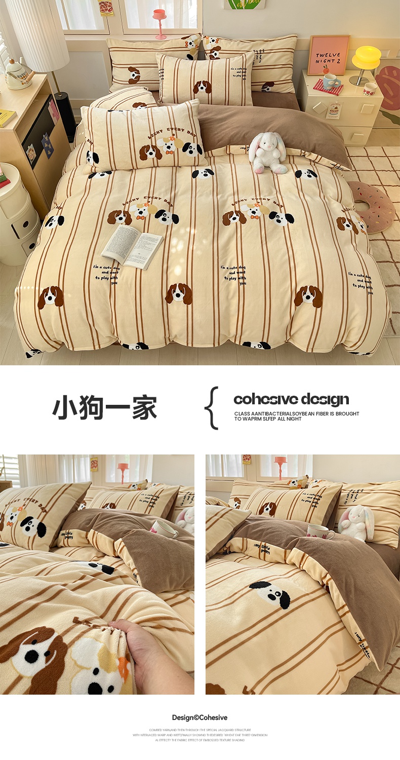 寐眠 2024新款高克重印花牛奶绒四件套风格一 小狗一家