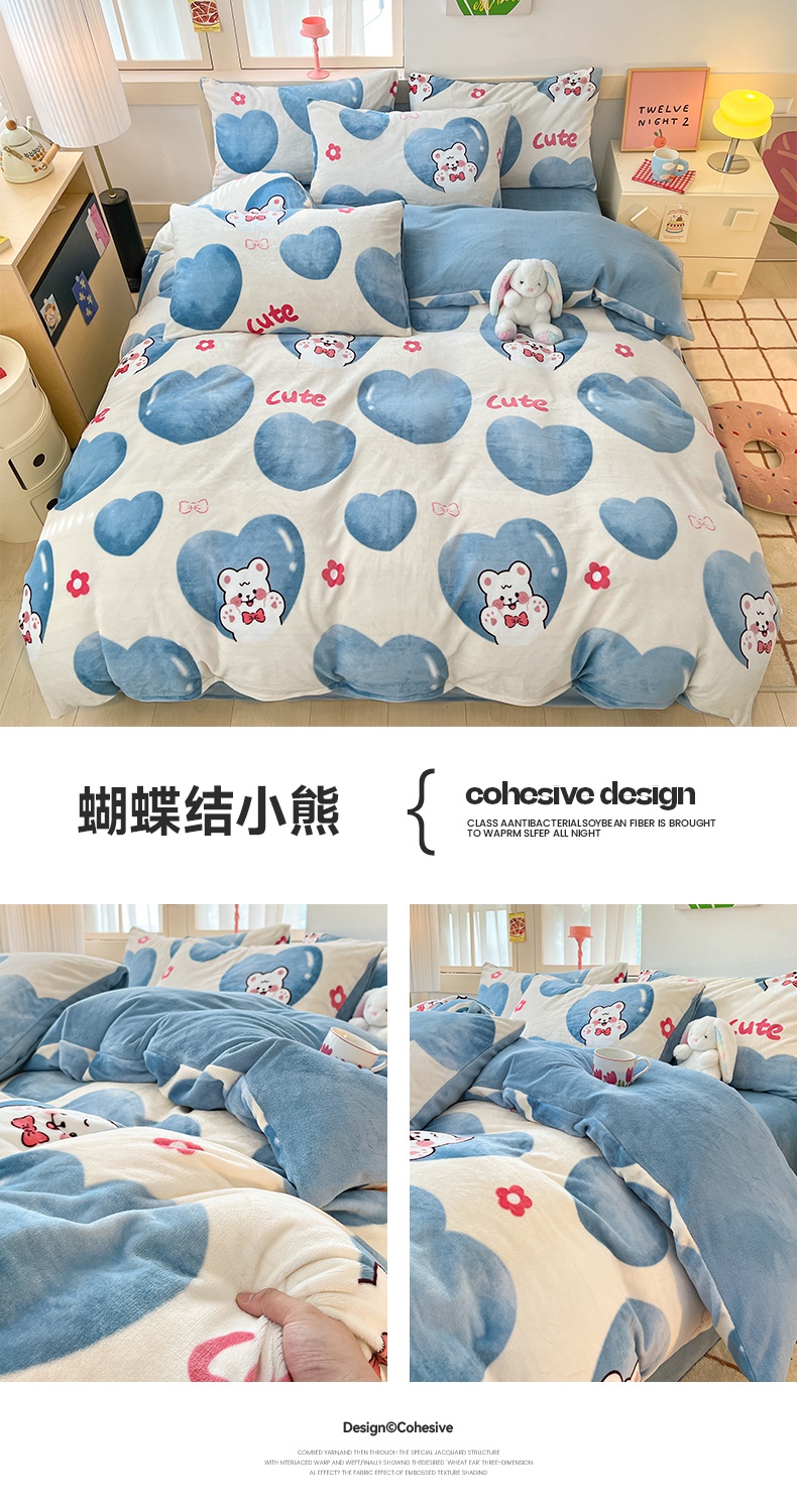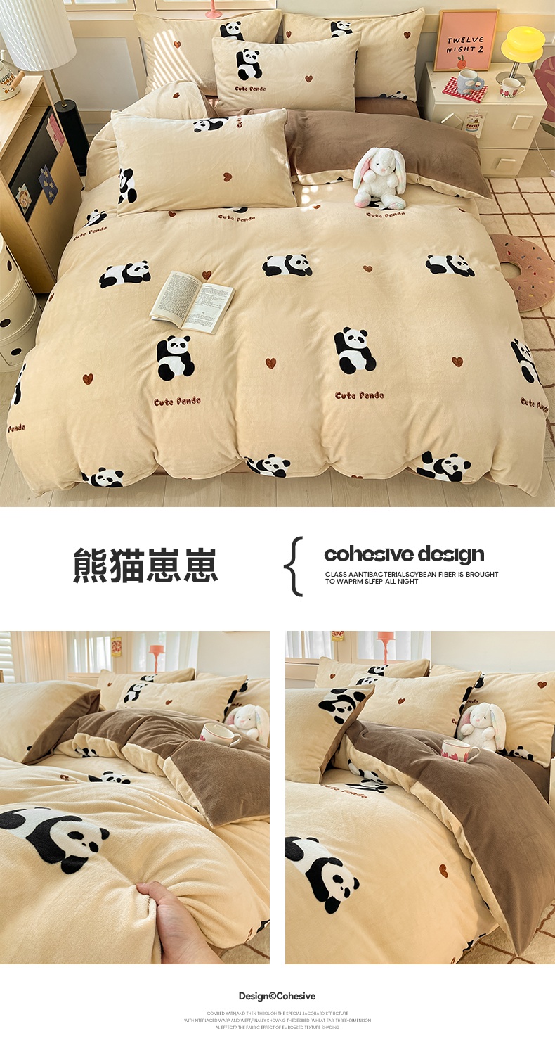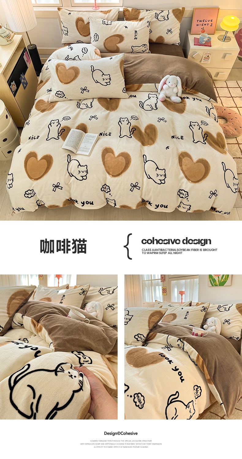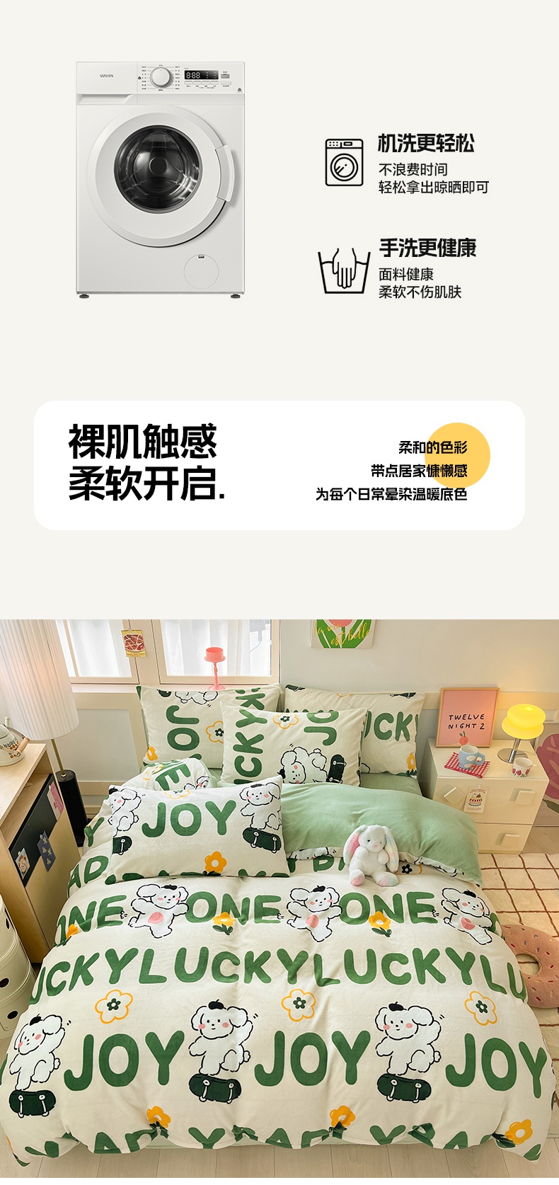 寐眠 2024新款高克重印花牛奶绒四件套风格一 小狗一家