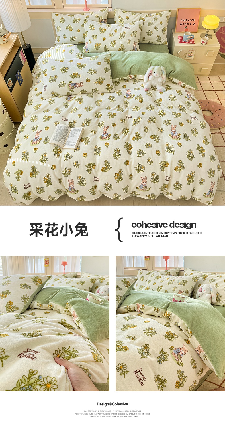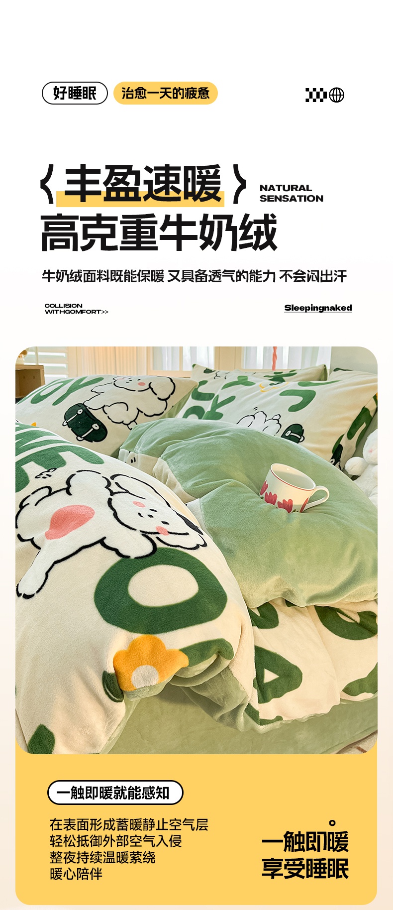 (总)寐眠 2025新款A类立体雕花牛奶绒四件套-系列三,绿澜绒致,暖绒粉梦,素绒雅调