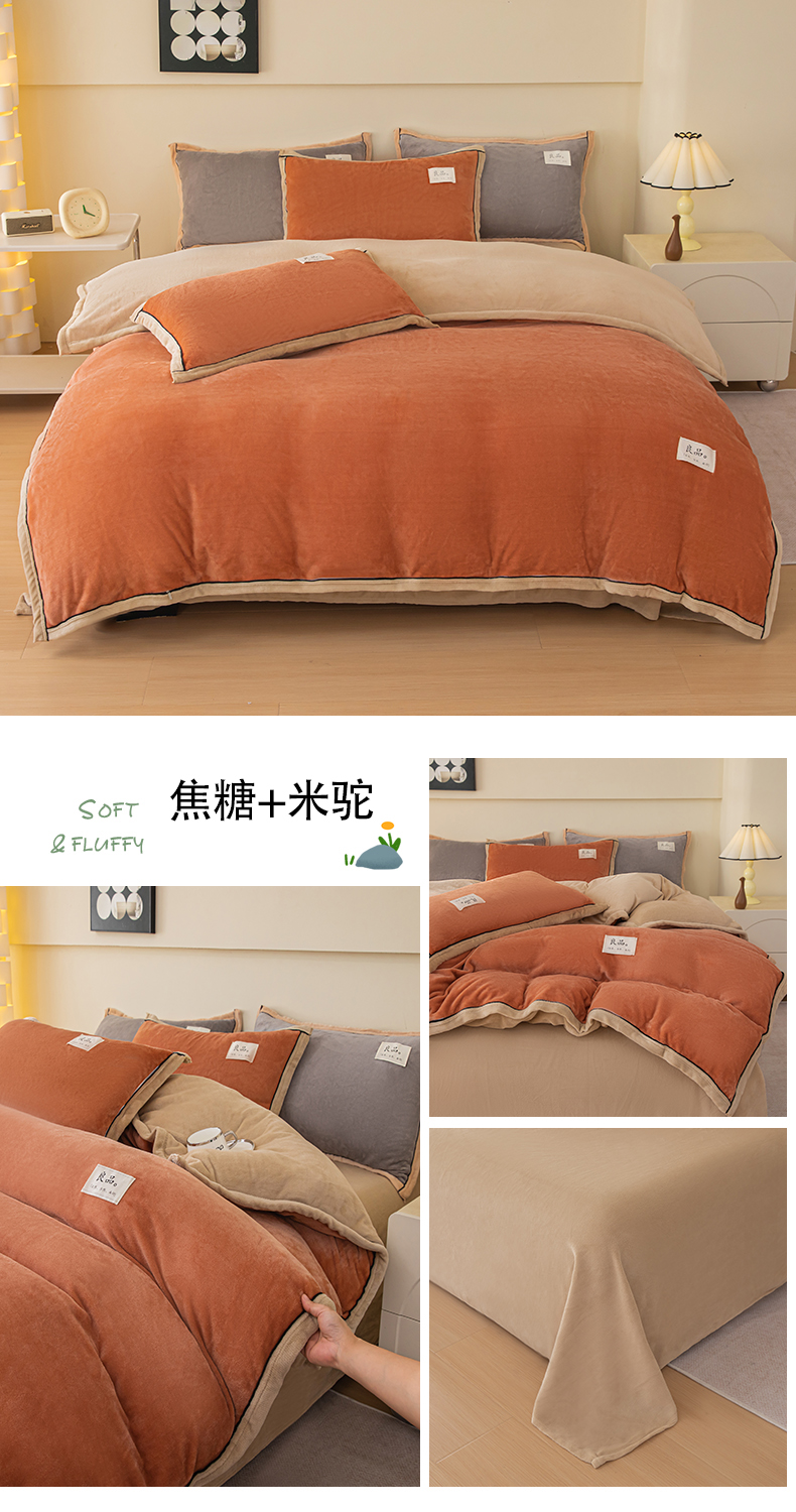 泳鹅羽绒 2024新款高克重双拼牛奶绒四件套 焦糖+米驼
