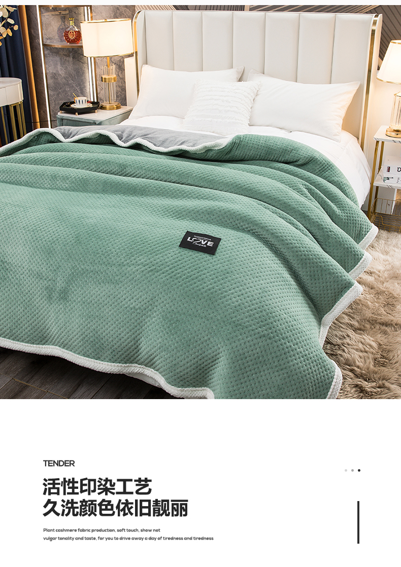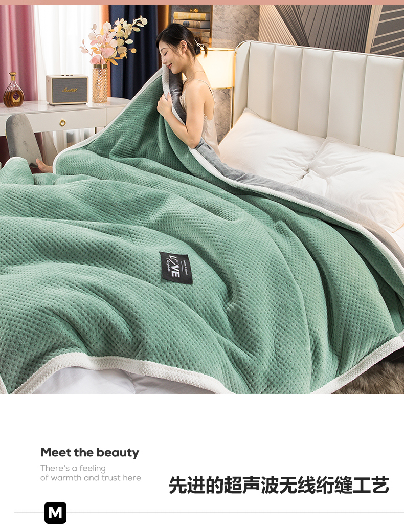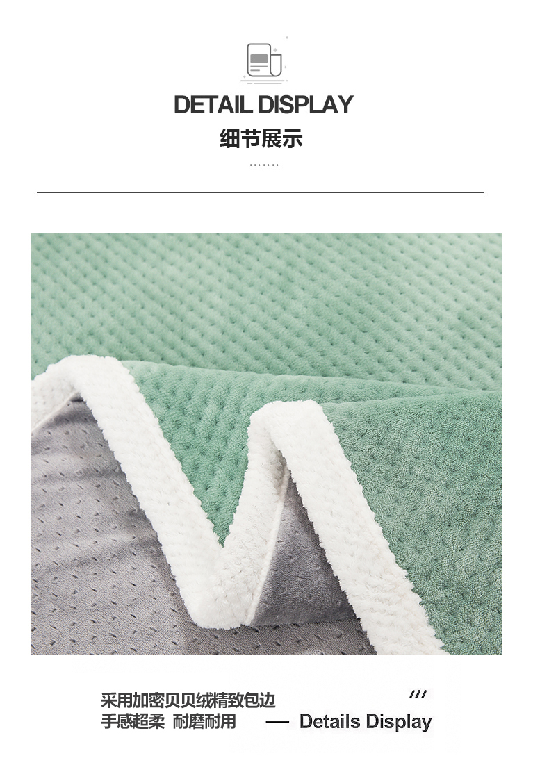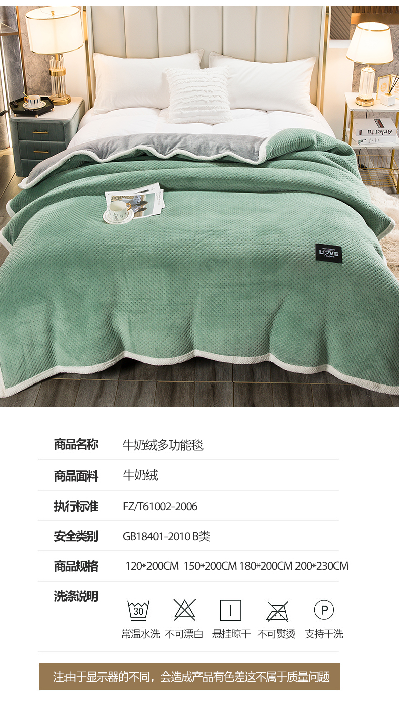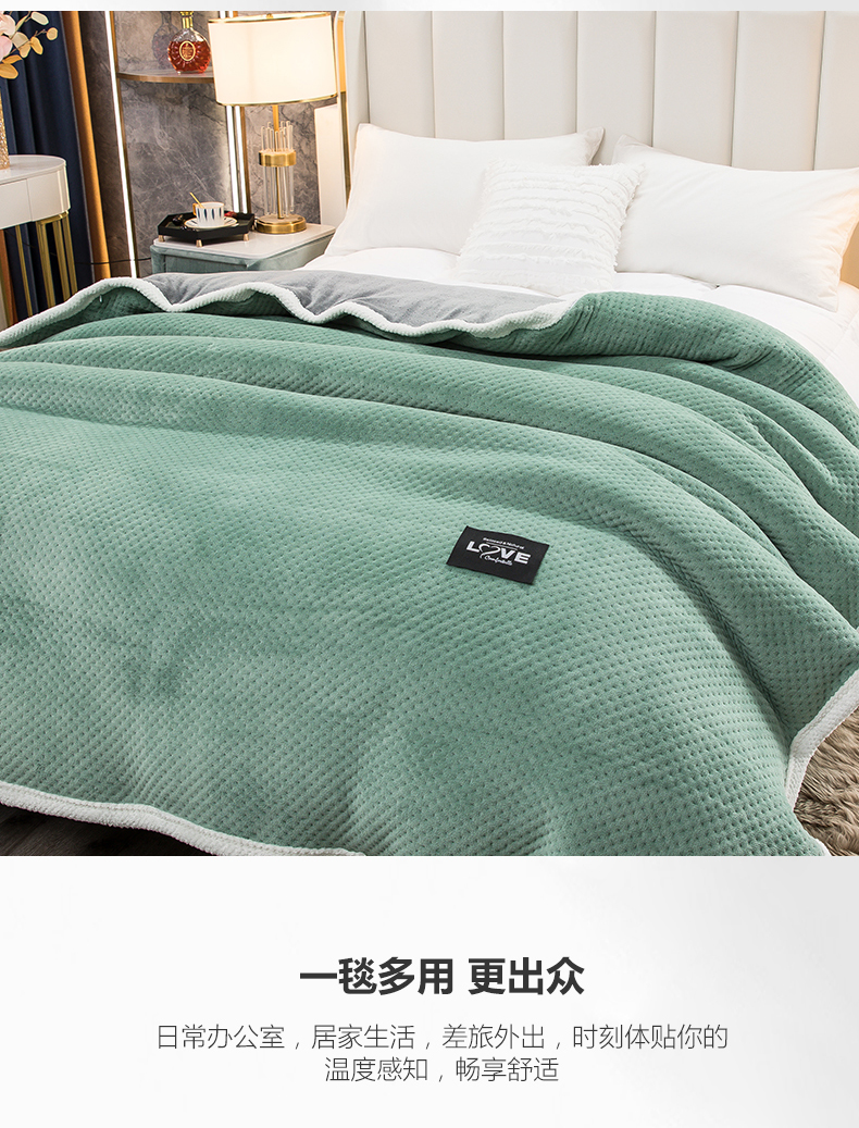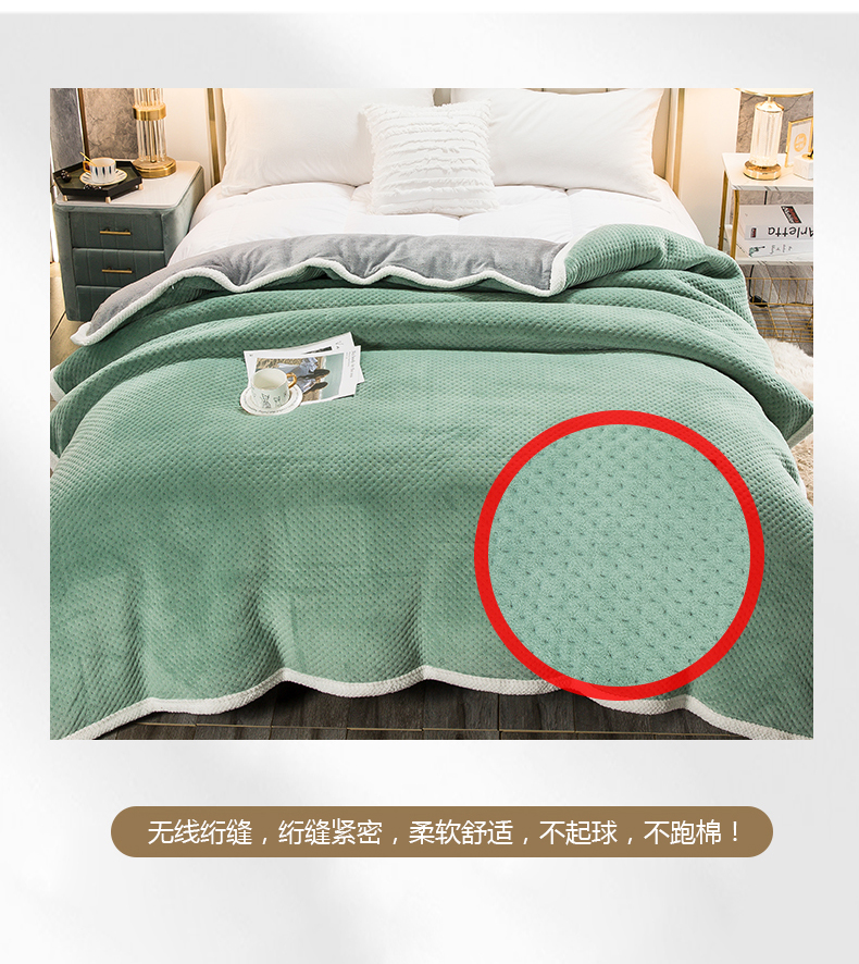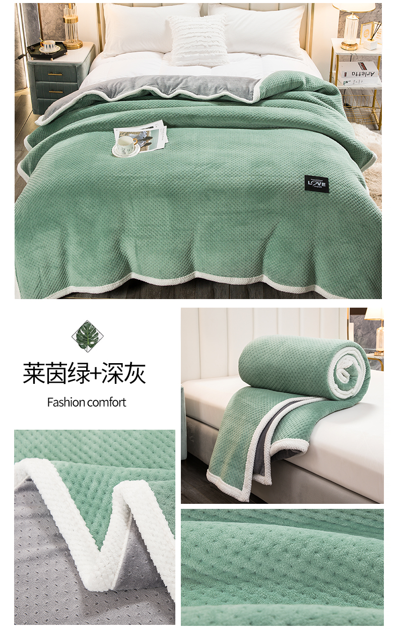 商品名称:宅部落 2024新款法莱绒牛奶绒毯三层夹棉多功能毛毯 莱茵绿+深灰