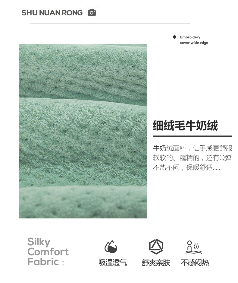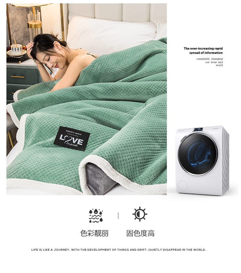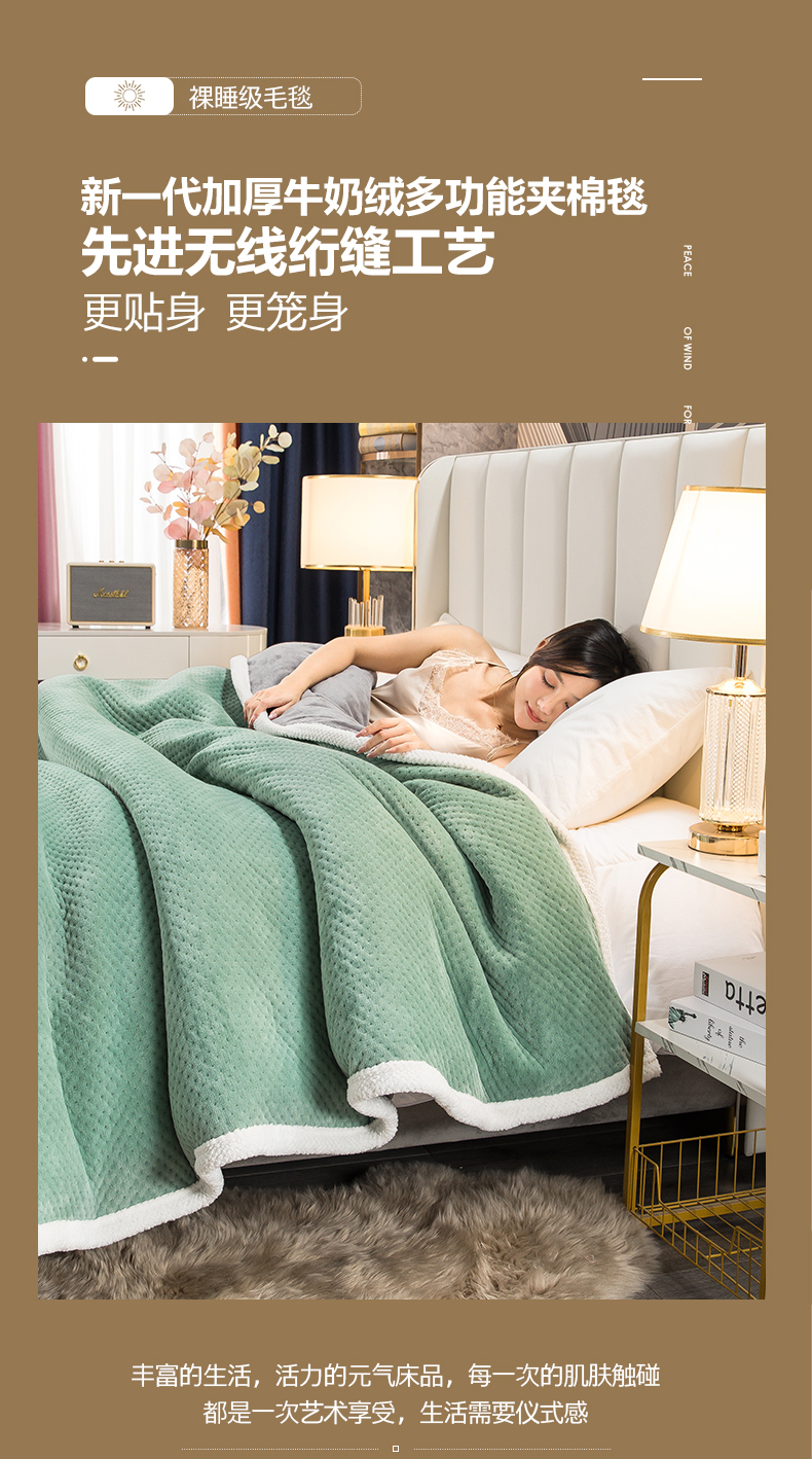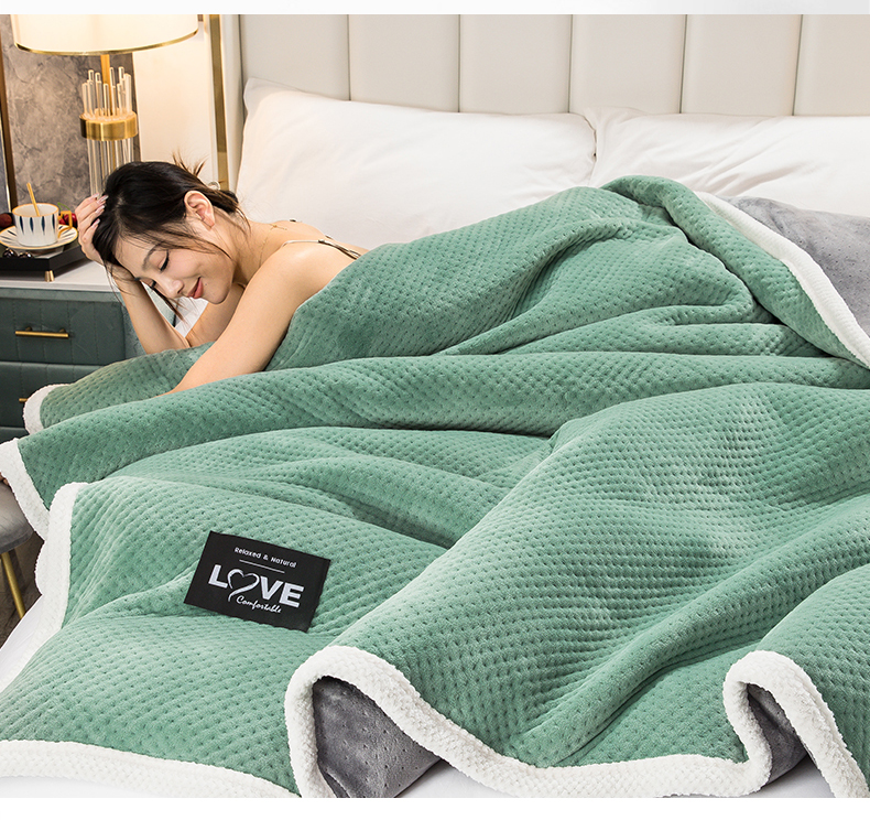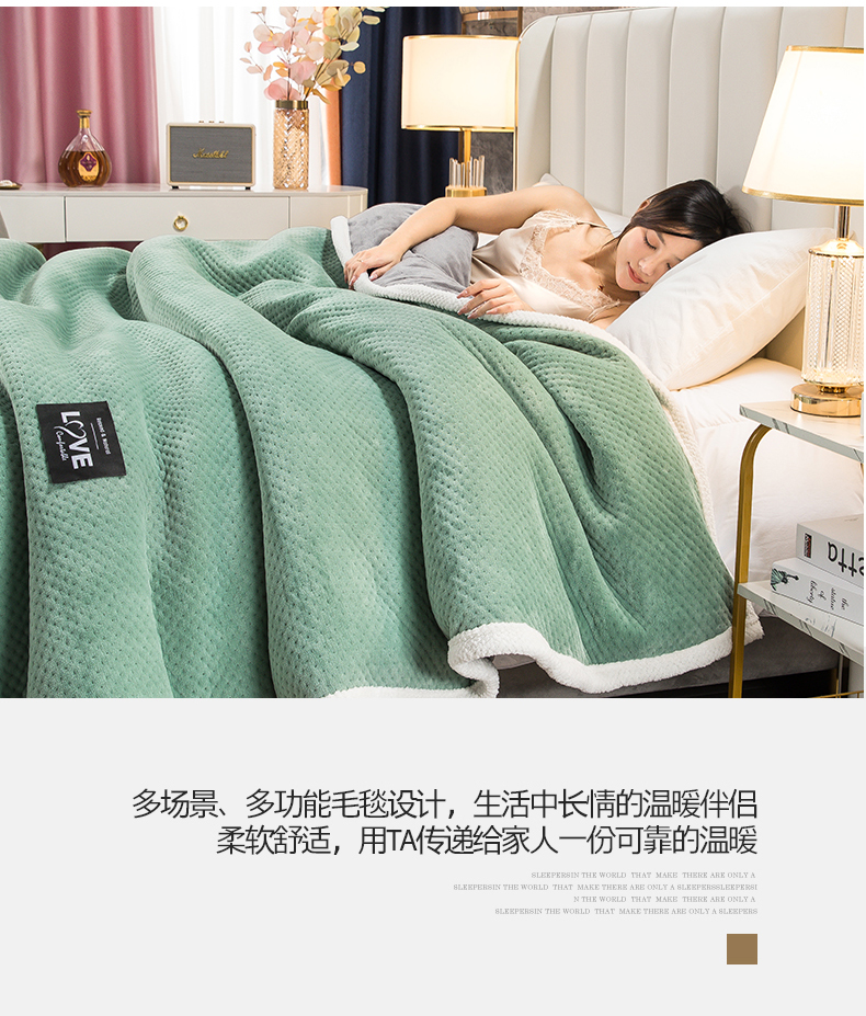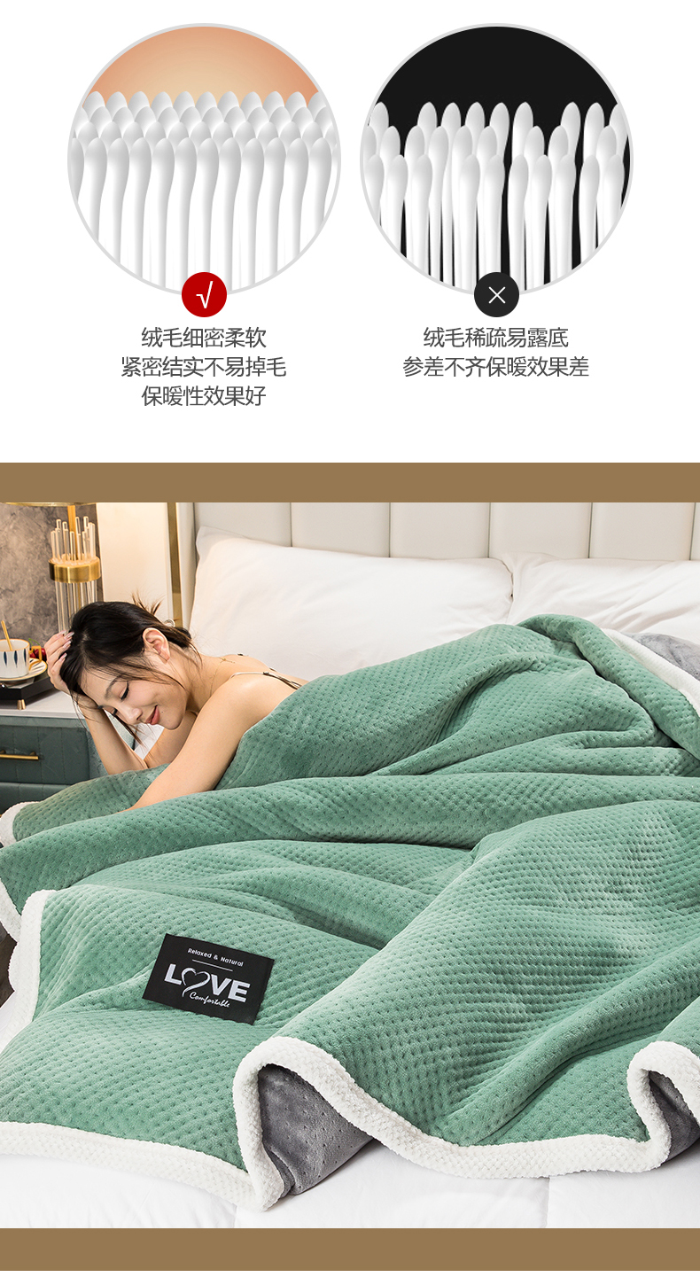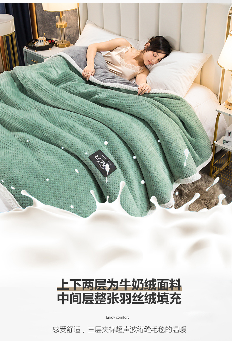 商品名称:宅部落 2024新款法莱绒牛奶绒毯三层夹棉多功能毛毯 莱茵绿+深灰